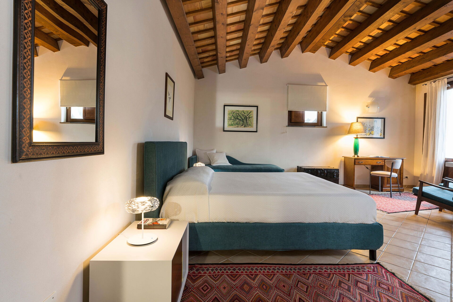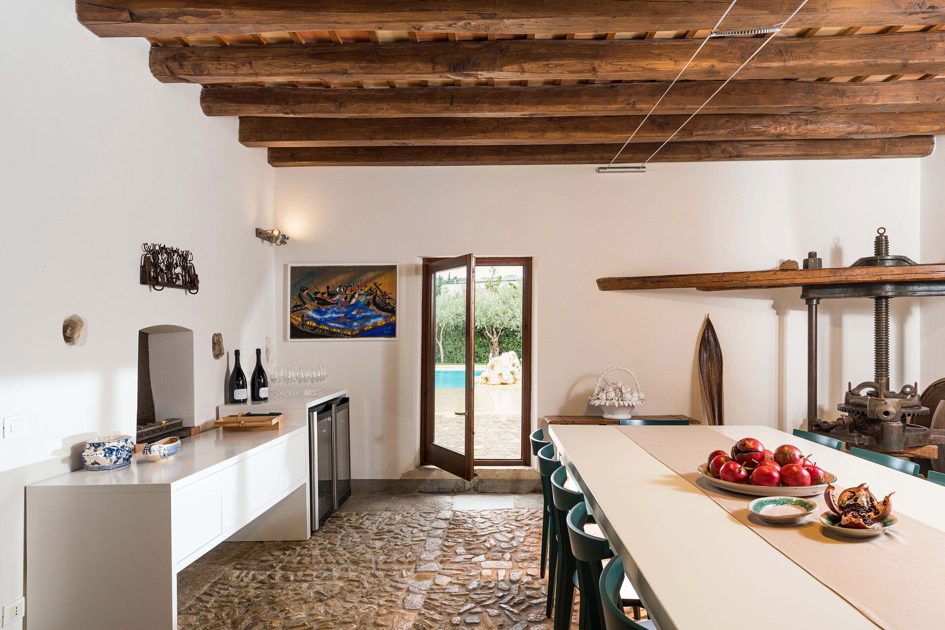 Its spacious exteriors and generously built interiors - that can comfortably accommodate up to 16 people - guarantee enough space for a large family or a group of friends. The interior decoration is a tasteful combination of antiques and contemporary pieces of furniture that have been chosen with great care.