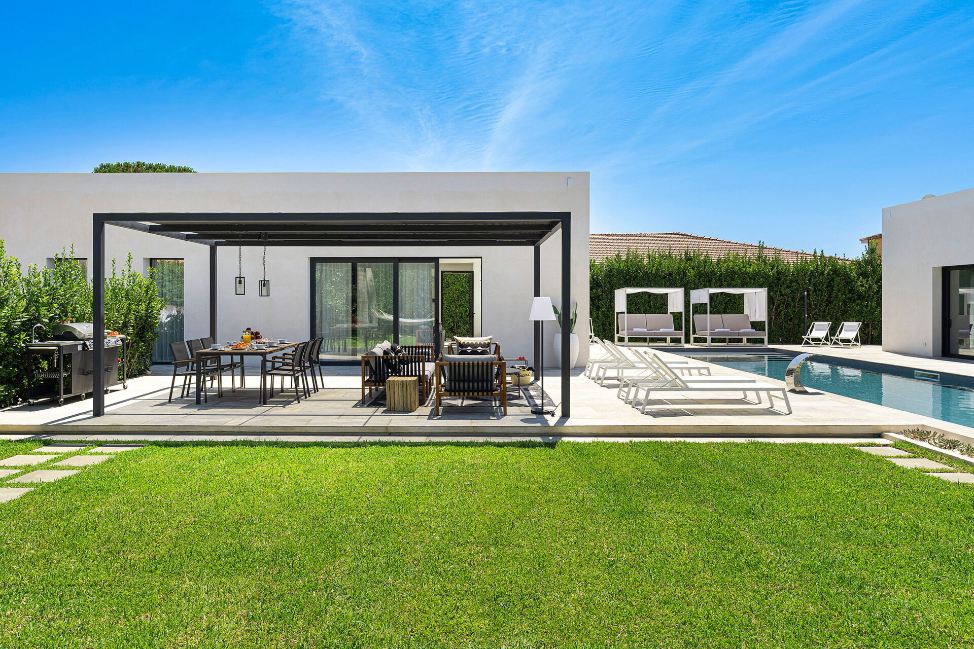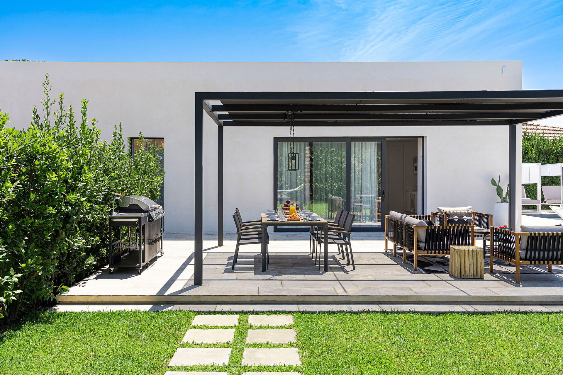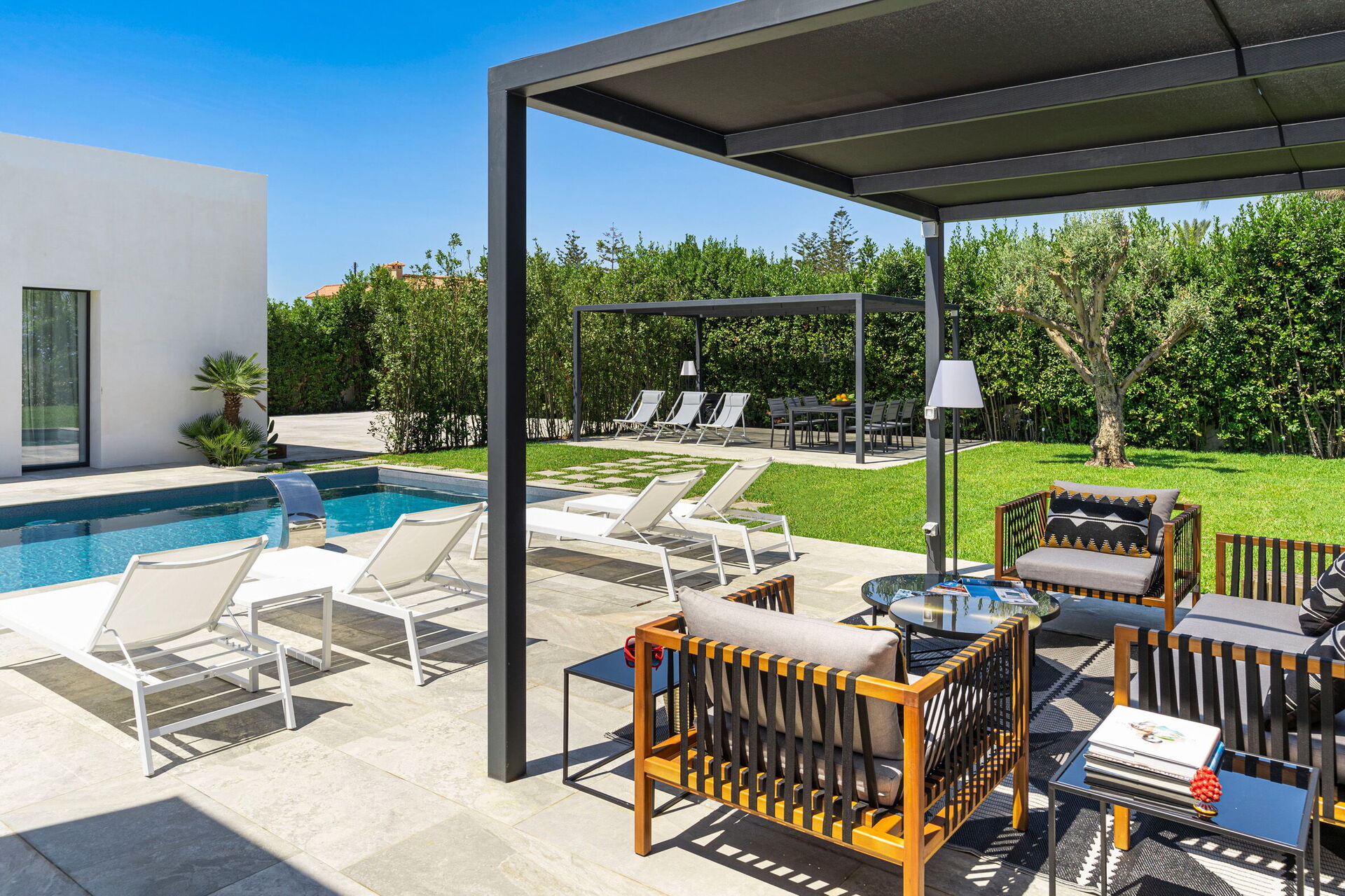 The villa is modern both inside and outside, with contemporary design furniture pieces and well furnished outdoor spaces for an unforgettable, relaxing experience.