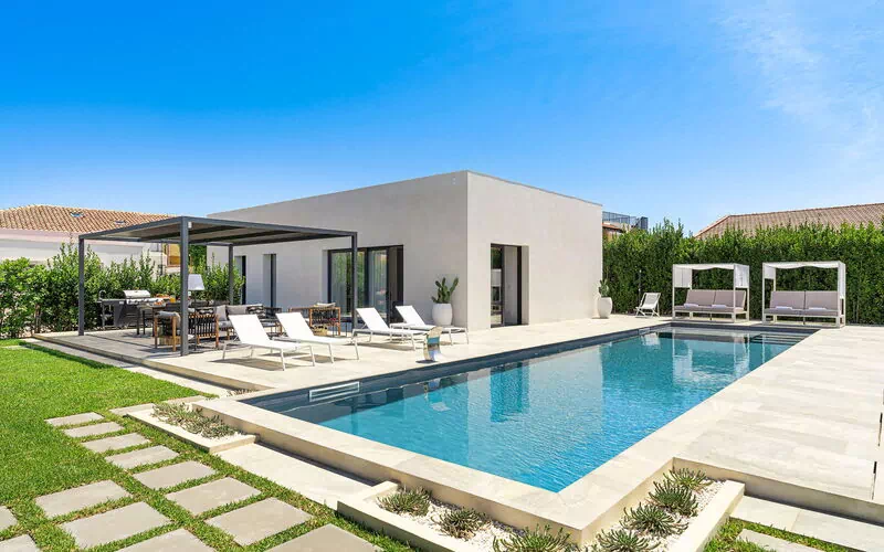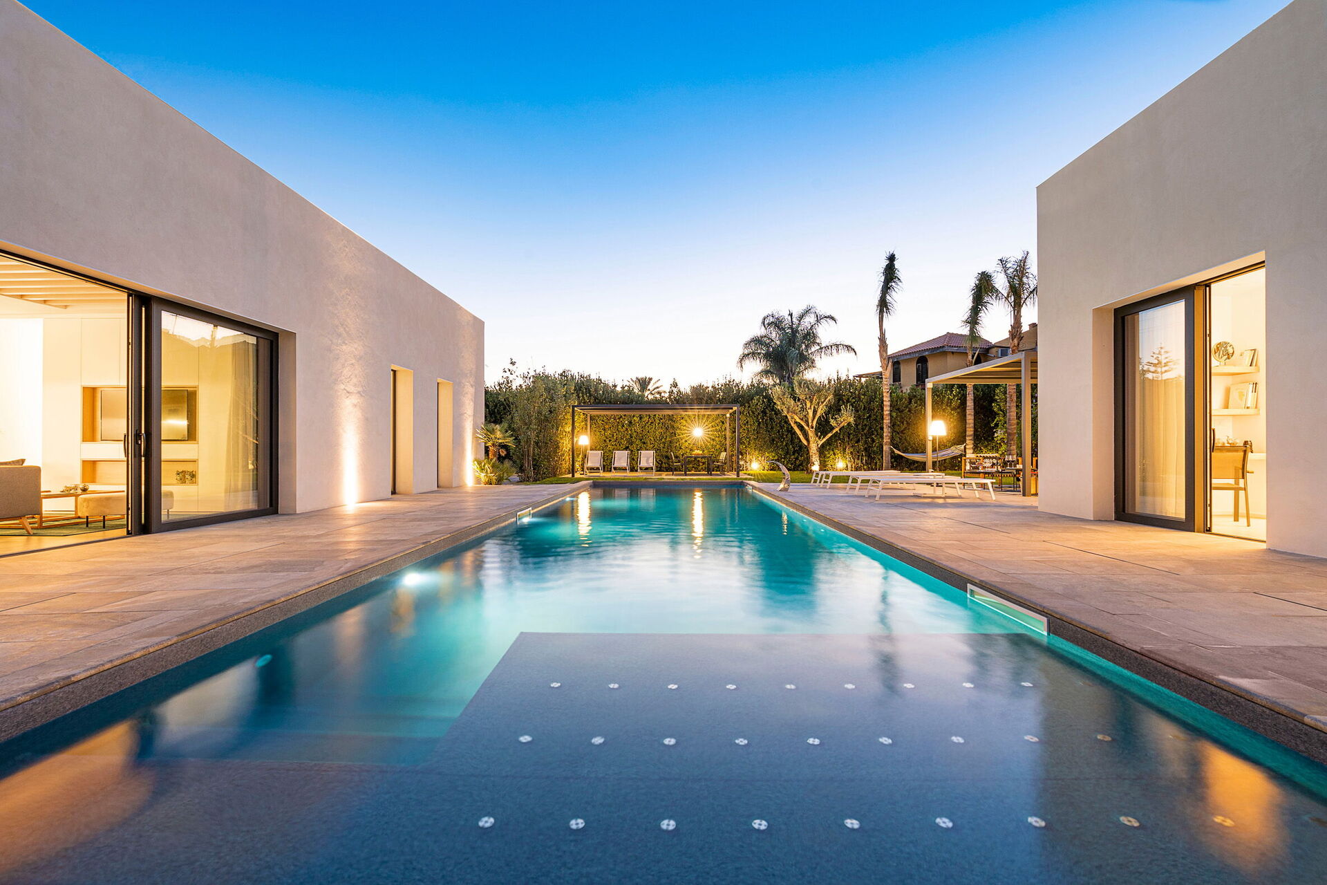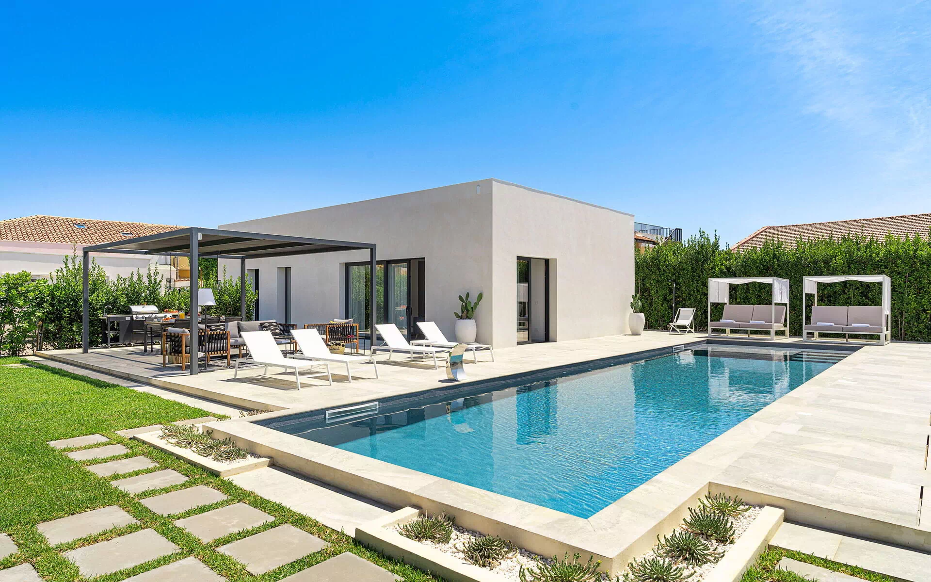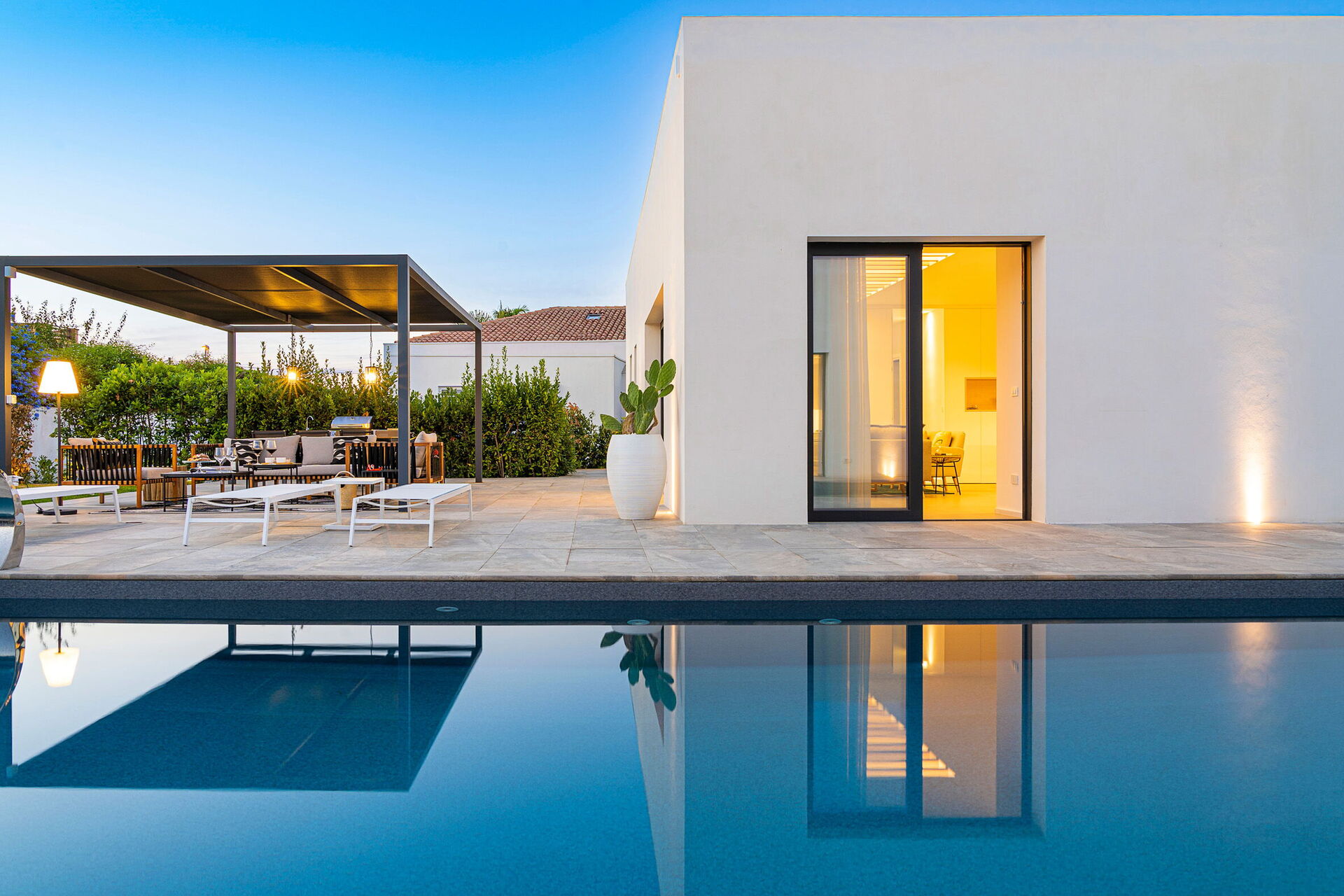 The villa is modern both inside and outside, with contemporary design furniture pieces and well furnished outdoor spaces for an unforgettable, relaxing experience.