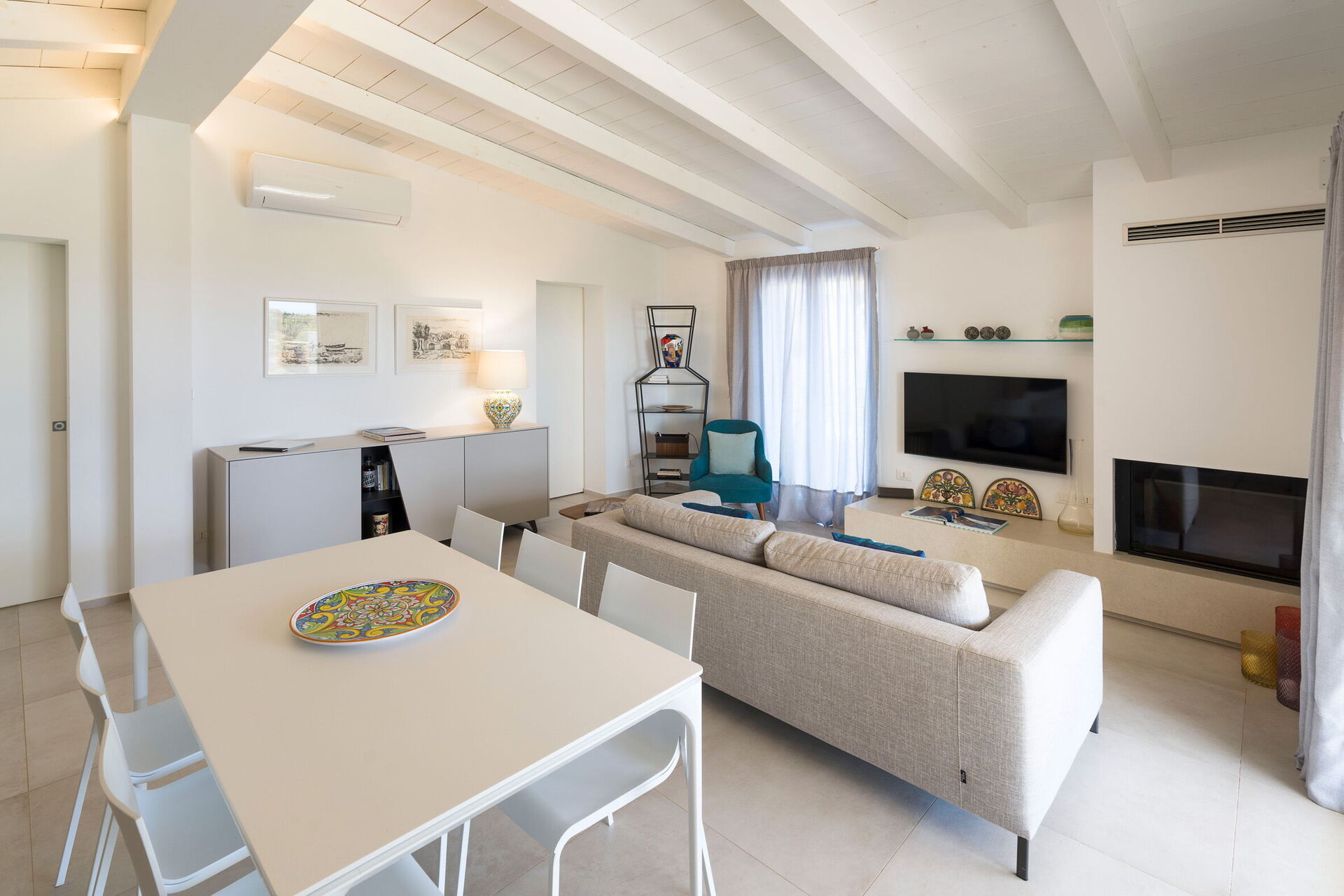 Ground floor: living room with fireplace (air conditioning, smart TV), dining area and kitchen (stove, oven, fridge, freezer, dishwasher, microwave, toaster, espresso coffee machine, americano coffee machine ), laundry room, 2 double bedrooms (air conditioning, mosquito nets) each with private en suite bathroom with shower.