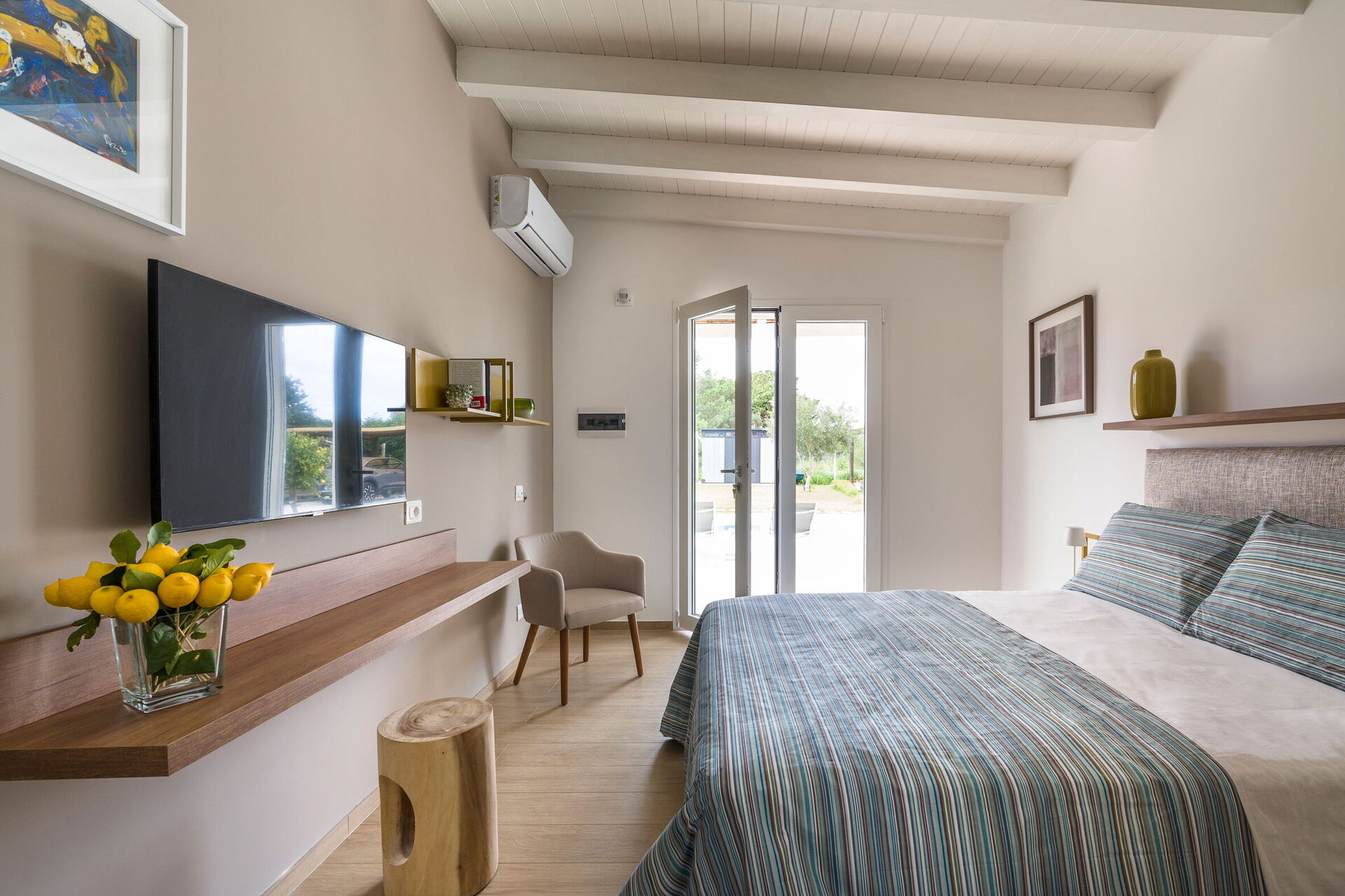 The property is made up of a Main Villa (6 people) and an annex (2 people) a few meters away. It has 4 bedrooms each with an en suite bathroom, and common rooms to comfortably accommodate up to 8 people.