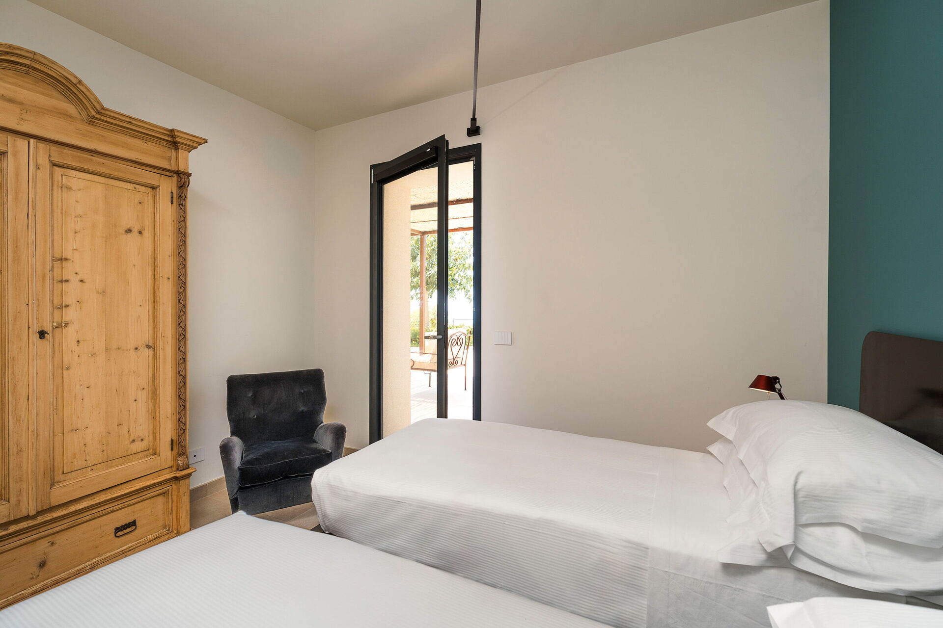 The interiors are equipped with all modern amenities, and are simply and tastefully furnished. Gelso Bianco is made up of the main house (6 people) and an annex (2 people). In total it can comfortably accommodate up to 8 people.