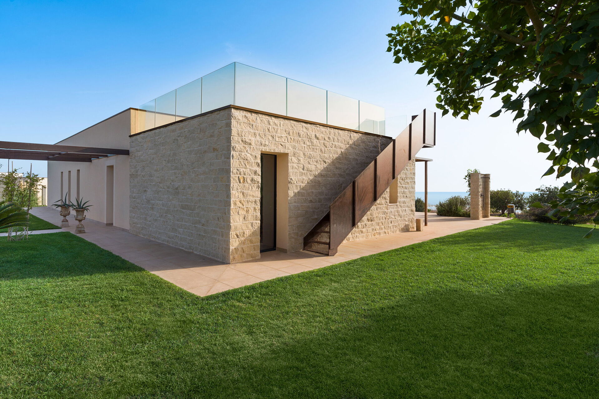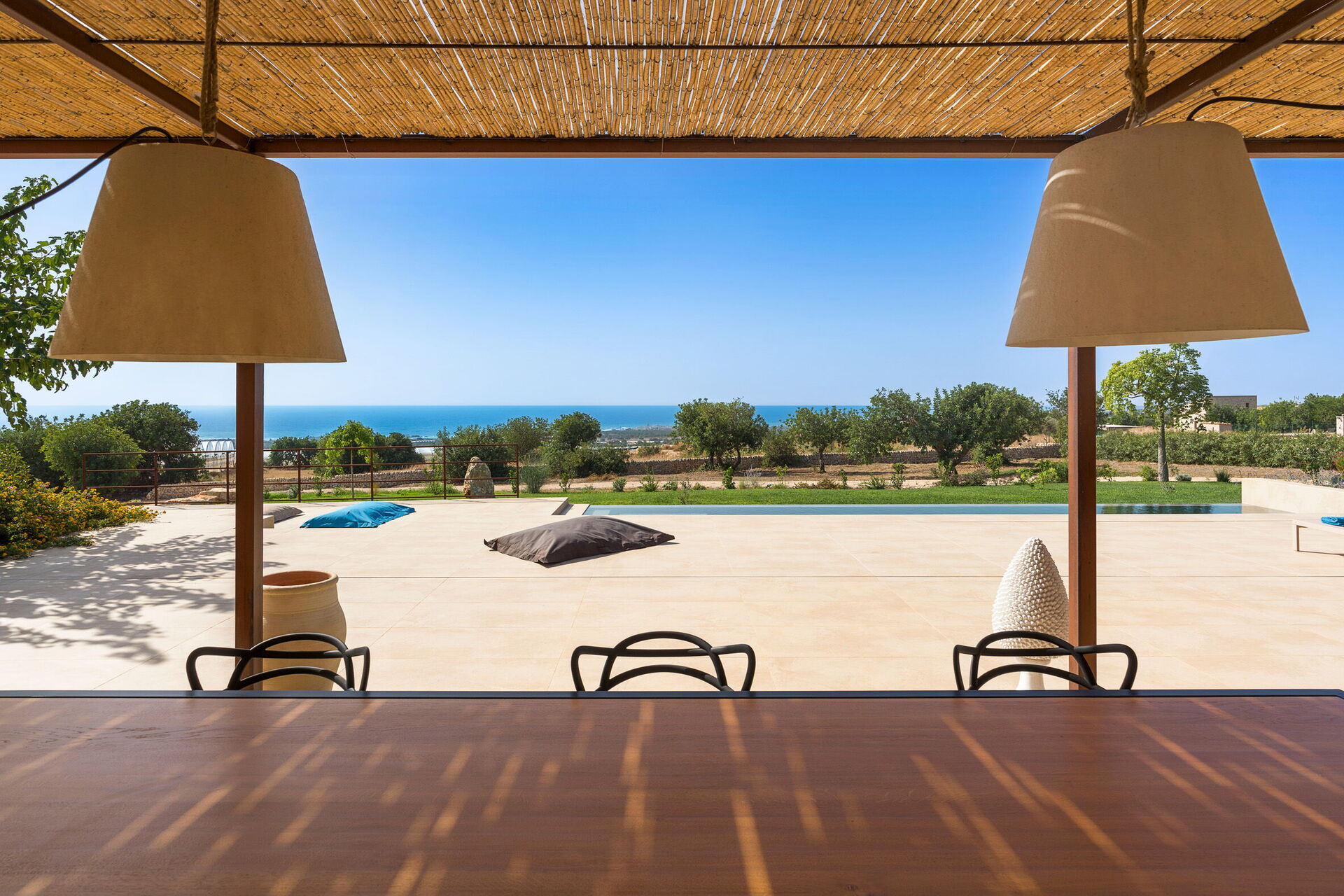 This exclusive vacation villa near Scicli (spectacular Baroque UNESCO site) sits in a tranquil spot with breathtaking views of the splendid surrounding landscape, the countryside and the sea, from the pool and large terraces.