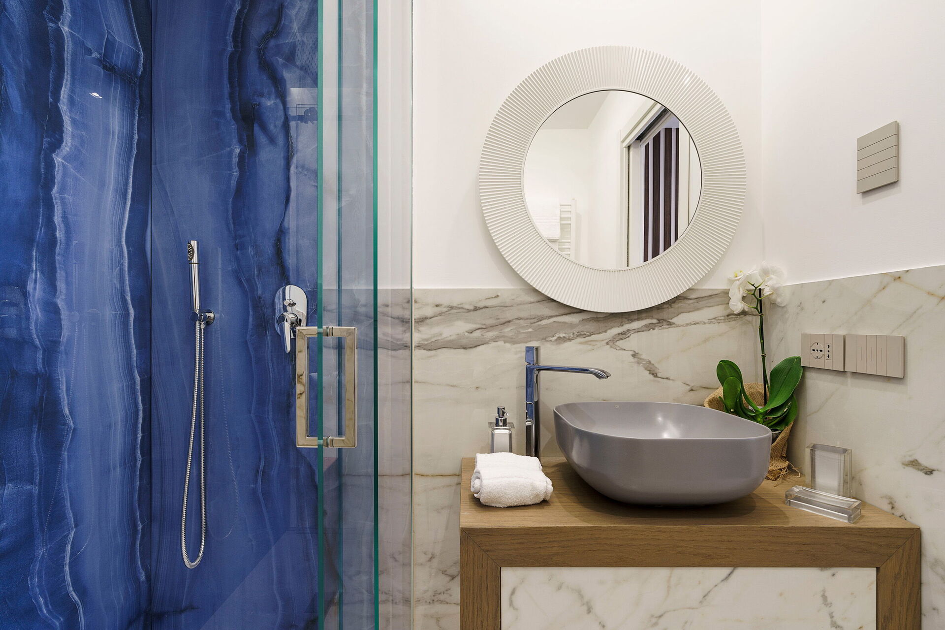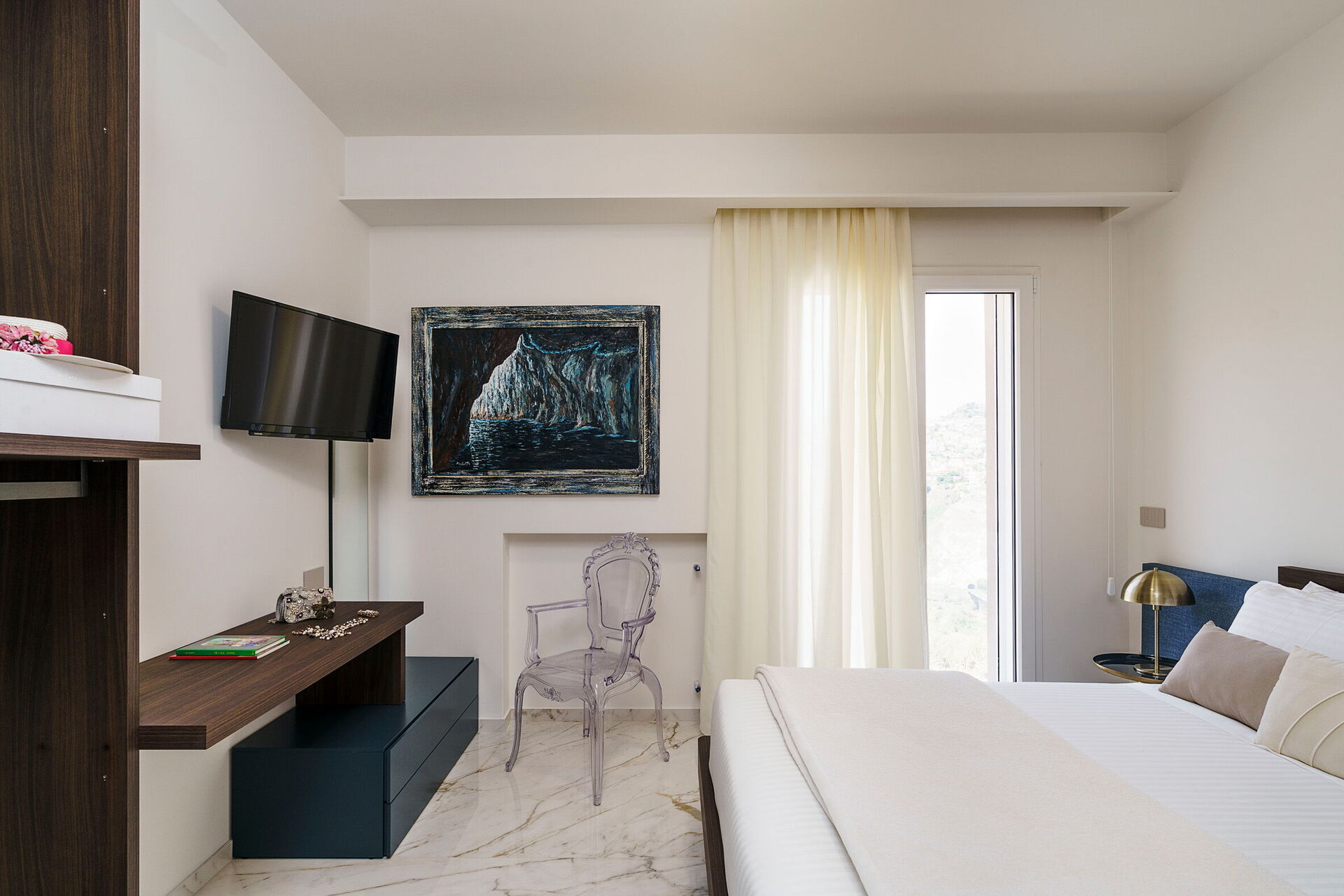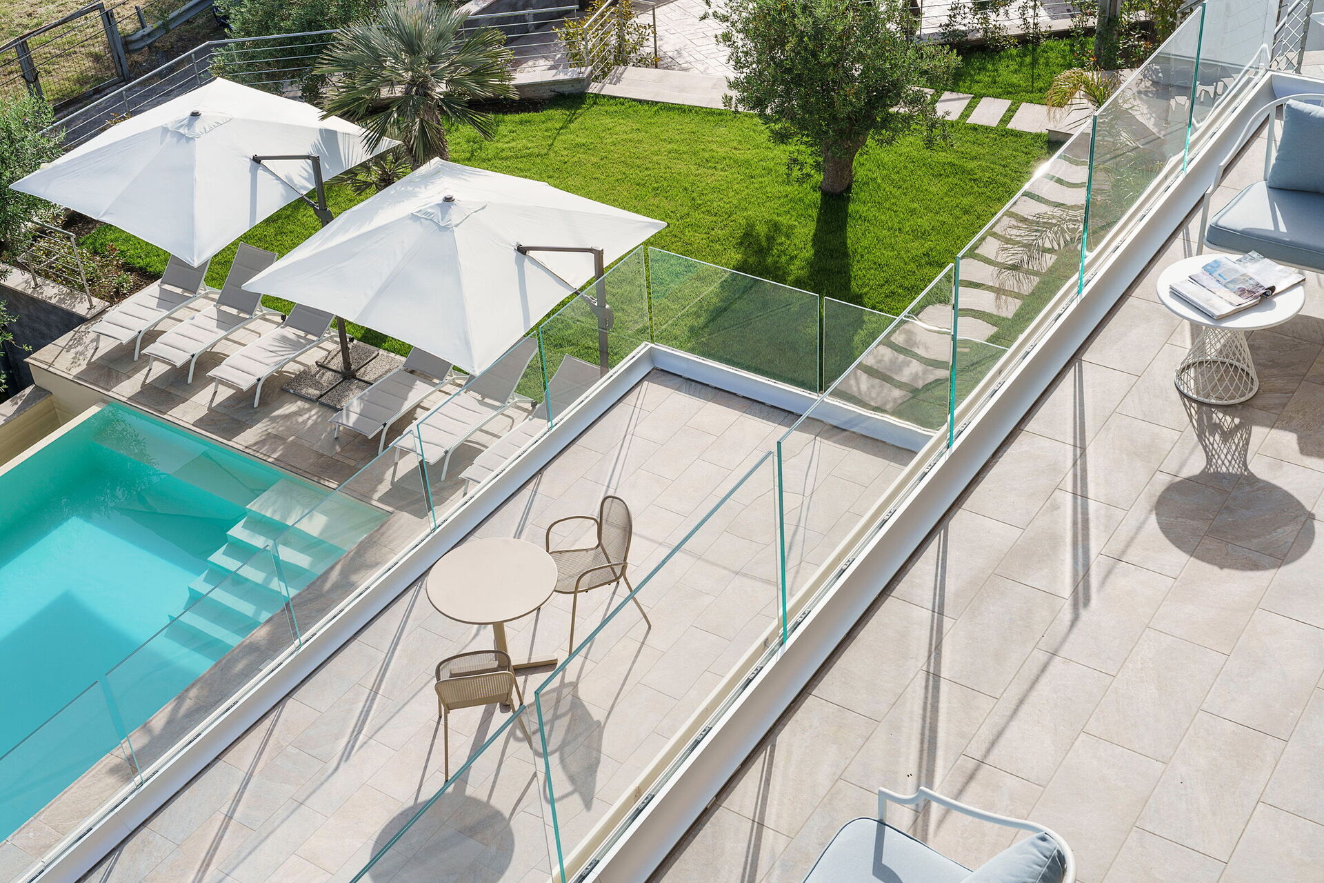There are many outdoor areas with panoramic views where guests can enjoy time with family or friends. Relax in the Sicilian sun on the scenic terraces, or at the large pool area with sea views.