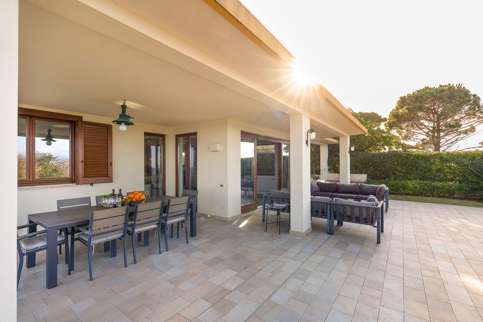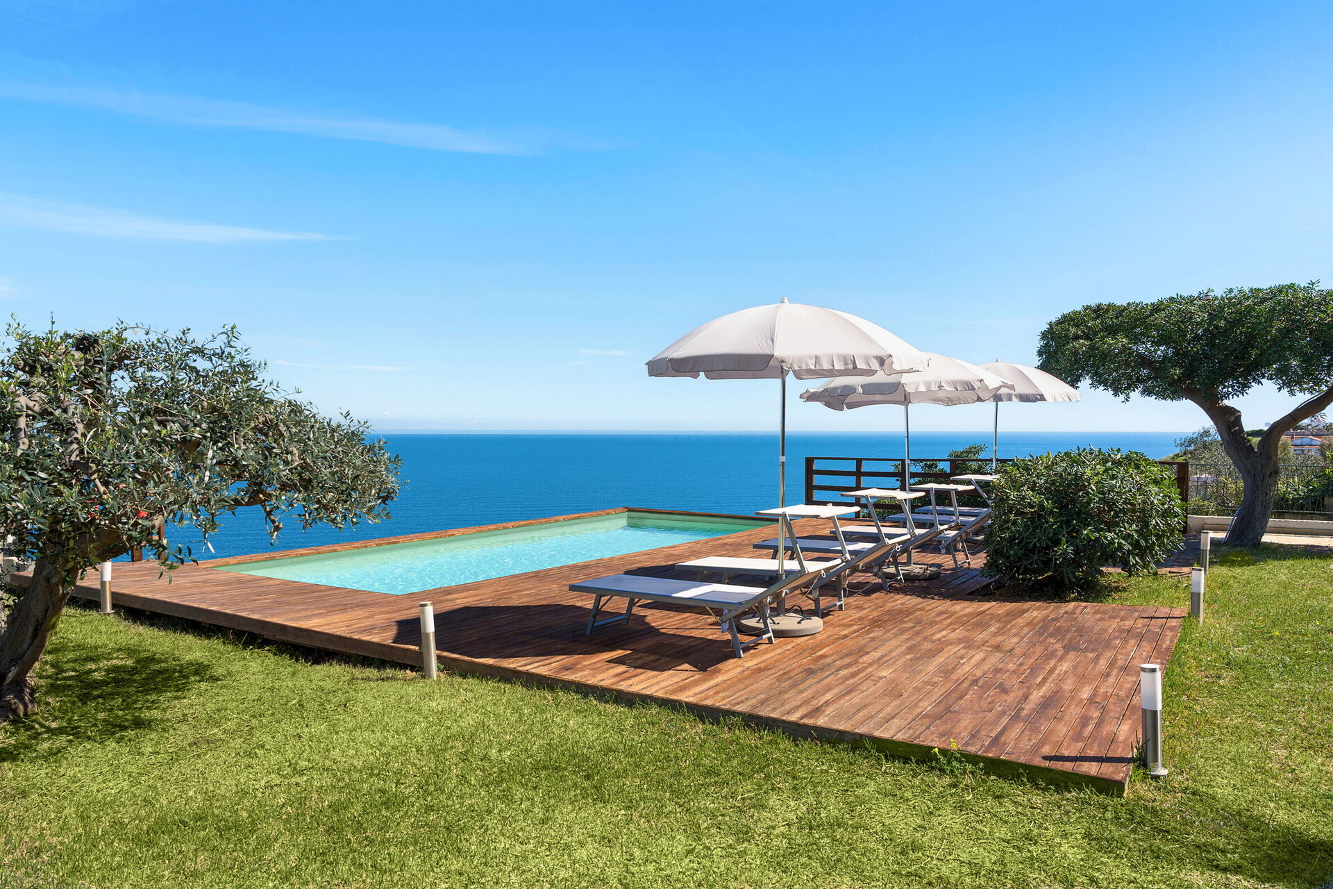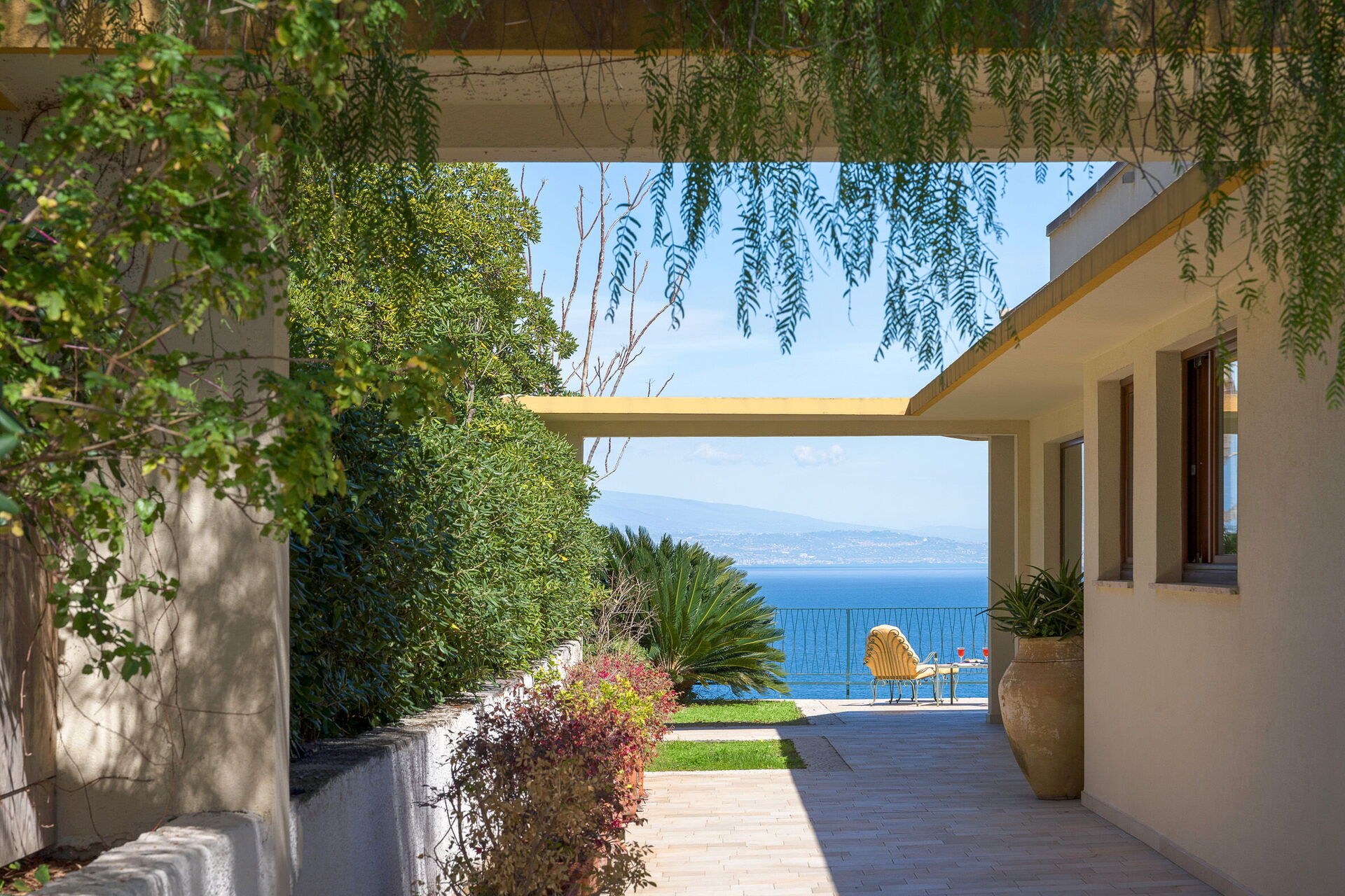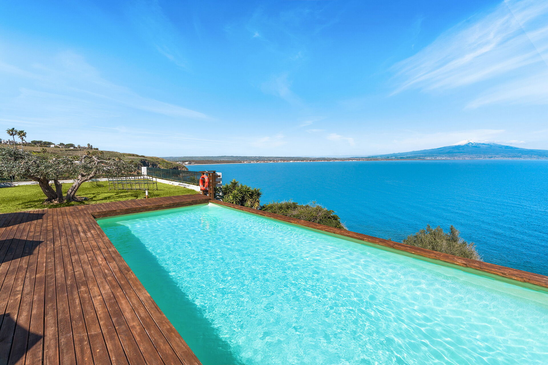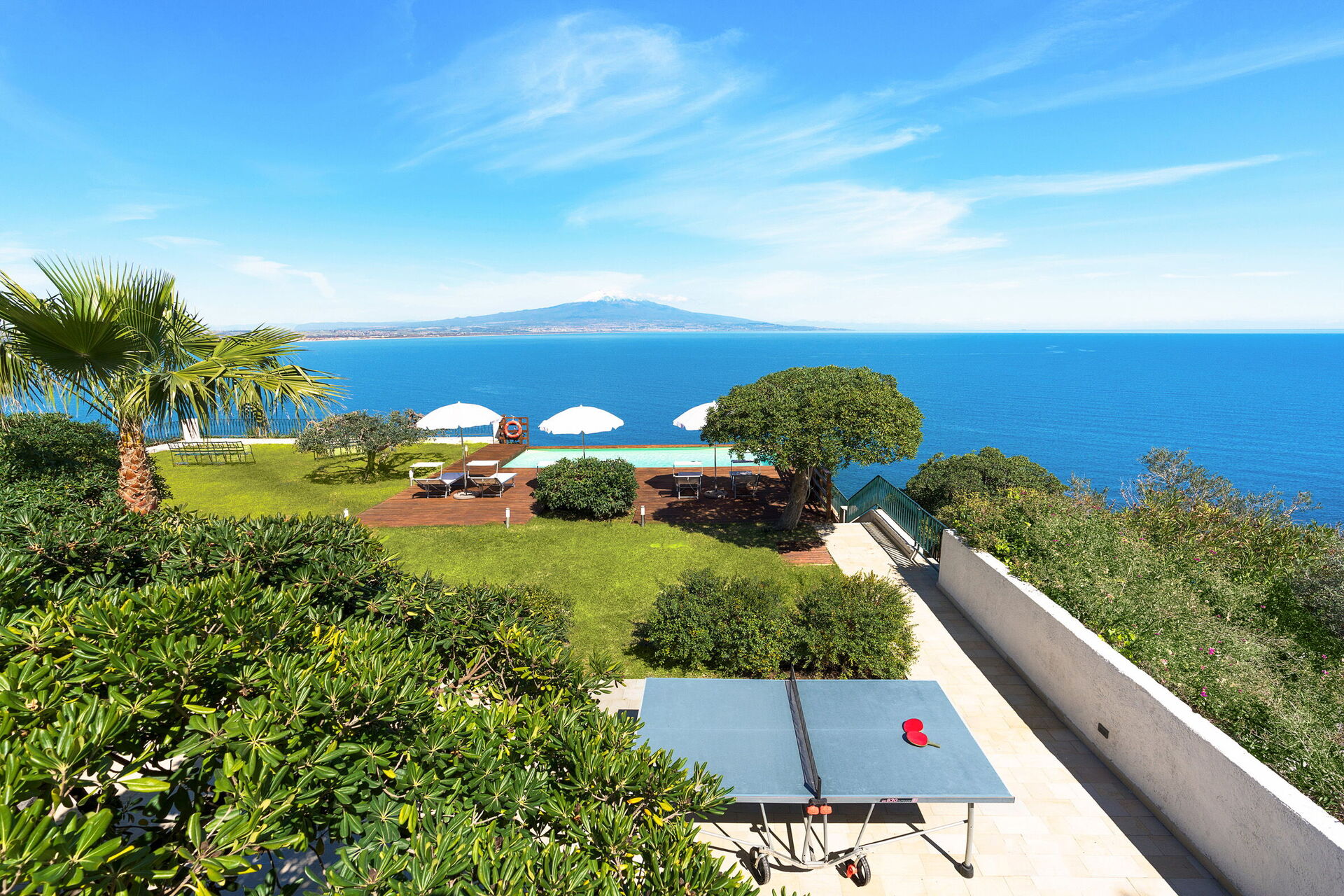 The large sunbathing areas and the pool with panoramic views make this villa the perfect place to relax with friends and family under the hot Sicilian sun.