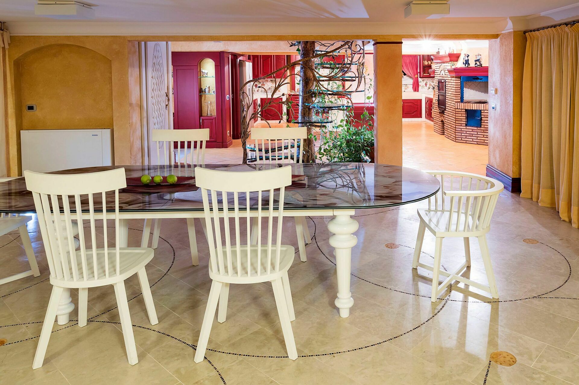 The luxurious rooms with matching fabrics are fitted with all modern conveniences, such as air conditioning, internet Wi-Fi, satellite TV, Hi-Fi with background music system, wood oven, washing machine and dishwasher.