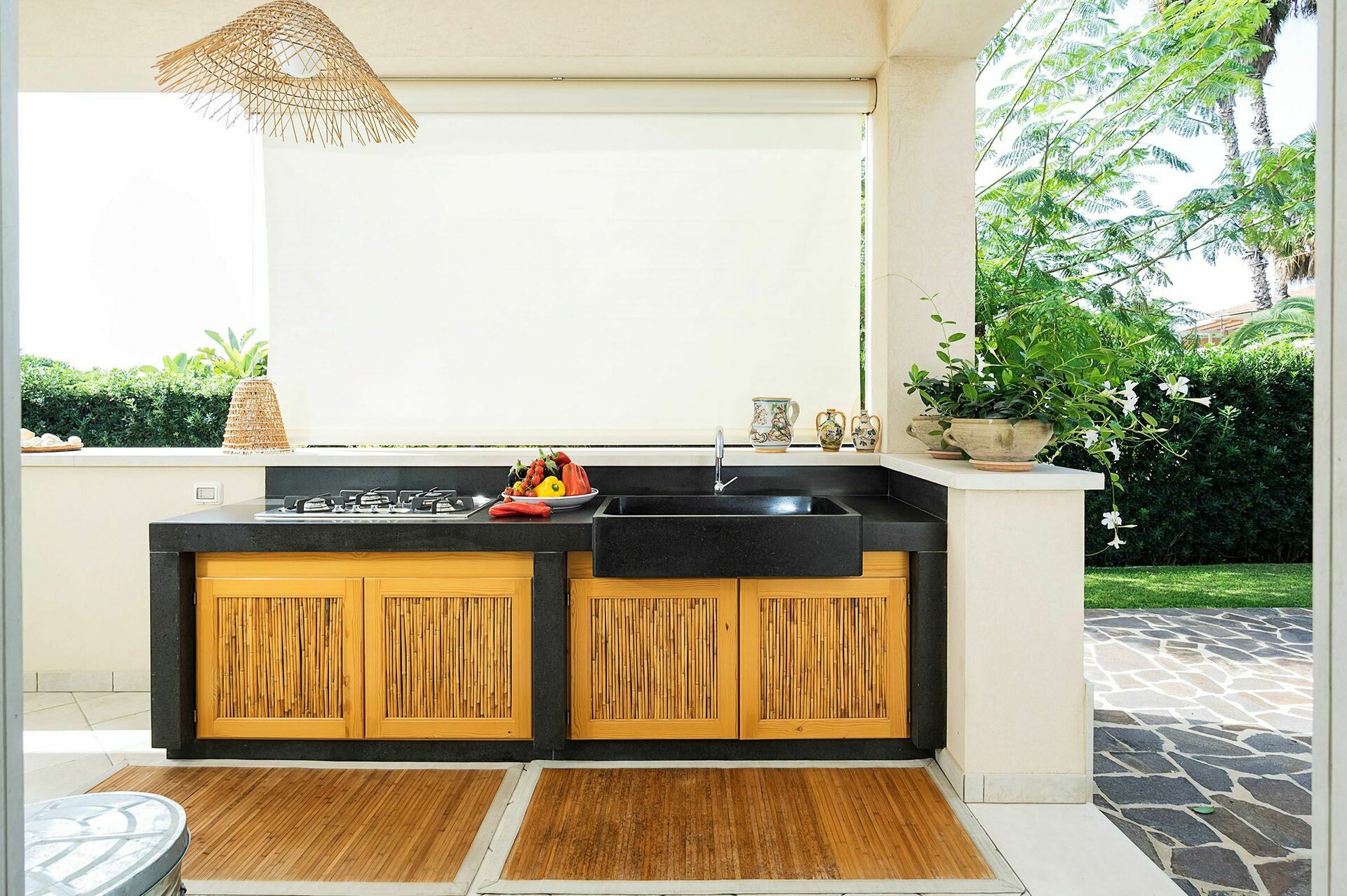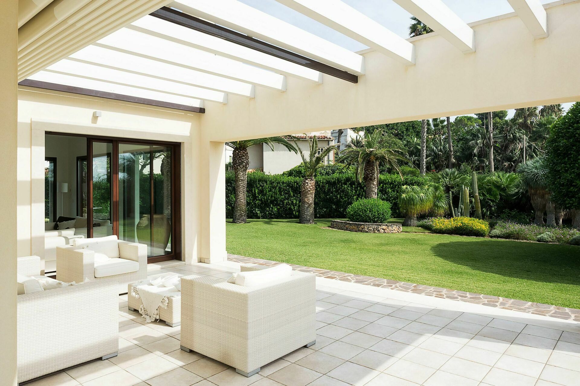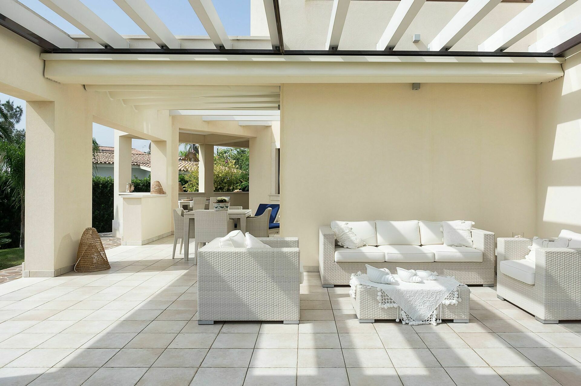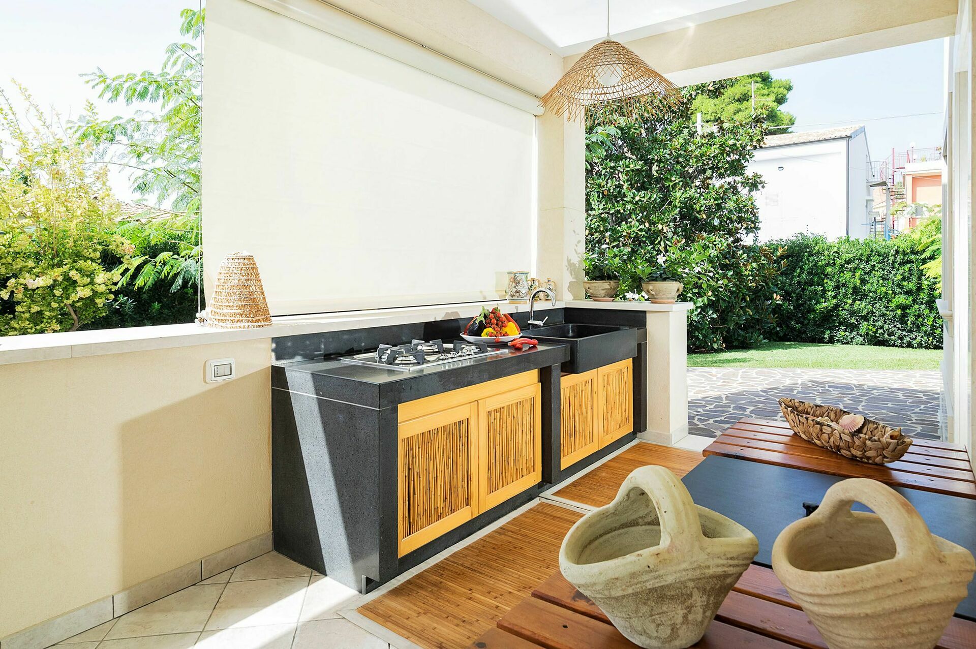 Exterior: veranda, terraces, garden, outdoor kitchen.