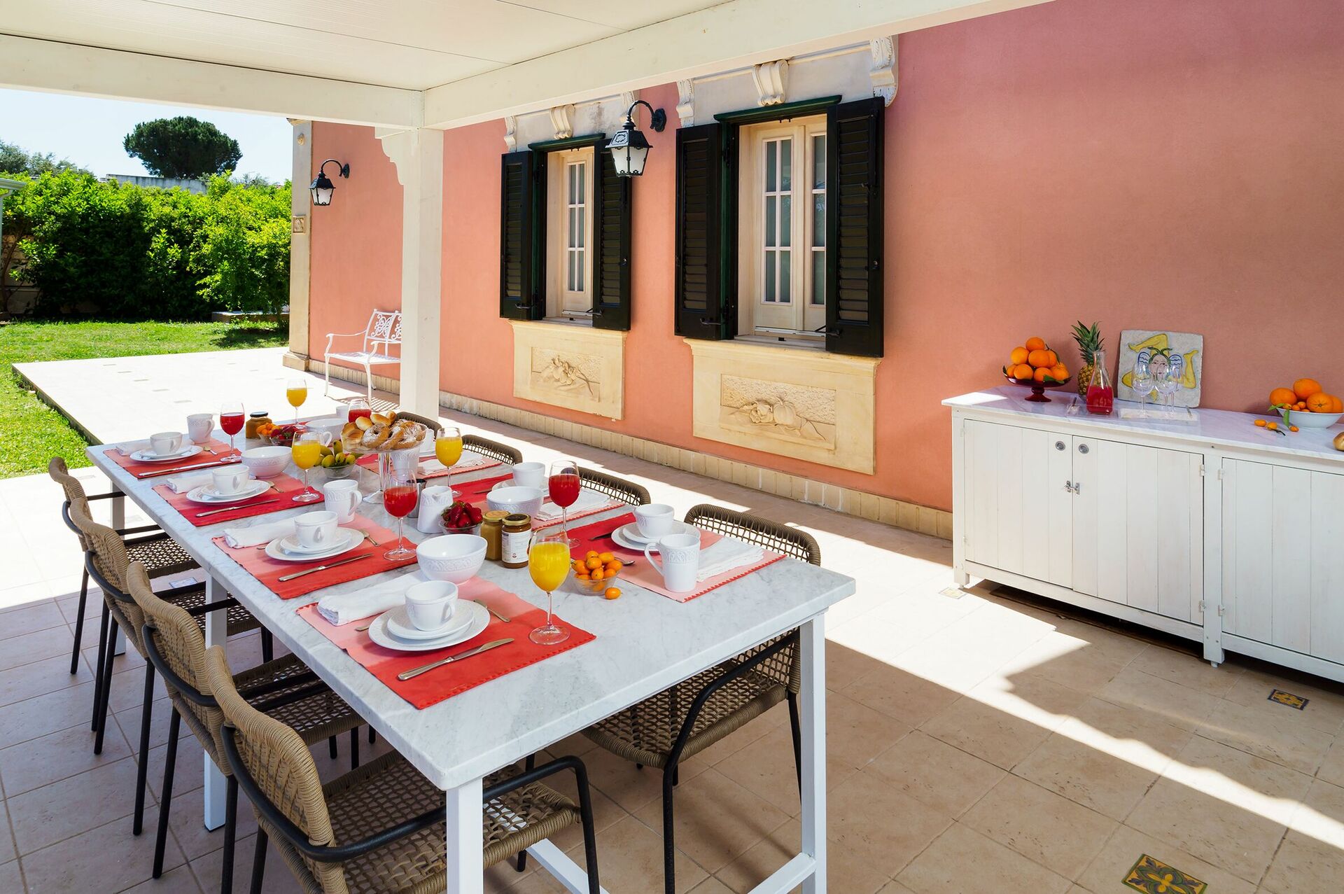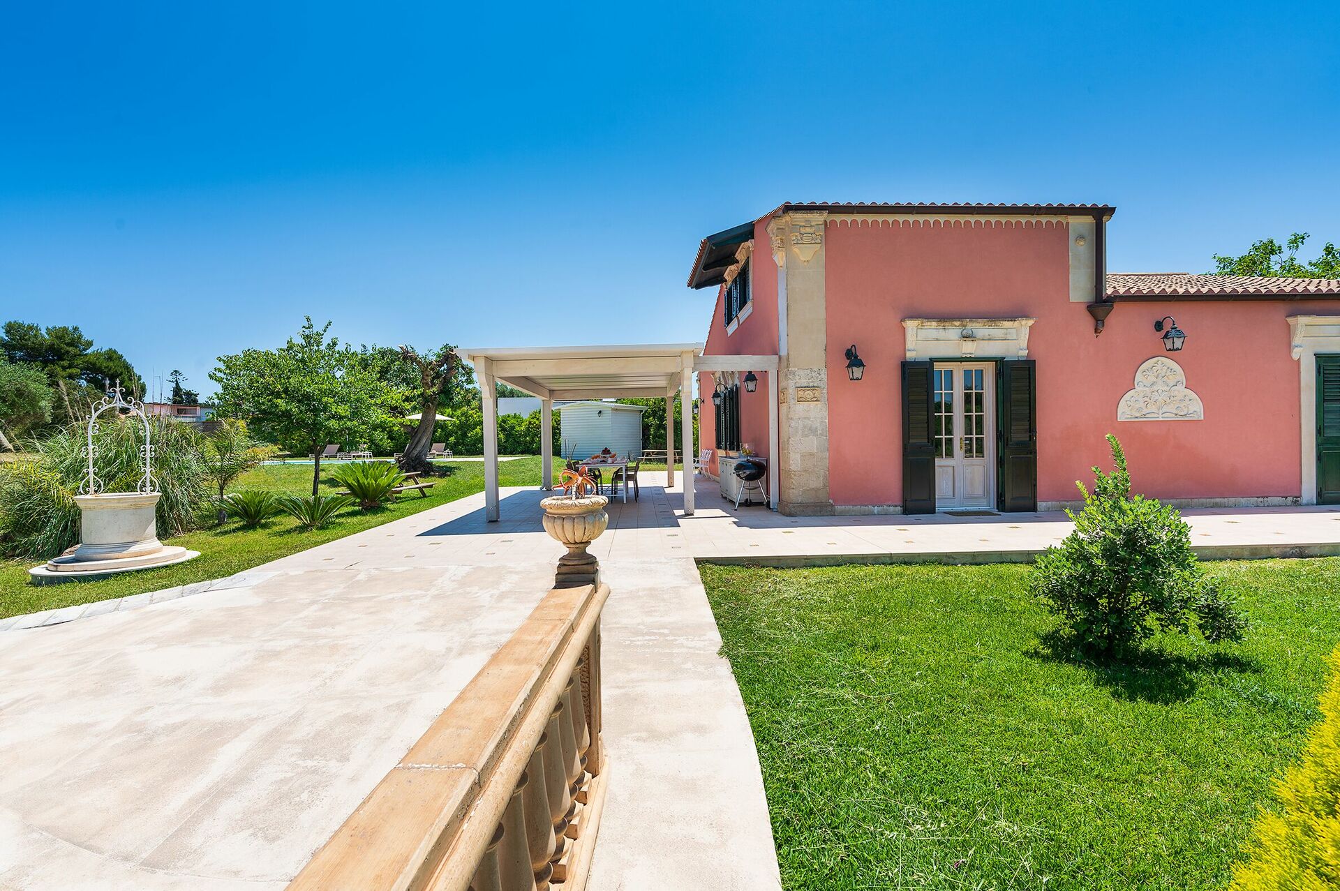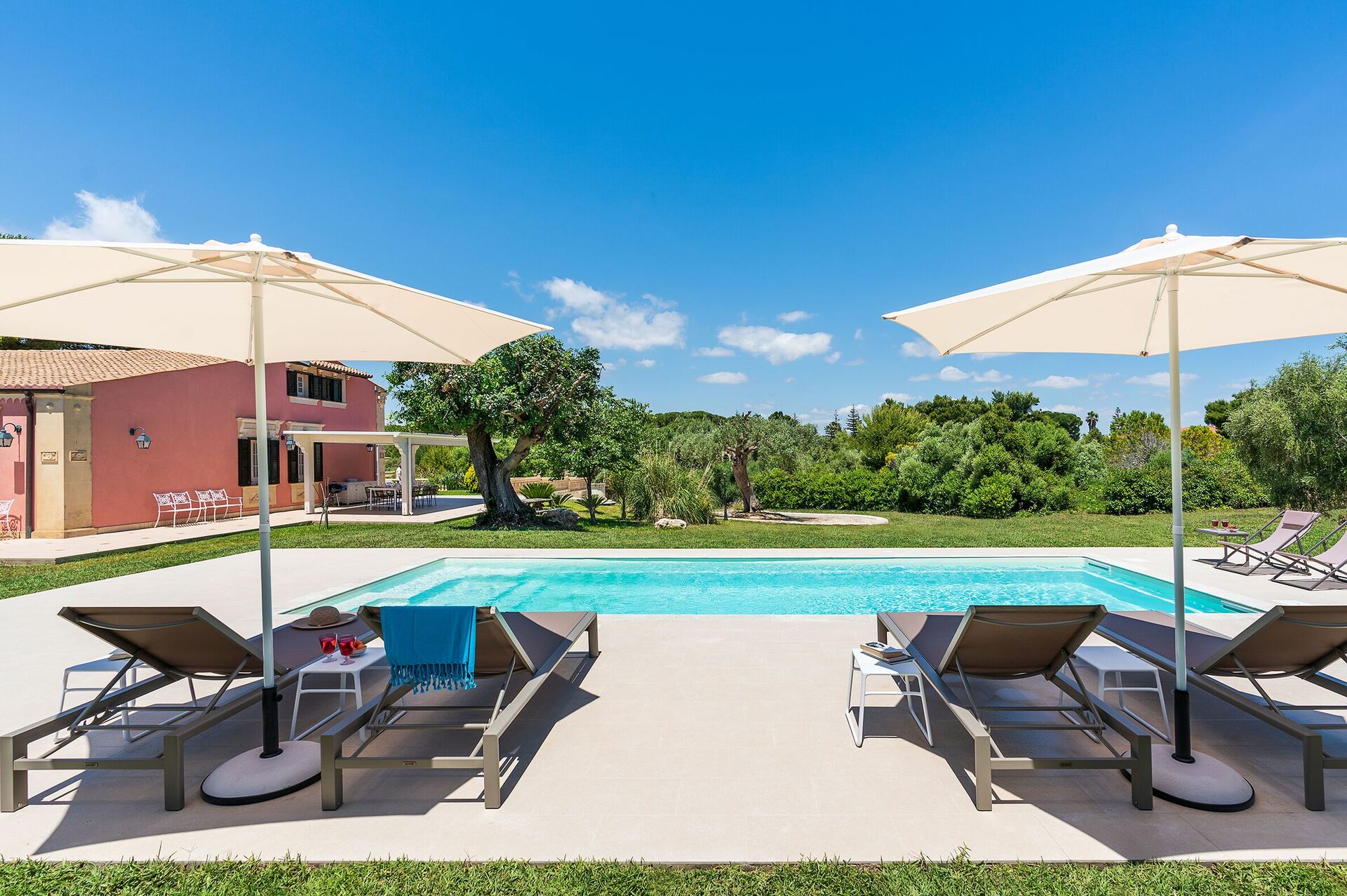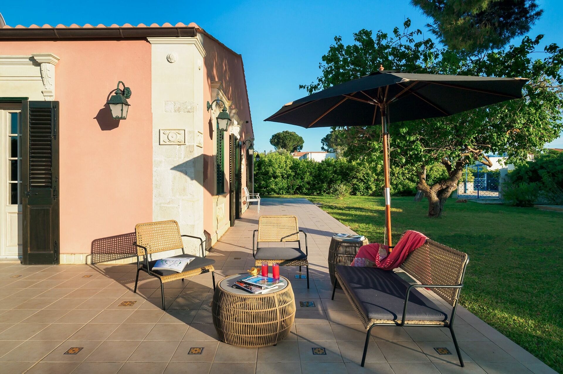 This villa is just 300 meters from the beach, and within easy reach of eastern Sicily’s most beautiful places (Syracuse, Noto, Modica, Ragusa Ibla, Scicli, Vendicari nature reserve and the coastal villages of Portopalo and Marzamemi, as well as Taormina and Etna Park, etc…). It is the perfect villa for exploring the beauty of Sicily.