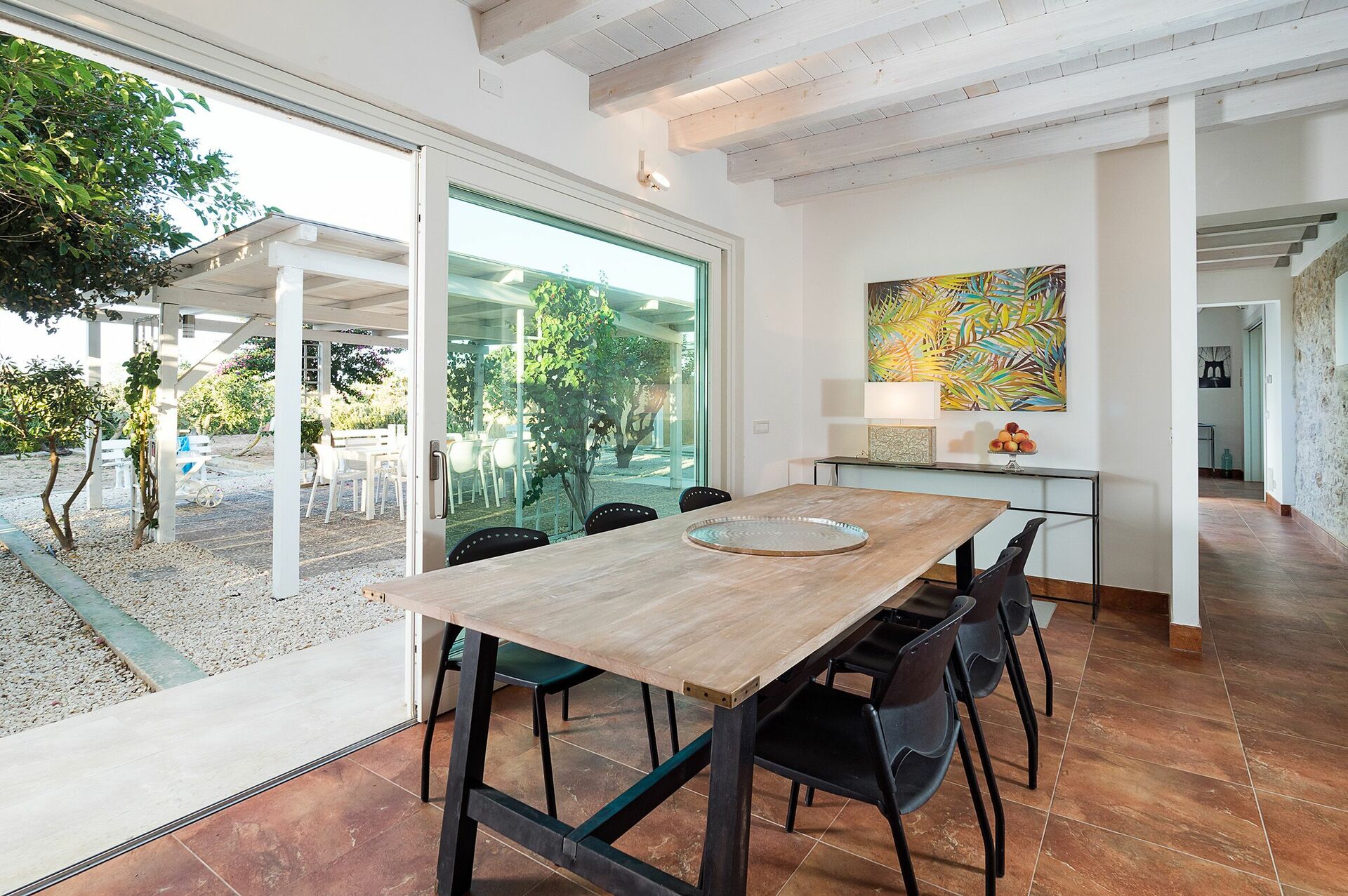 Outside, a well kept garden with several fruit trees is at guests disposal to enjoy their holiday in Sicily and the equipped outdoor area offers them the chance to arrange al fresco dining breathing the sea breeze.