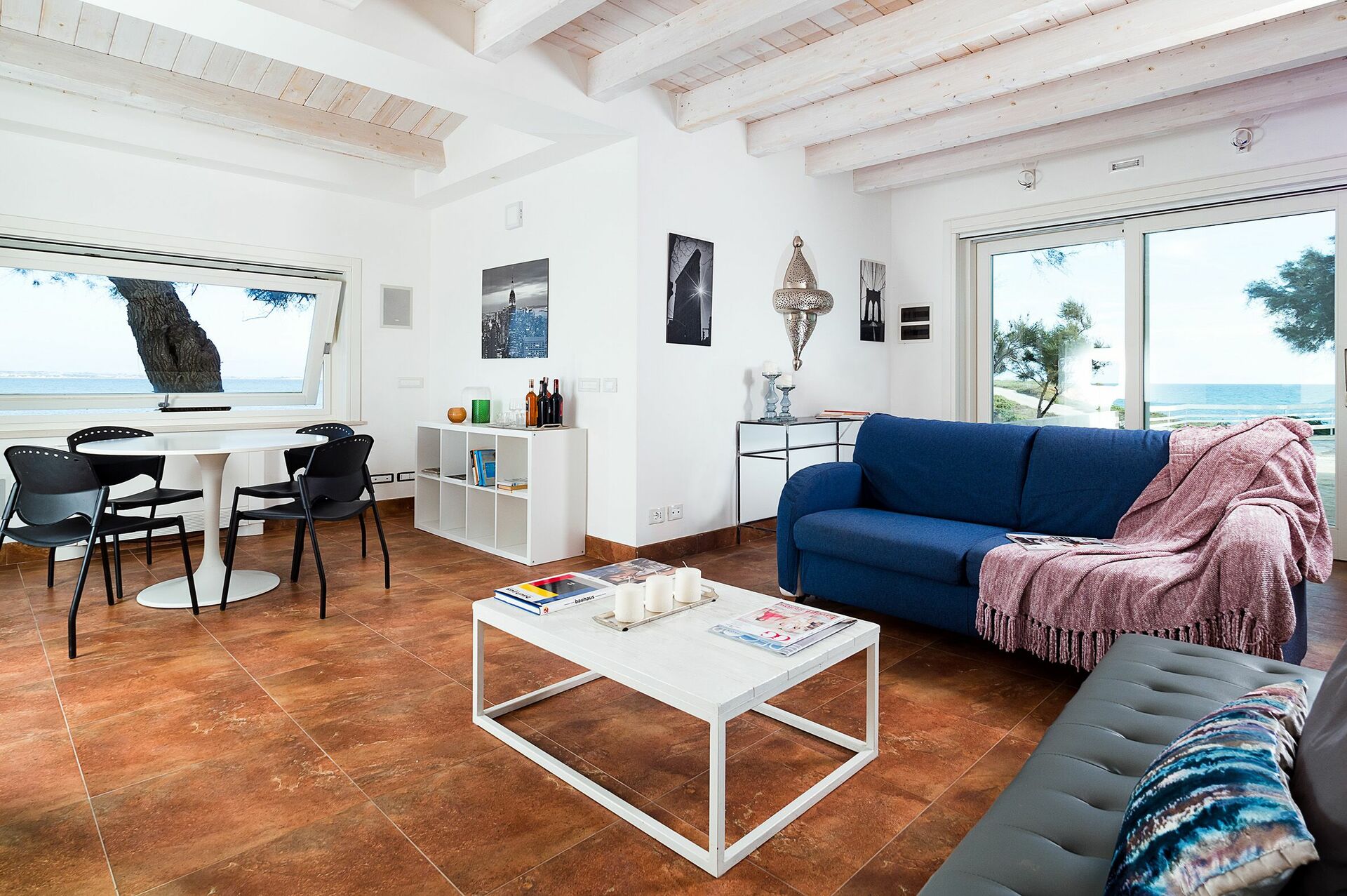 "Baia del Mare" is exclusively located facing the sea and guests can reach on foot a charming golden sandy beach. This house has got 4 bedrooms and hosts easily up to 8 people with renovated interiors, offering all comforts.