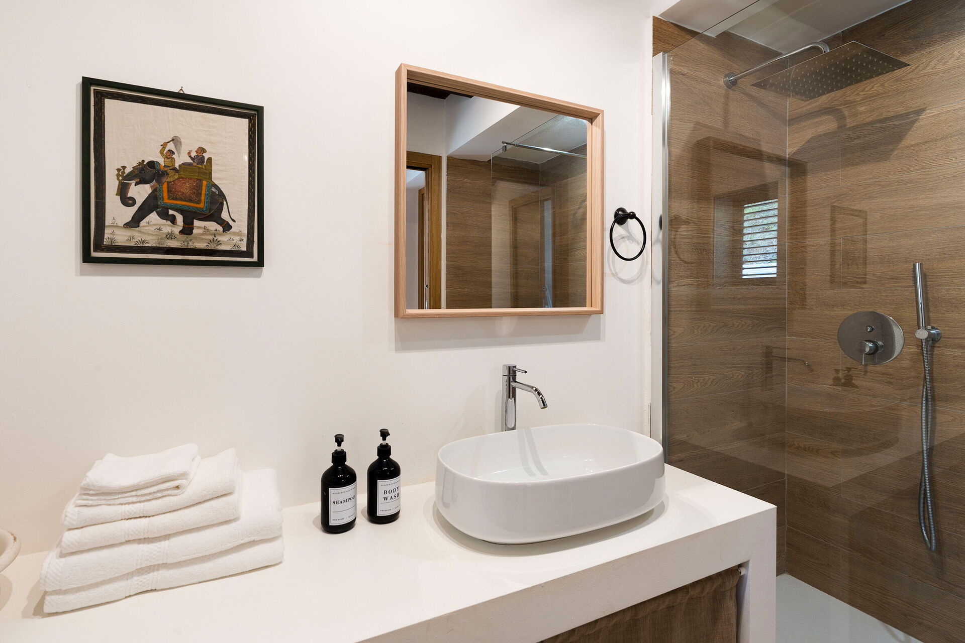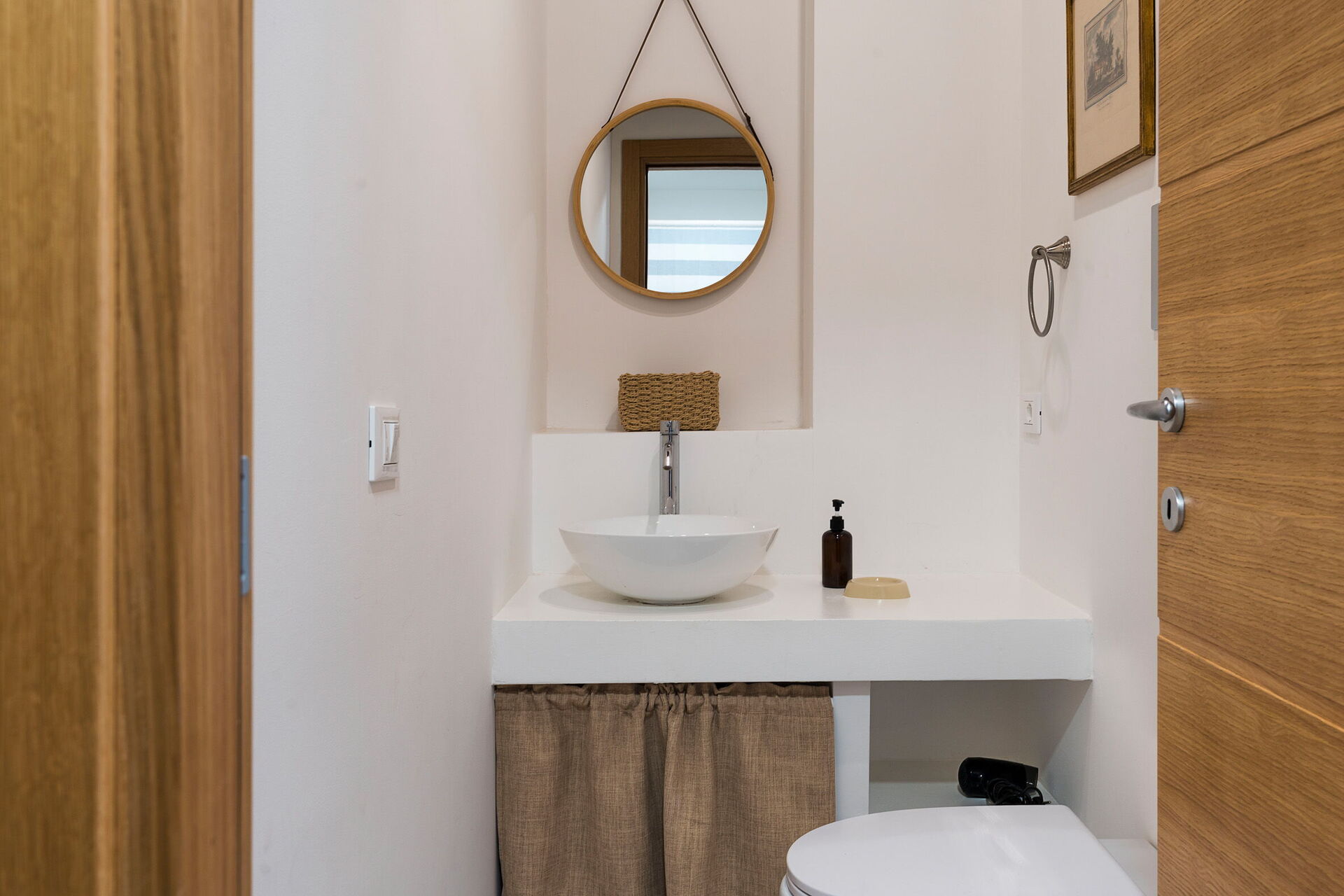 First floor: living room (tv), double bedroom (bed size: 160x200 cm), bathroom with tub. Air conditioning in all rooms. Mosquito nets in the bedrooms.