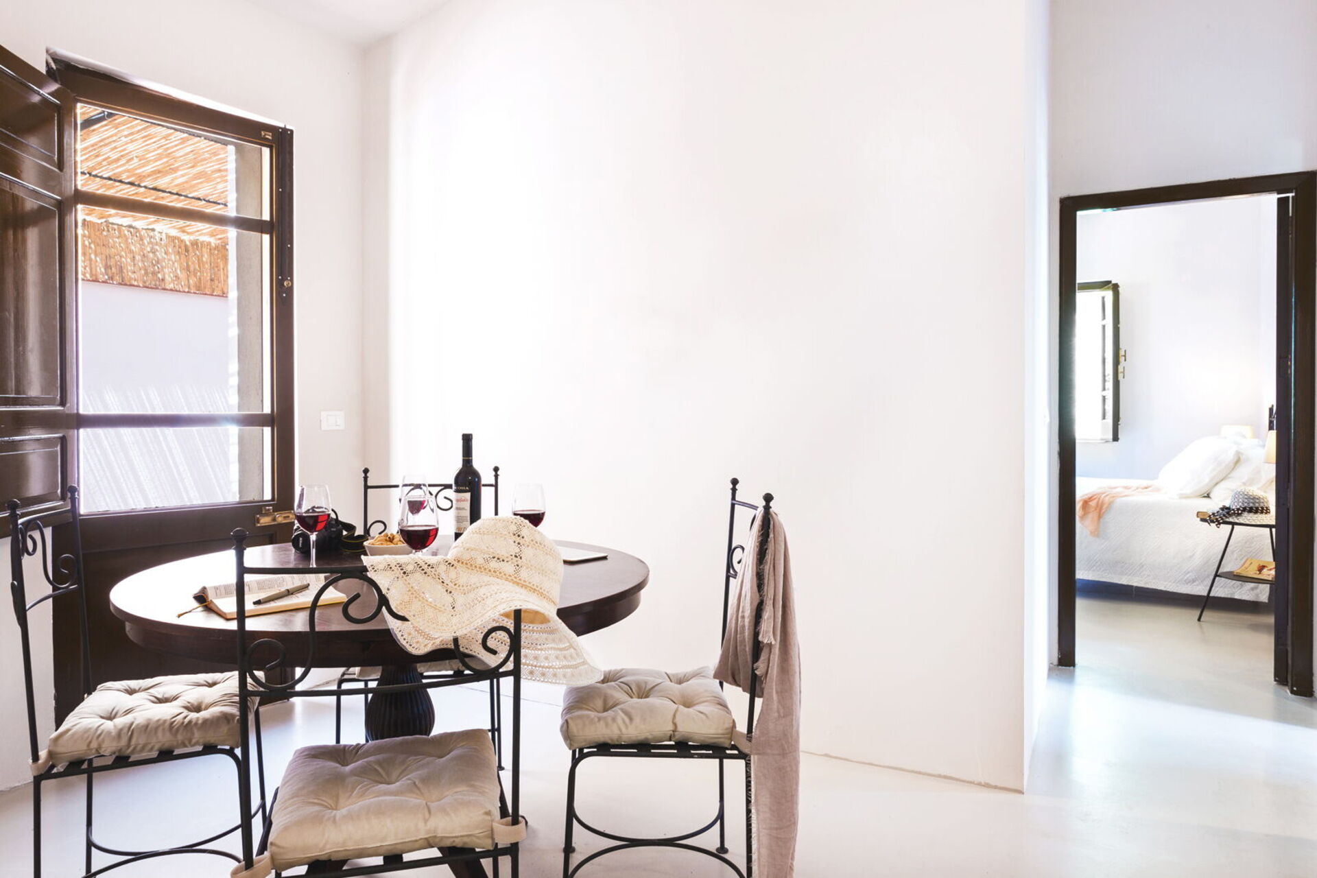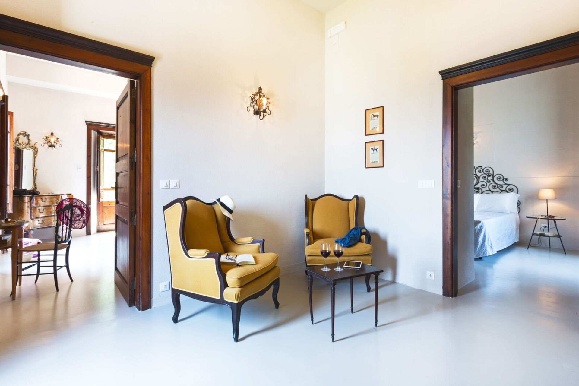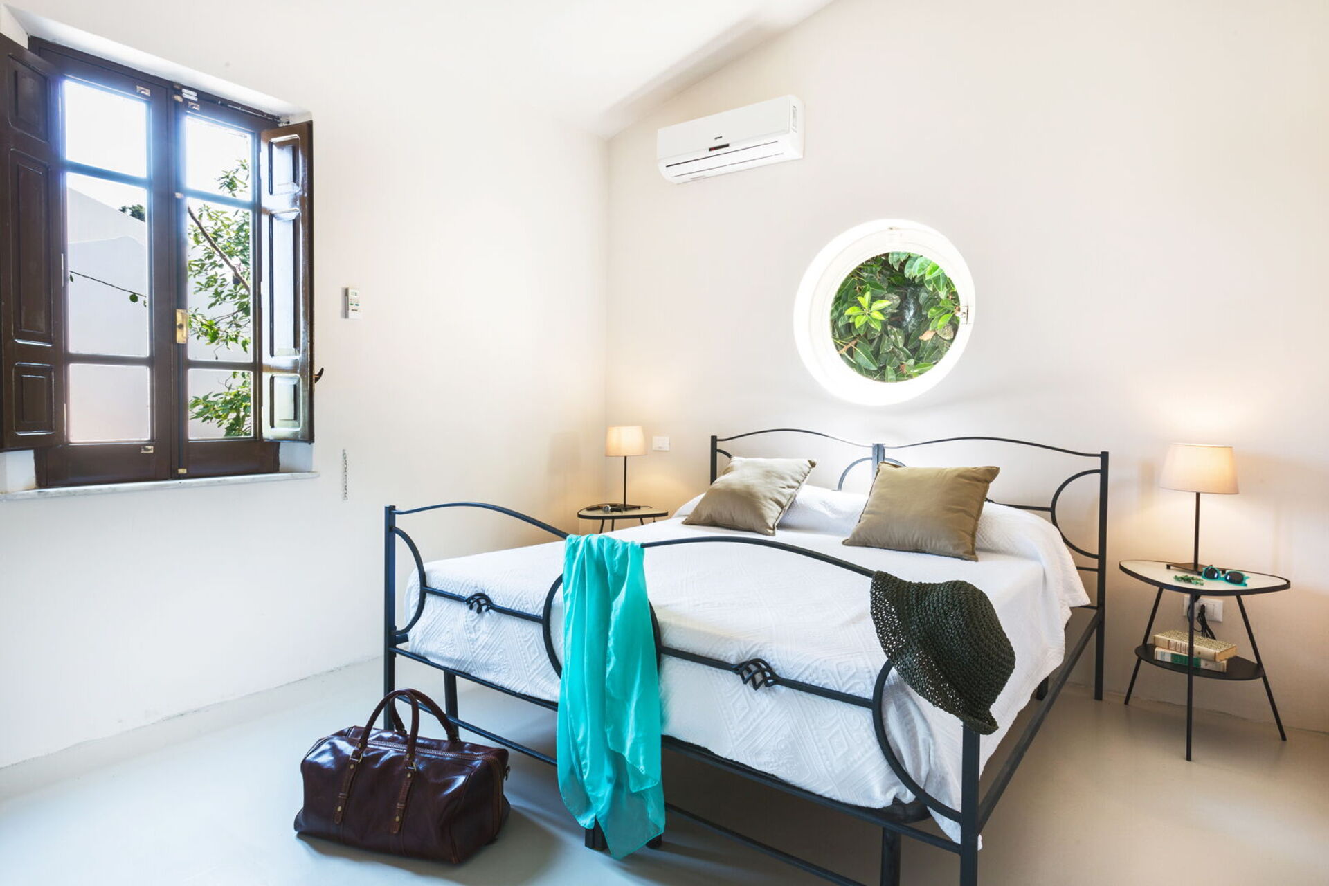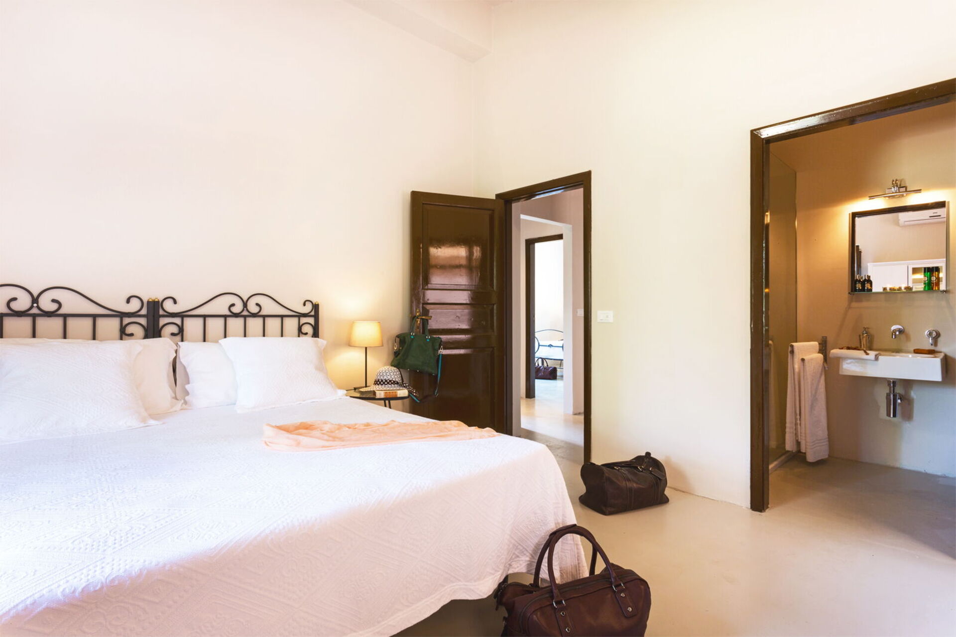 It is nestled in an extensive garden lush with palm trees and centuries-old olive trees. The tastefully furnished interiors have preserved some truly unique elements, like the press which holds up the dining table: a clear link to the villa’s agricultural past.