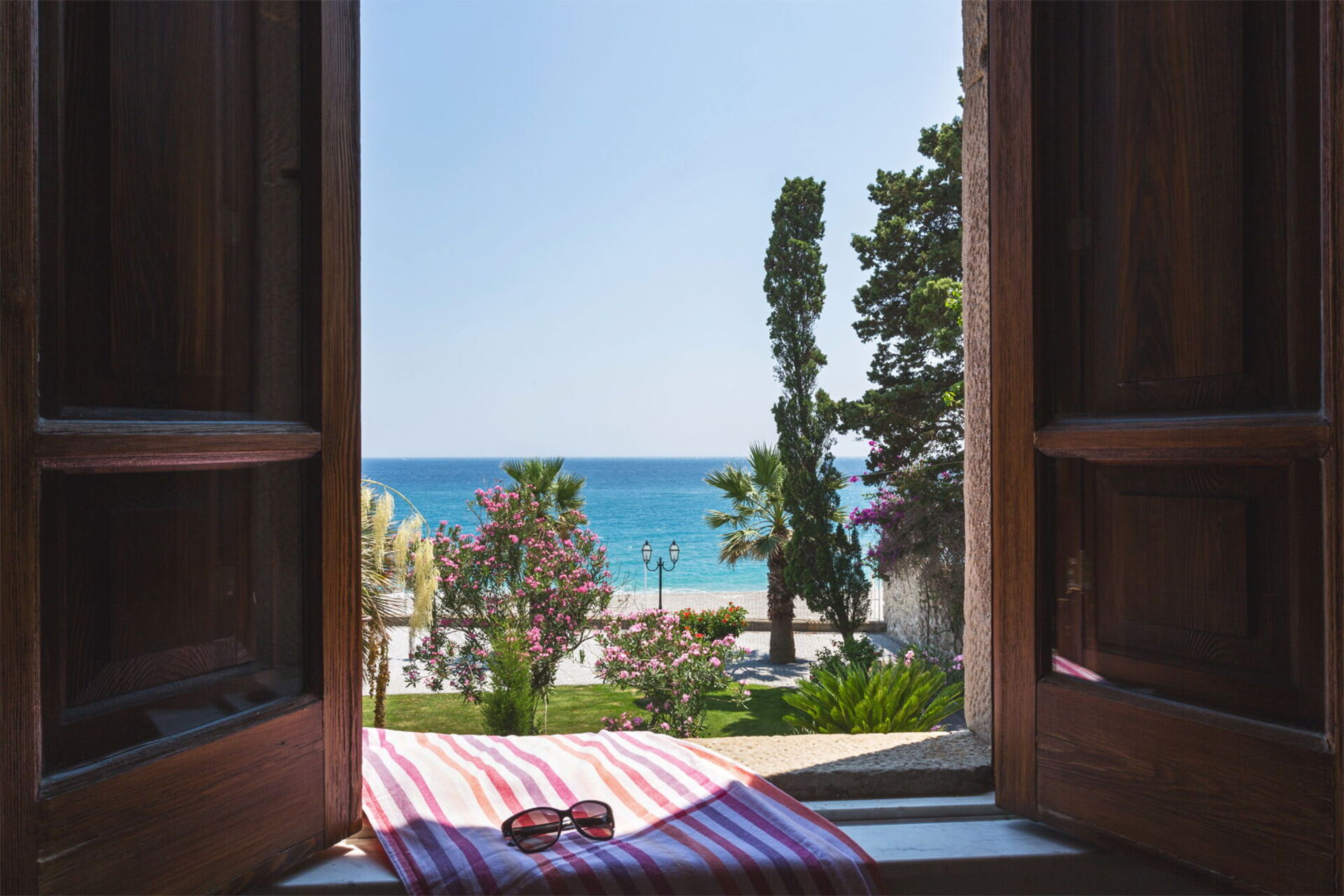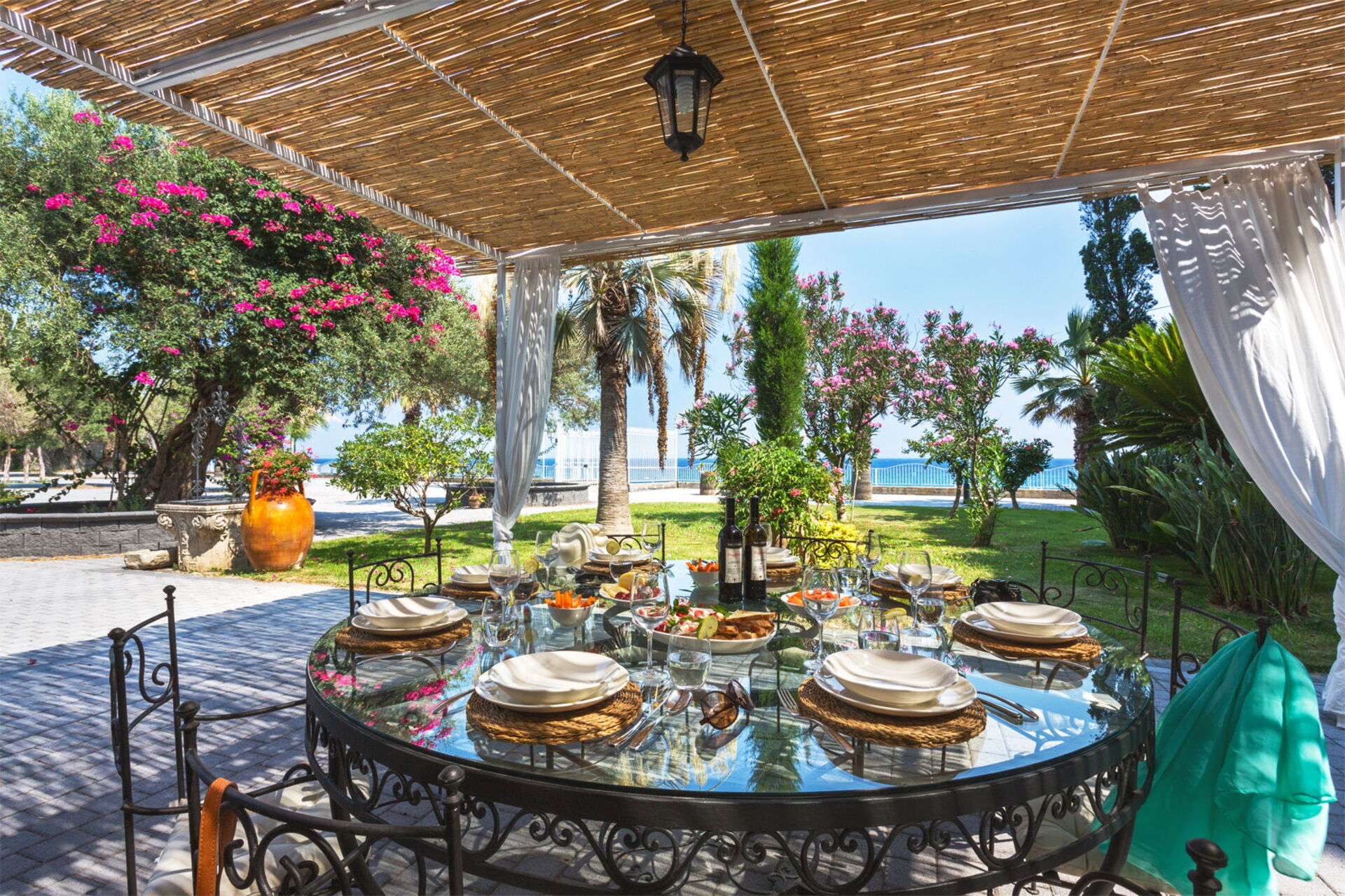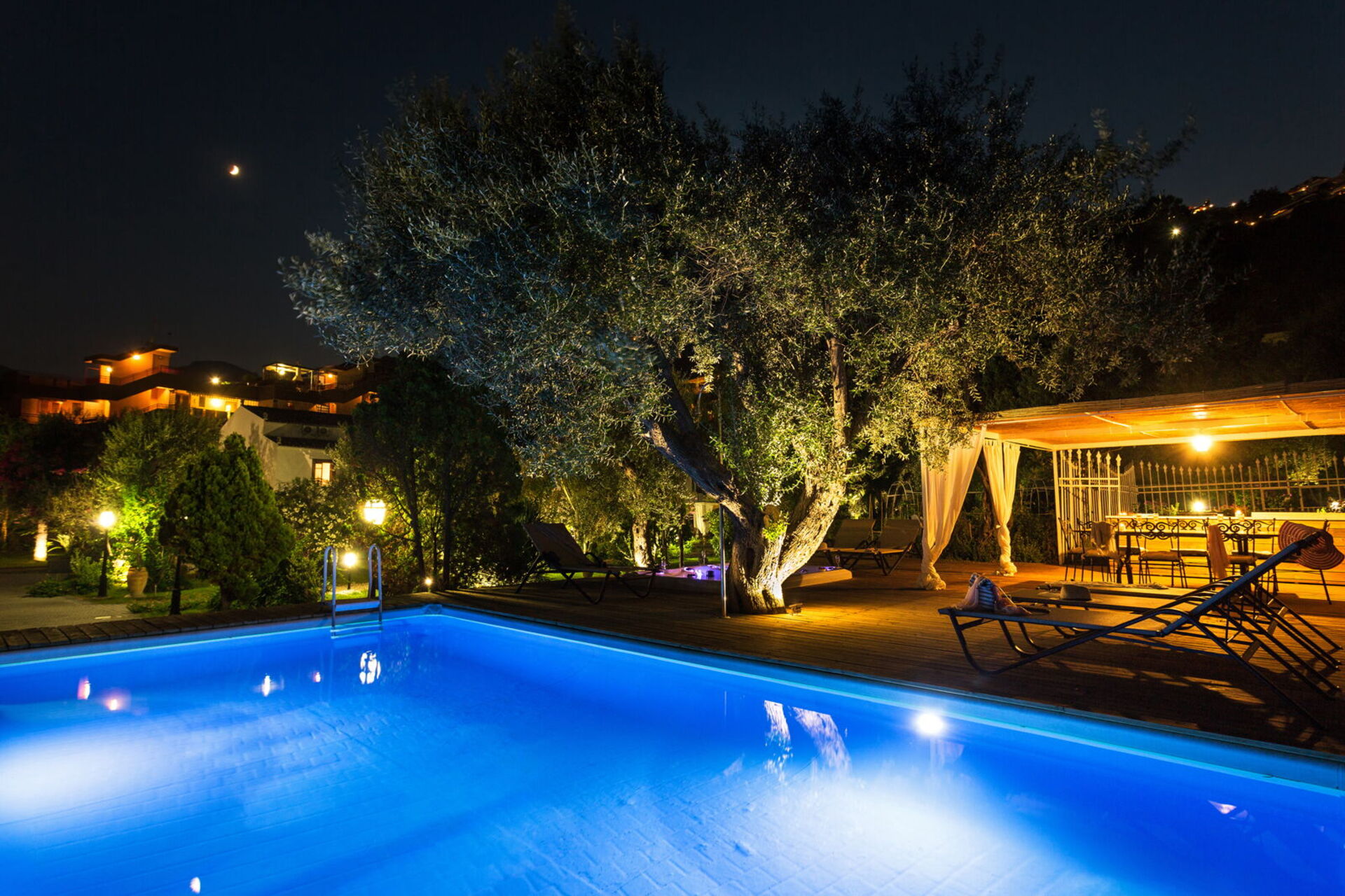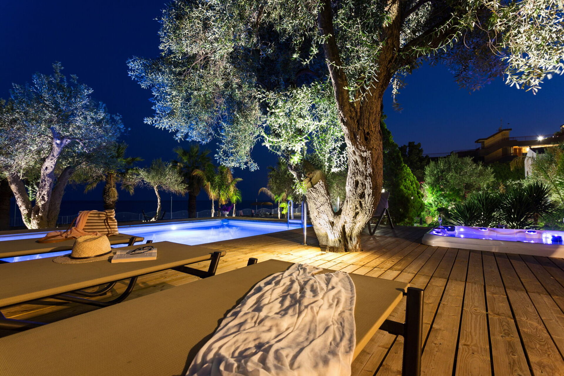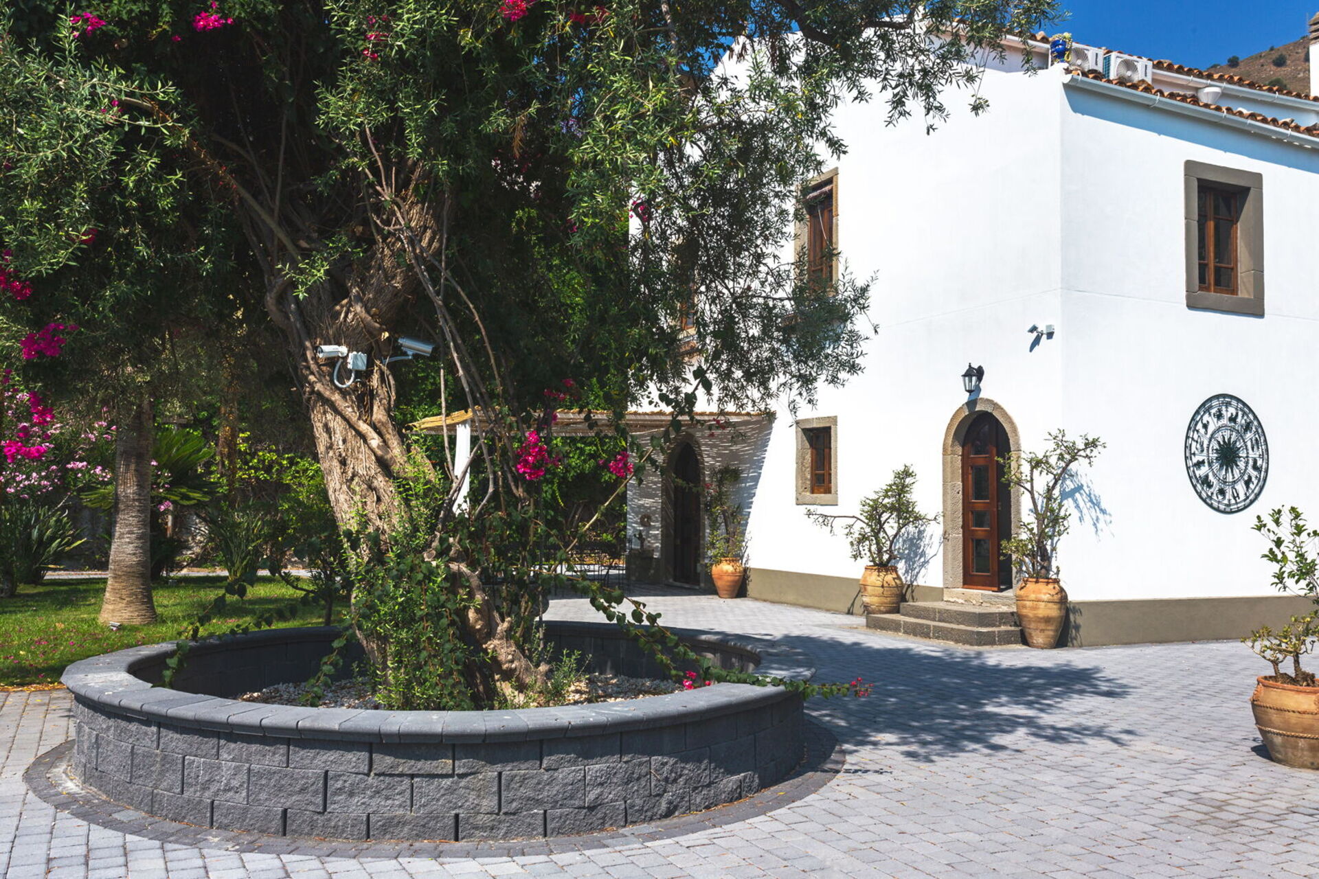 - private garden with palm trees and centuries-old olive trees