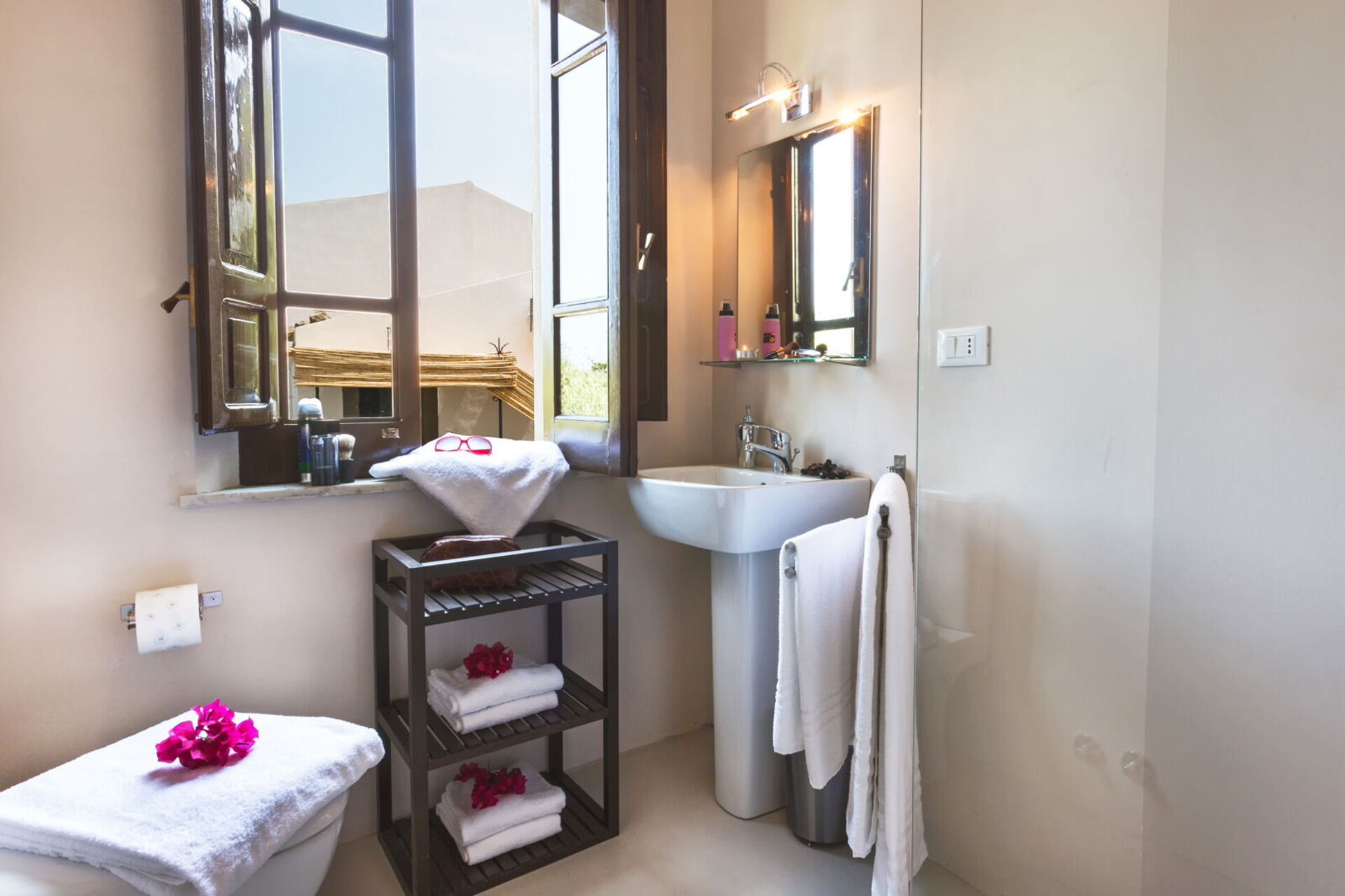 First floor: 2 double bedrooms (air conditioning), each with a private bathroom with shower.