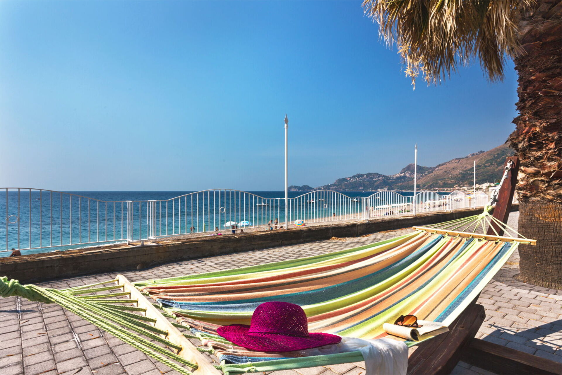 Distances: Letojanni (pebbly beach) 10 meters, Letojanni town center (shops of all kinds) 2 km, Isola Bella (rocky coast) 6 km; Giardini Naxos 10 km, Taormina 14 km, Etna (Linguaglossa) 27 km, Catania Airport 65 km, Syracuse 118 km.