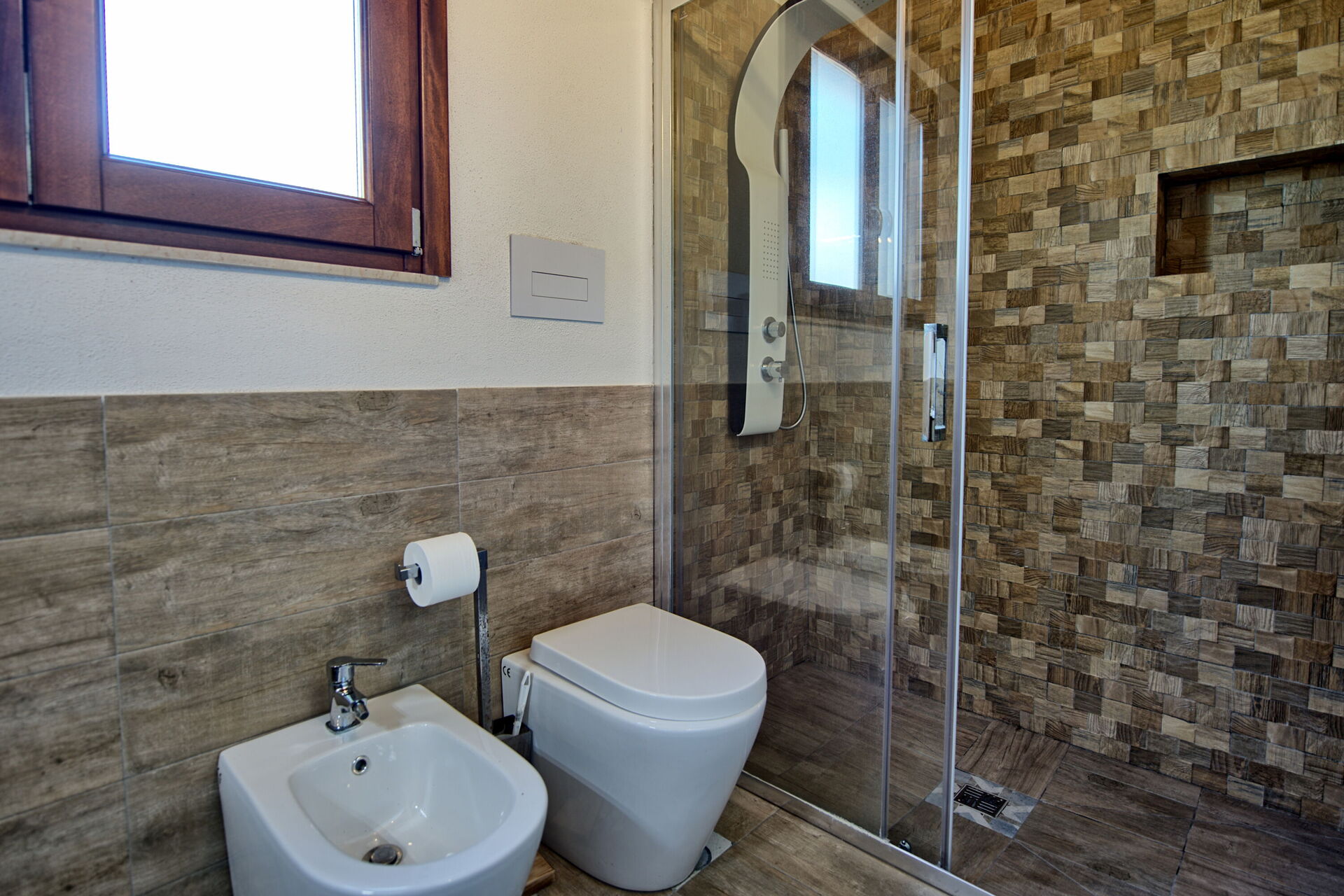 Ground floor: dining area (satellite TV) with kitchen corner (cooktop, oven, refrigerator, freezer, dishwasher, microwave, toaster, espresso coffee maker), 3 double bedrooms (air conditioning), 2 bathrooms with chromotherapy shower.