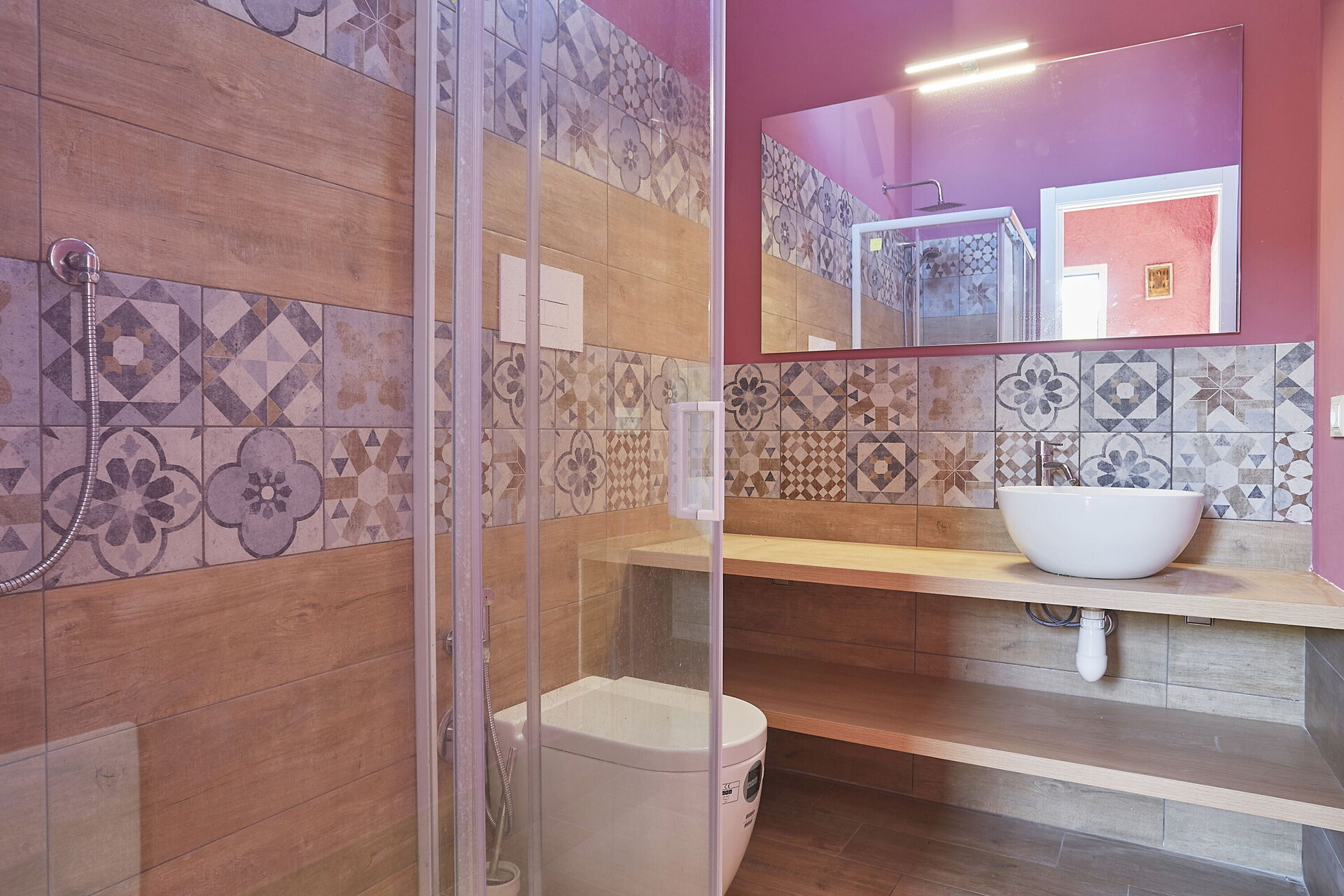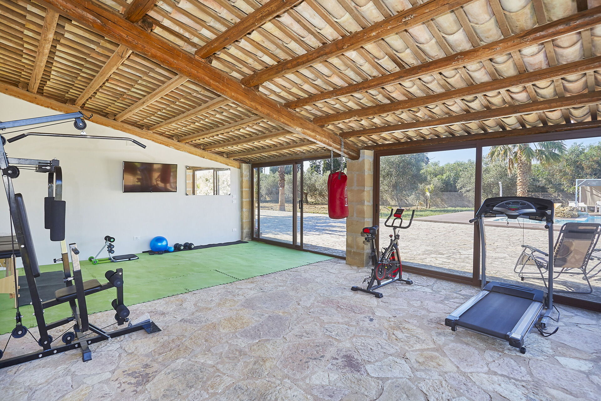 - gym with relaxation area with bathroom with 2 chromotherapy showers