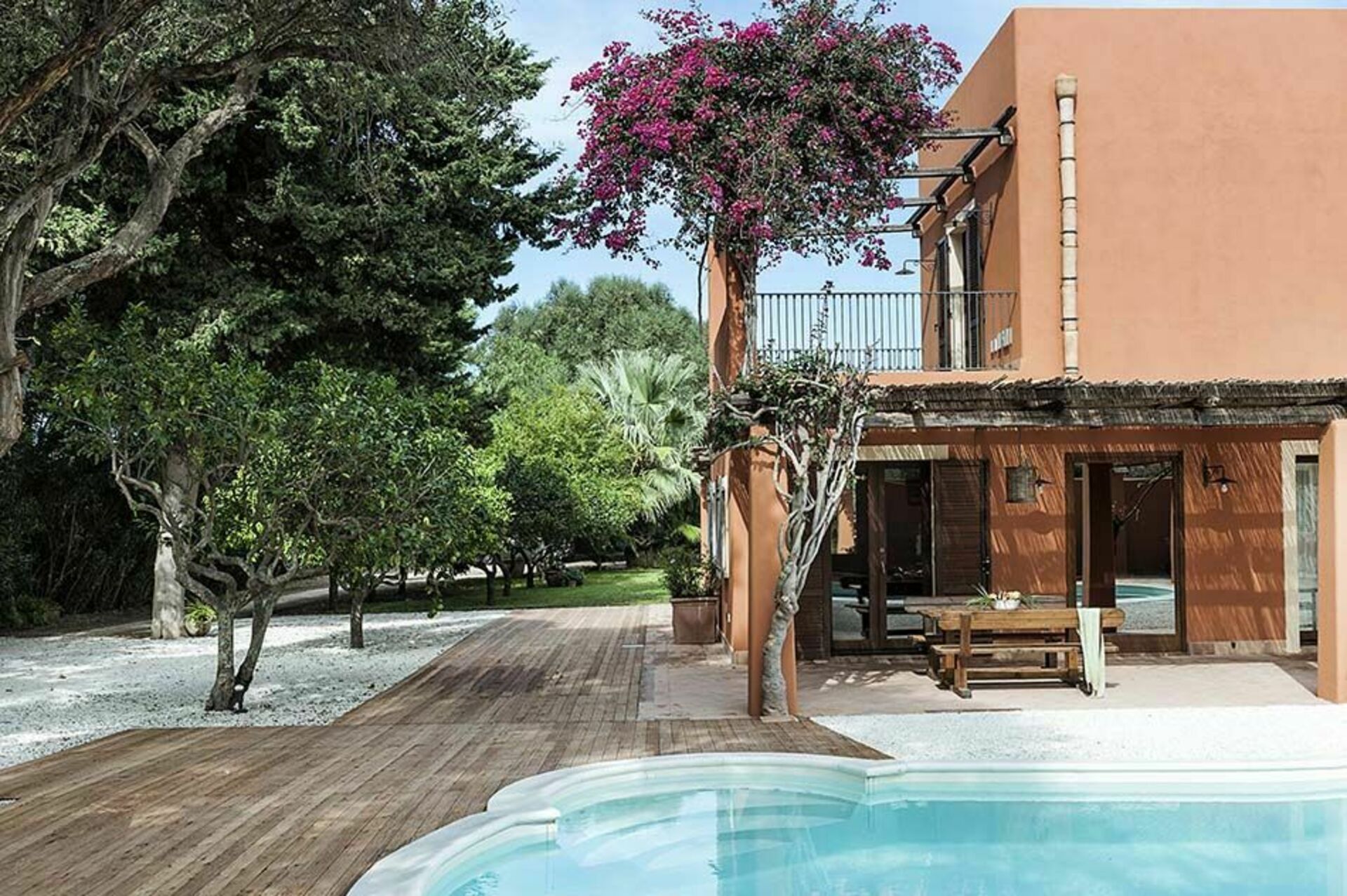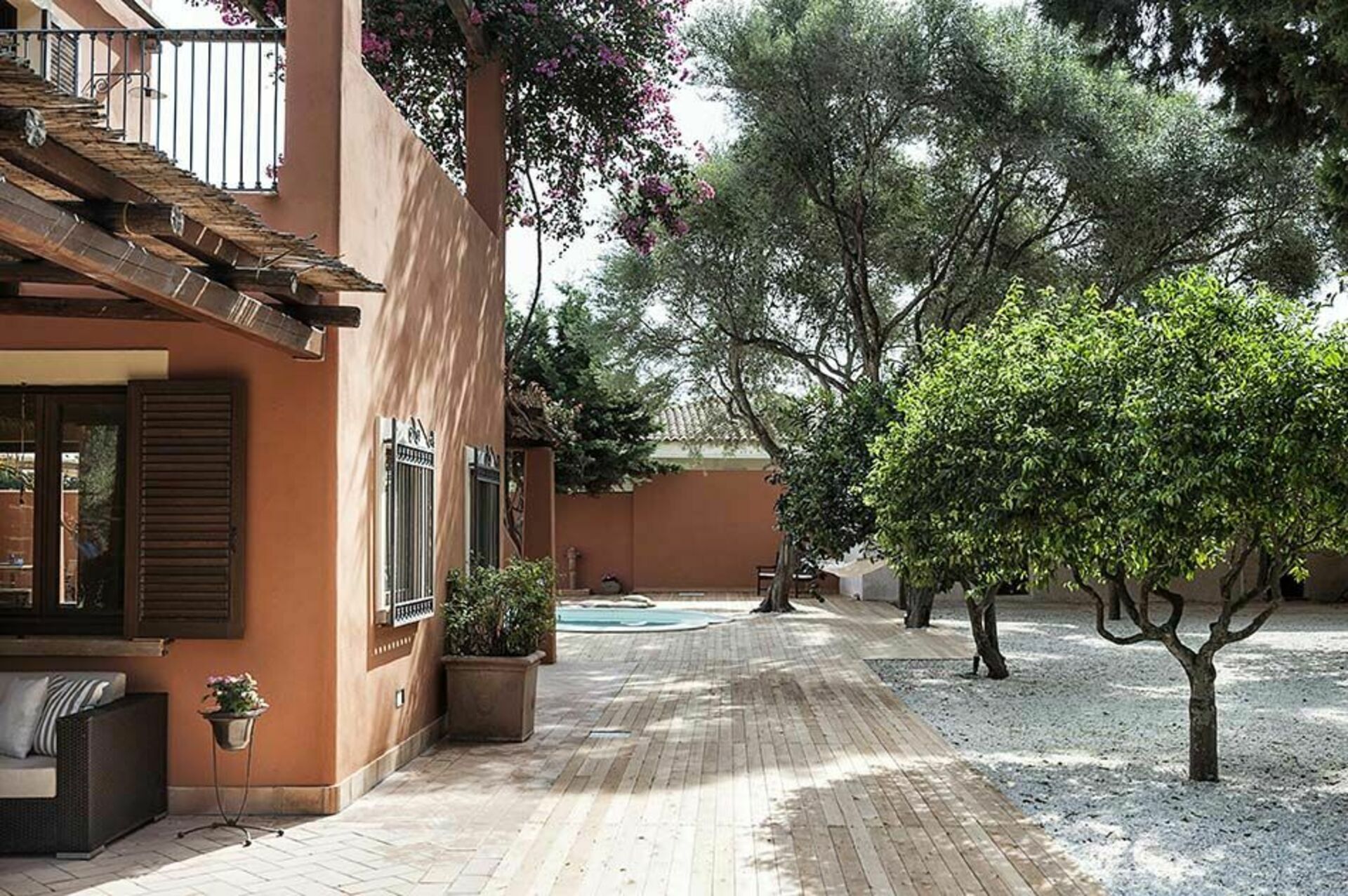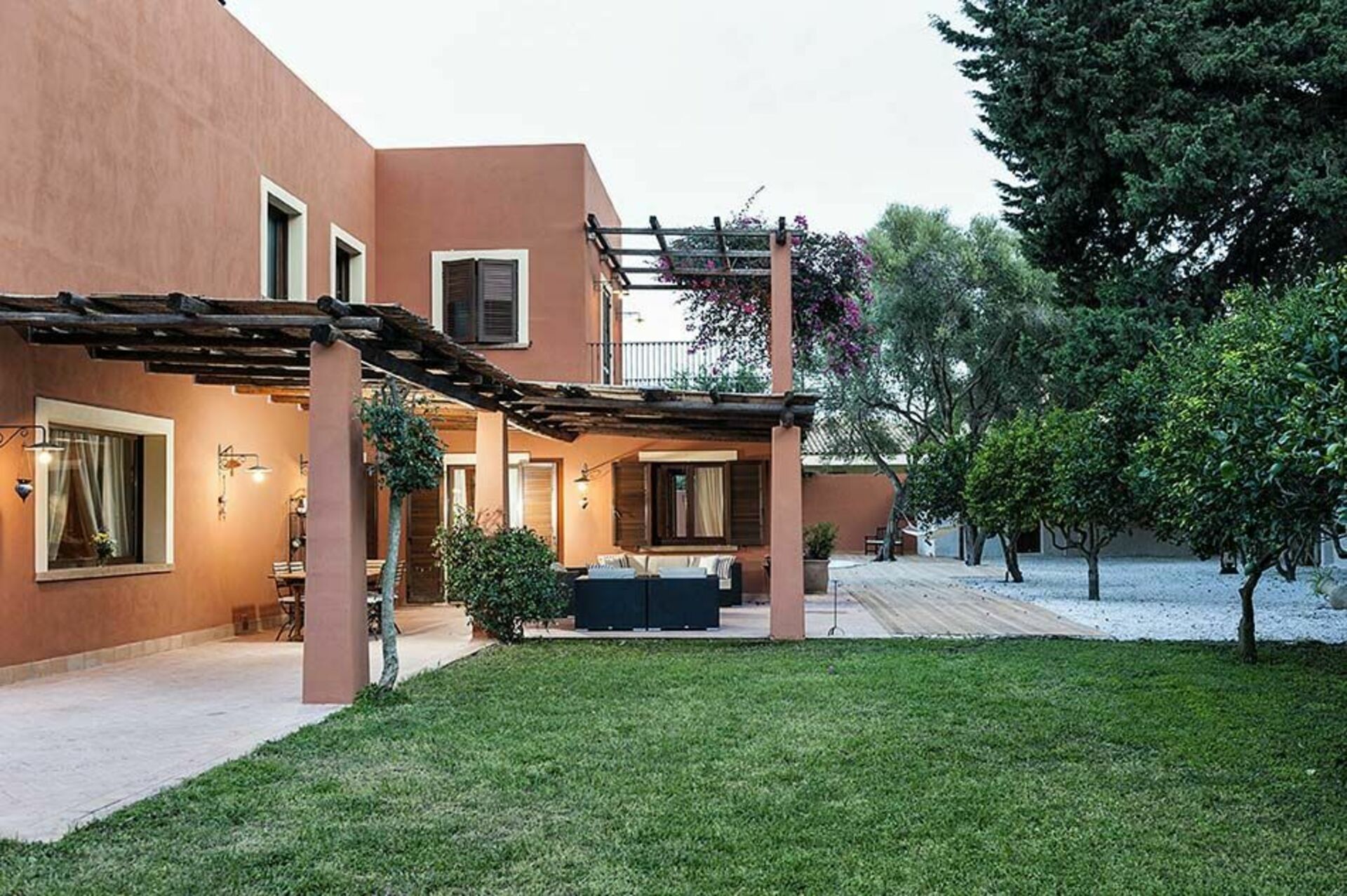 Outside the villa, its sunny terraces and the pool are framed by a delightful garden with lawn. The location of villa Arangea is also ideal for exploring the charming surrounding area. The beaches and the historical centre of Marsala, the salt pans and the Stagnone lagoon with the island of Mothia, Trapani, Erice, Segesta, San Vito Lo Capo and the Zingaro nature reserve are all a few kilometres away.