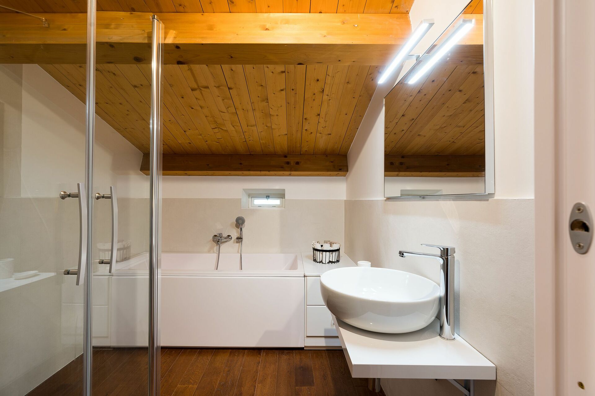 Second floor (in the attic): 1 suite with double bedroom, and private bathroom with bathtub and shower.