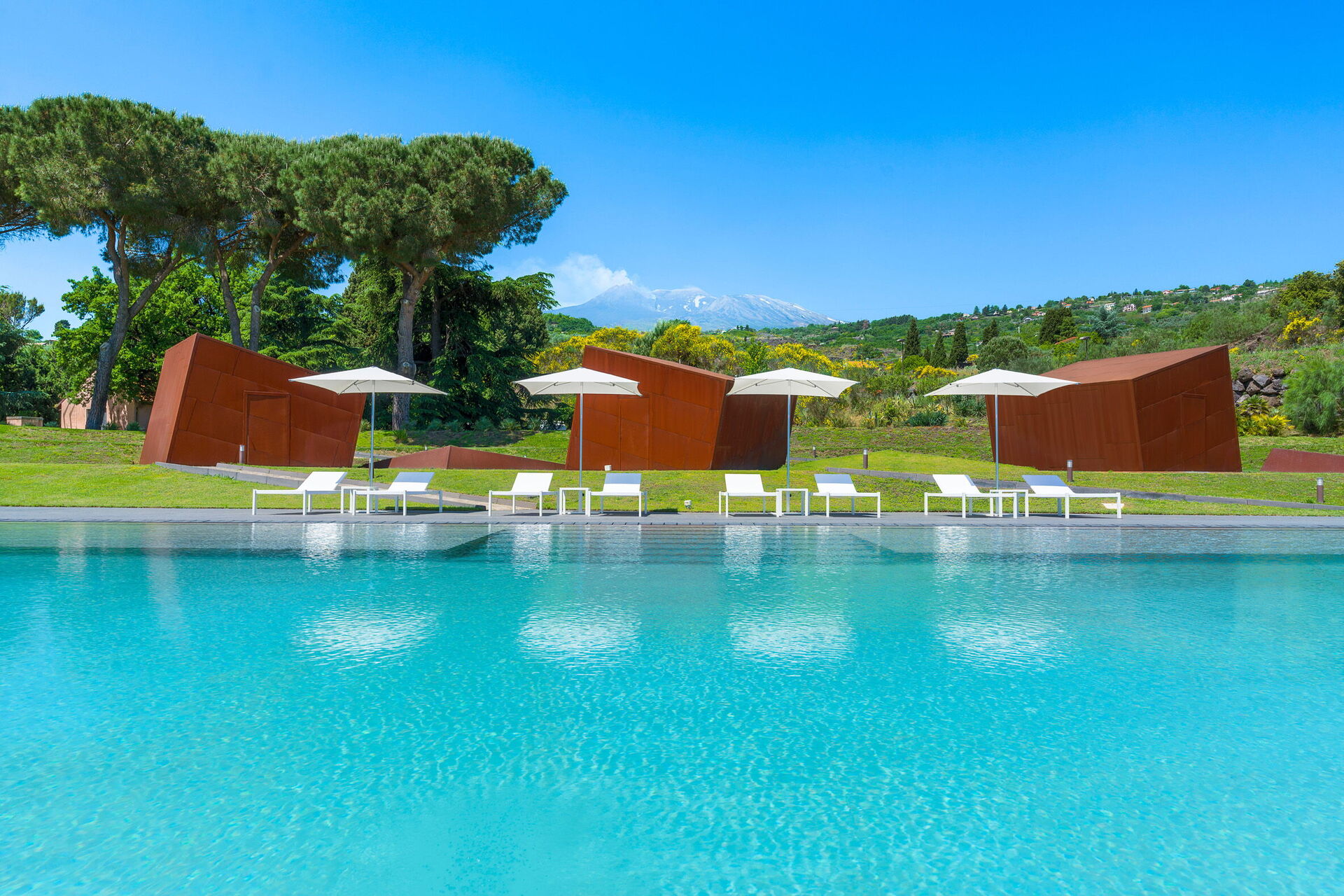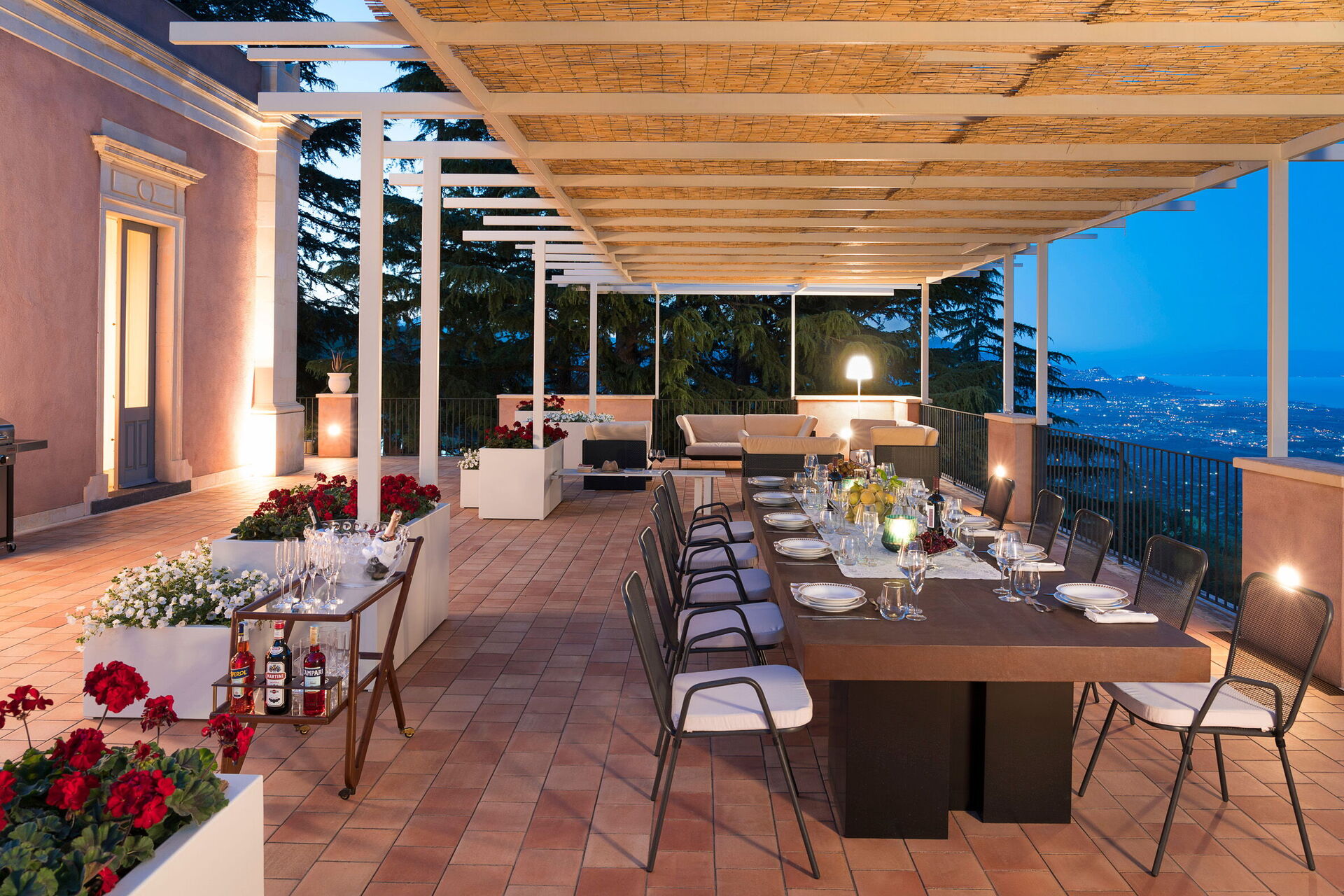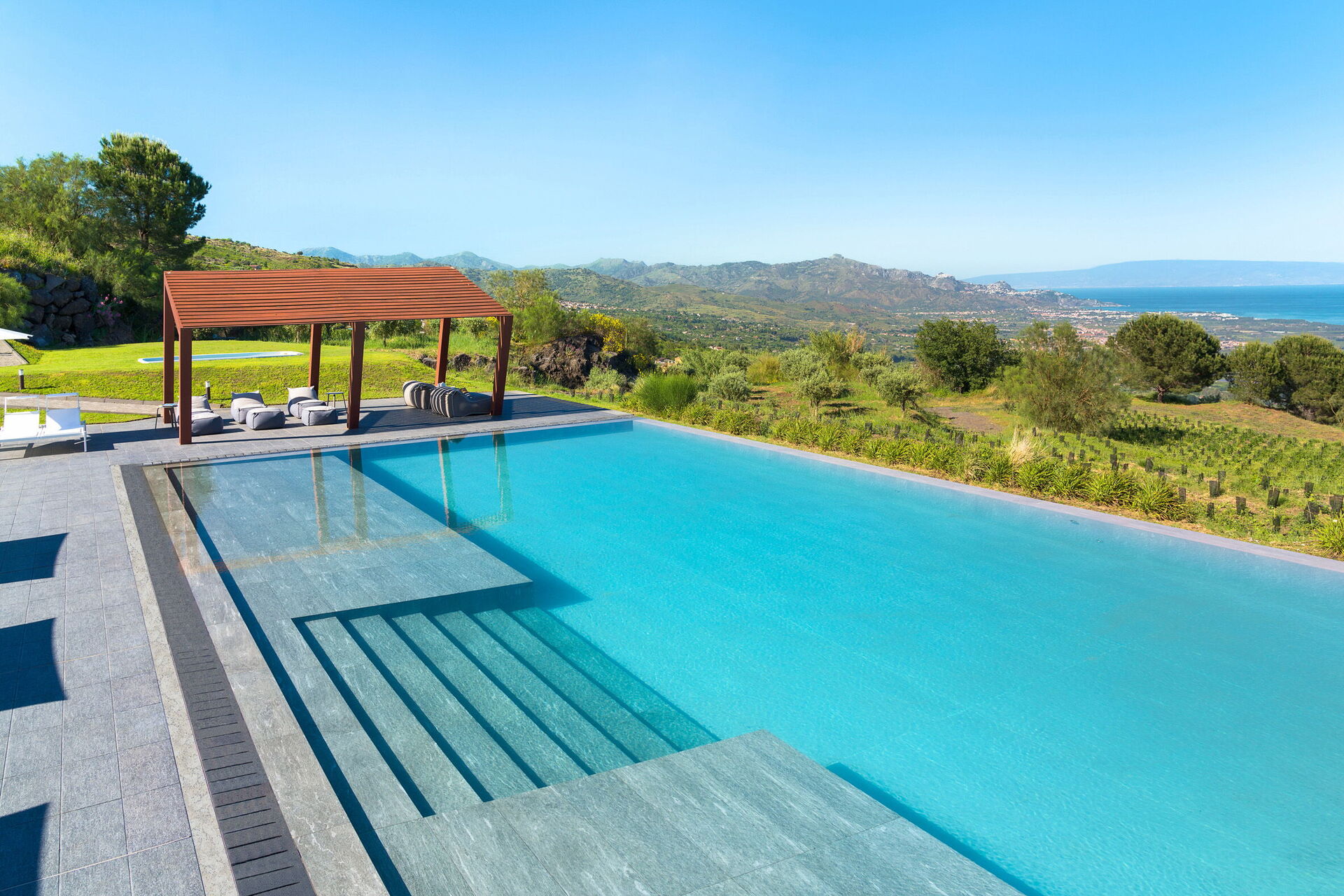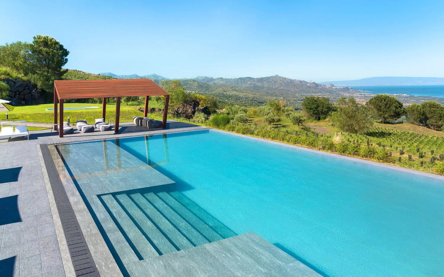 Tenuta della Contea is a fantastic holiday rental villa with a private pool in Sicily. It is located between Taormina and Catania in a spectacular panoramic position with breath-taking views of Mount Etna and the sea, which can be admired both from the salt-purified infinity pool as well as from its large terraces.