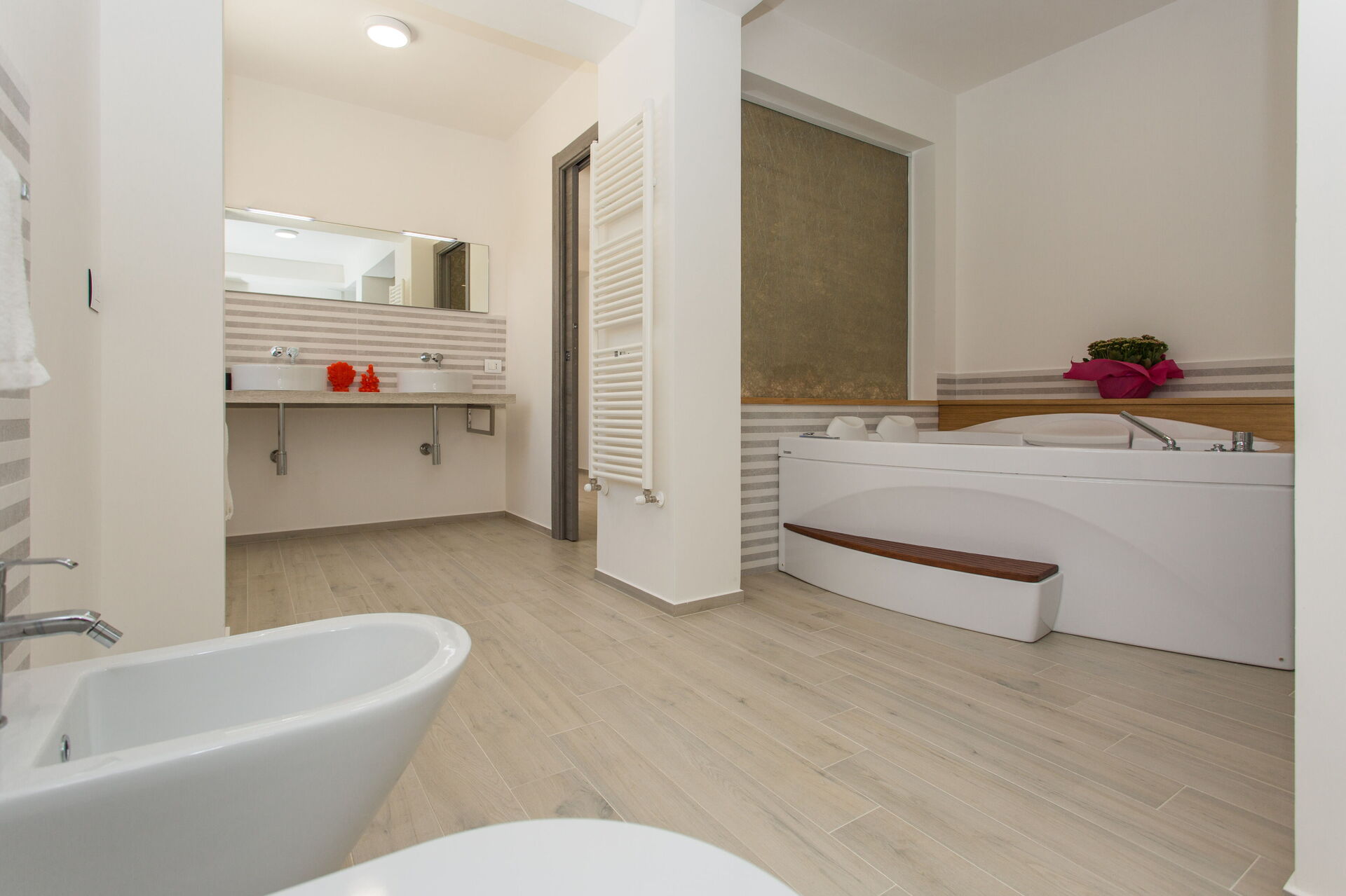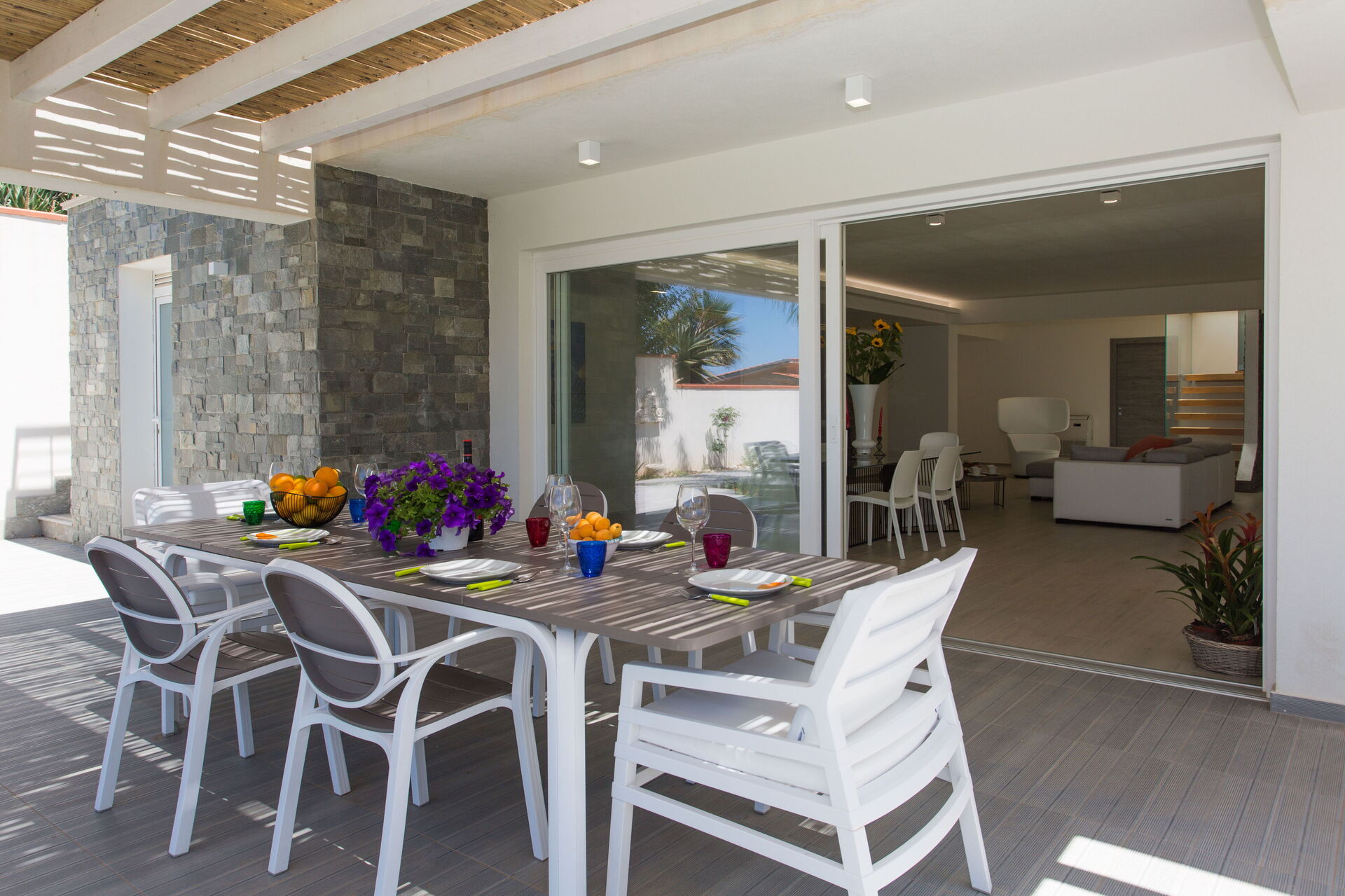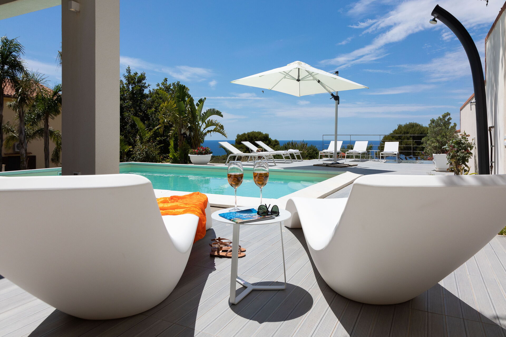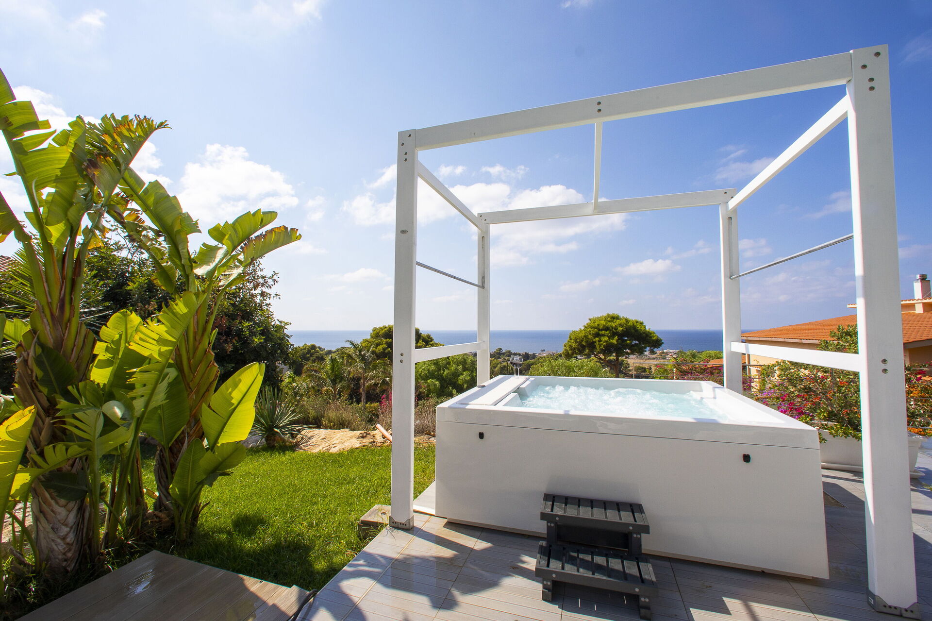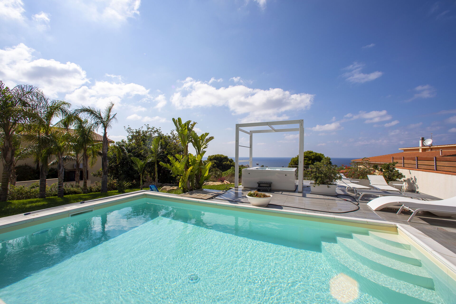 The beautiful garden is lush with native plants and offers an elegant pool and brand new whirlpool tub exclusively for villa guests. There are sun loungers for basking in the Sicilian sun, and a covered terrace for relaxing. There is also a second dining area with a fully outfitted barbecue, right next to the villa entrance, which is perfect for spending lunch and dinner together with family and friends.