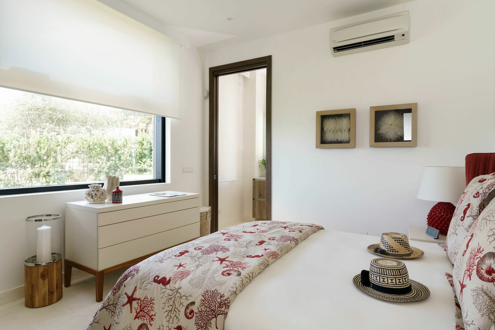 Second floor: double bedroom (with king-size bed) with changing room and private bathroom with bathtub and shower; double bedroom (with king-size bed) with private bathroom with shower.