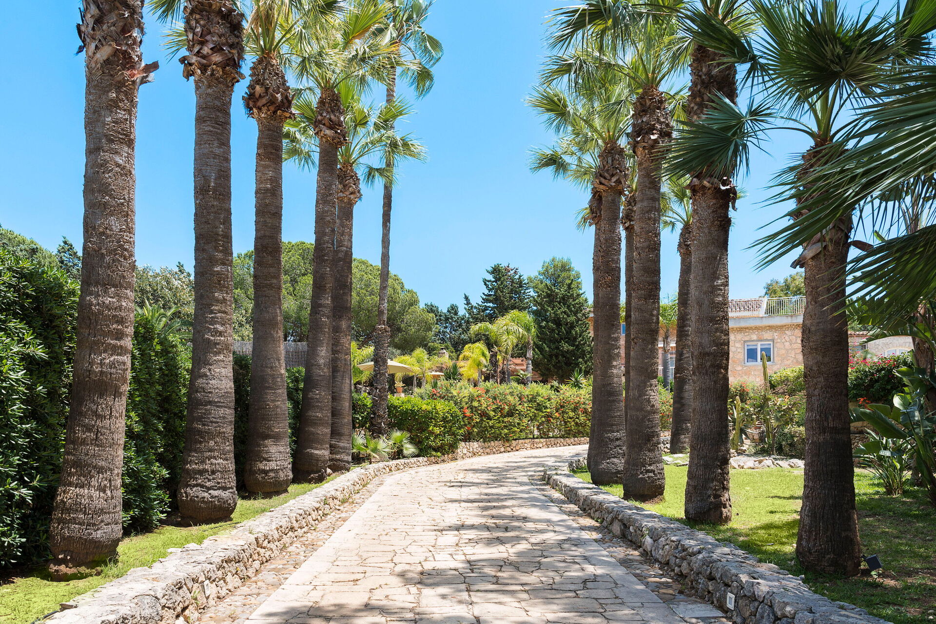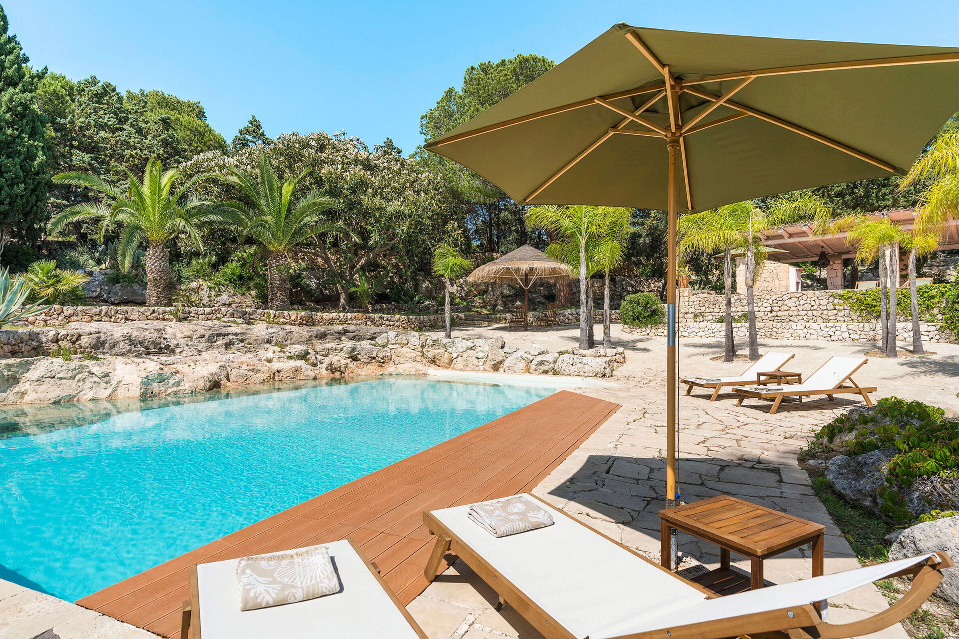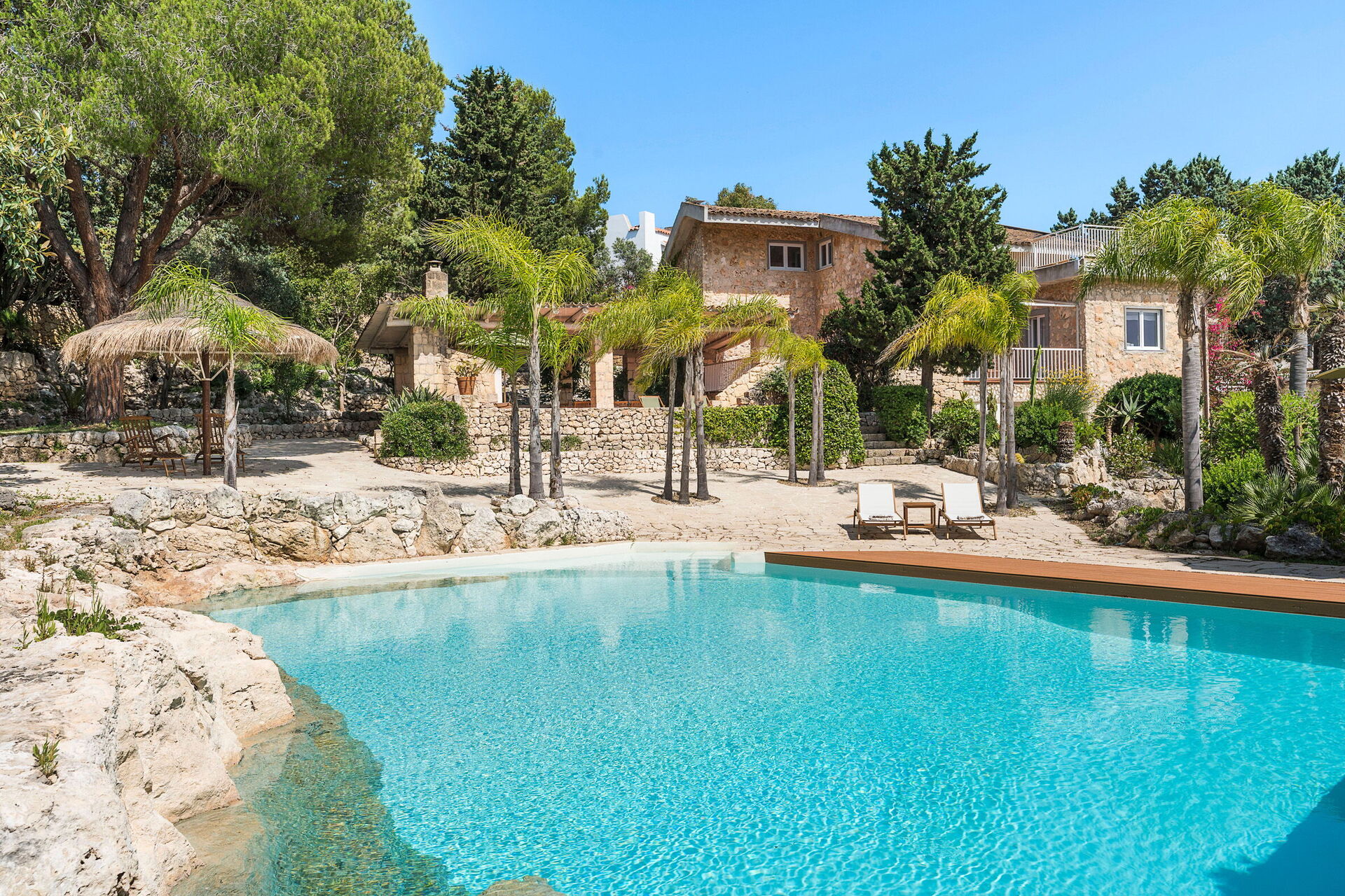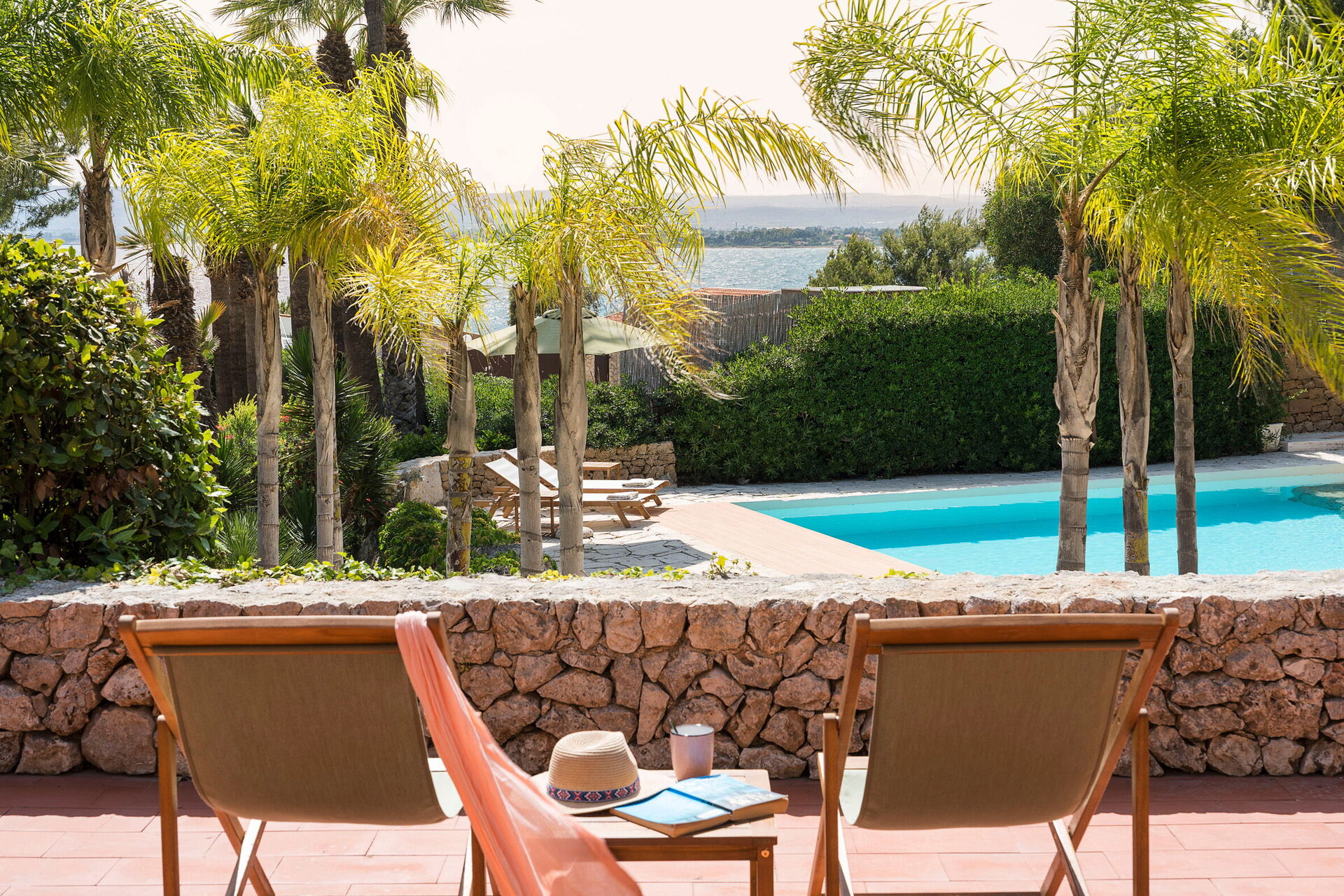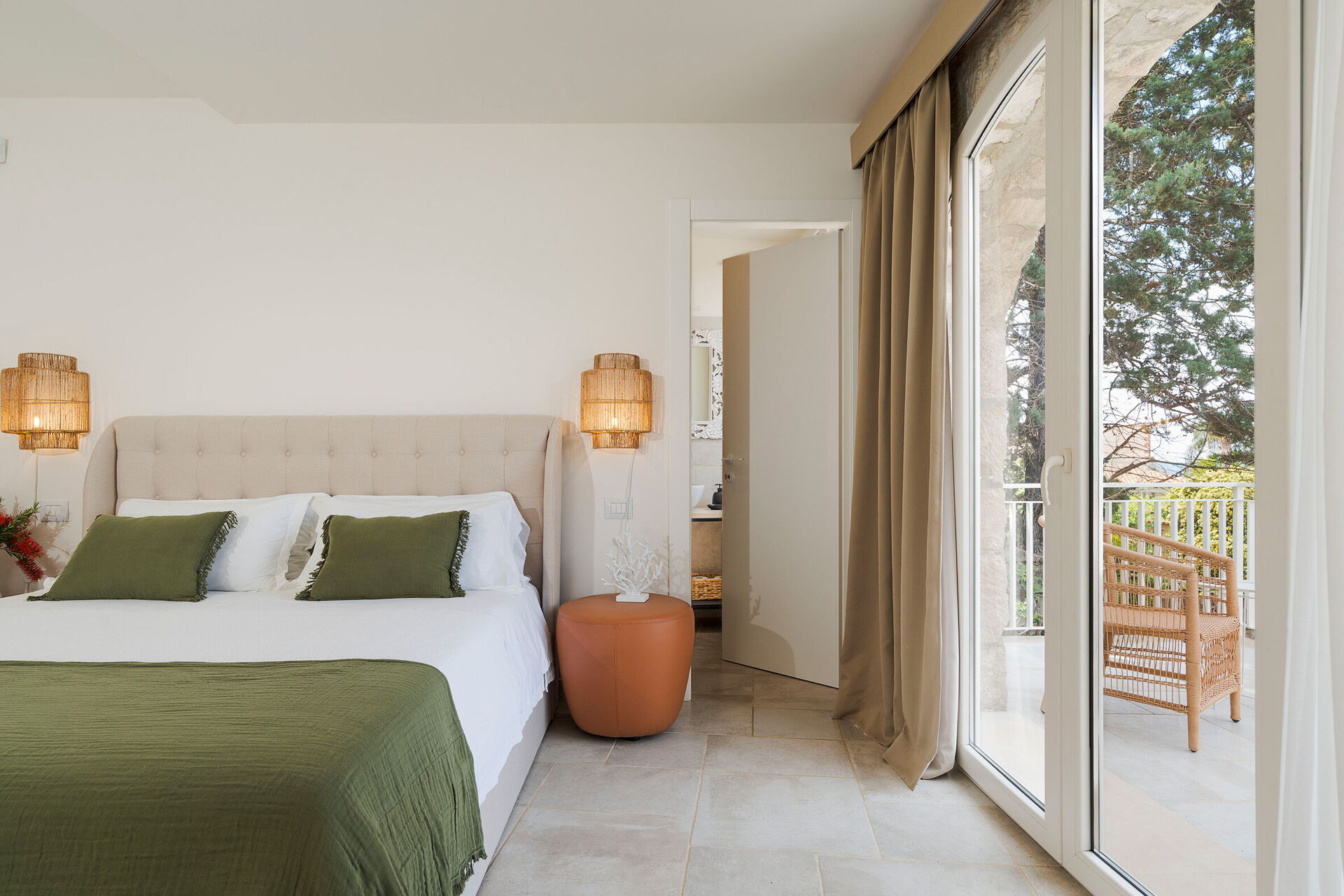 You’ll arrive at Villa Madda via an avenue of palm trees and you’ll find the property immersed in a garden of Mediterranean planting; here you will also discover the characterful pool, enclosed in the rocks.