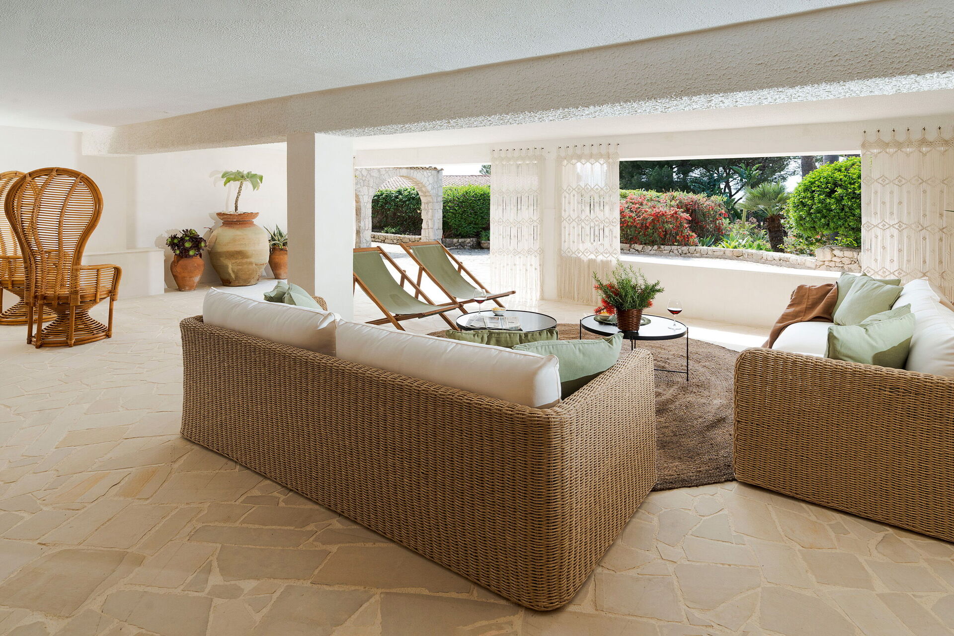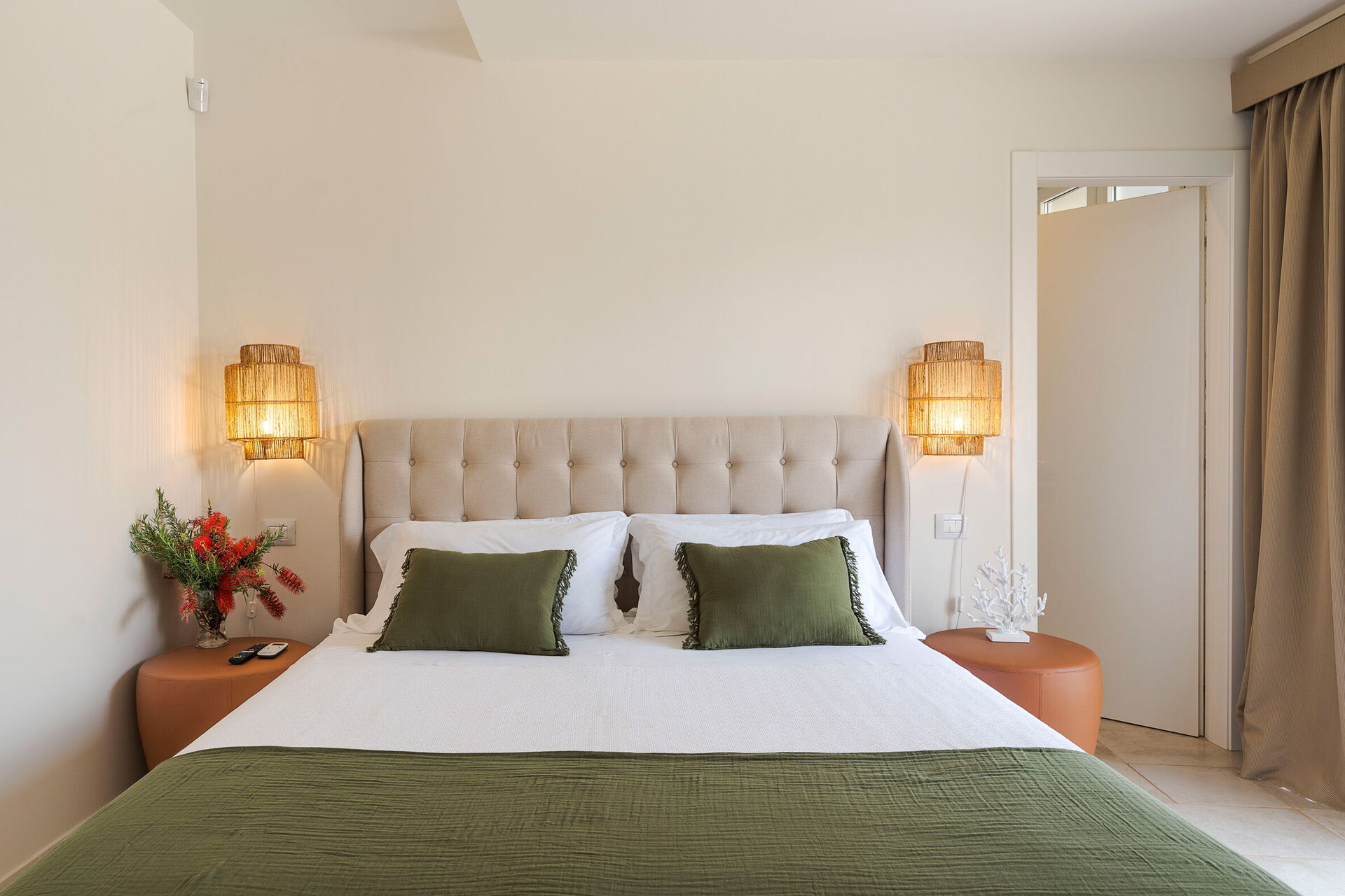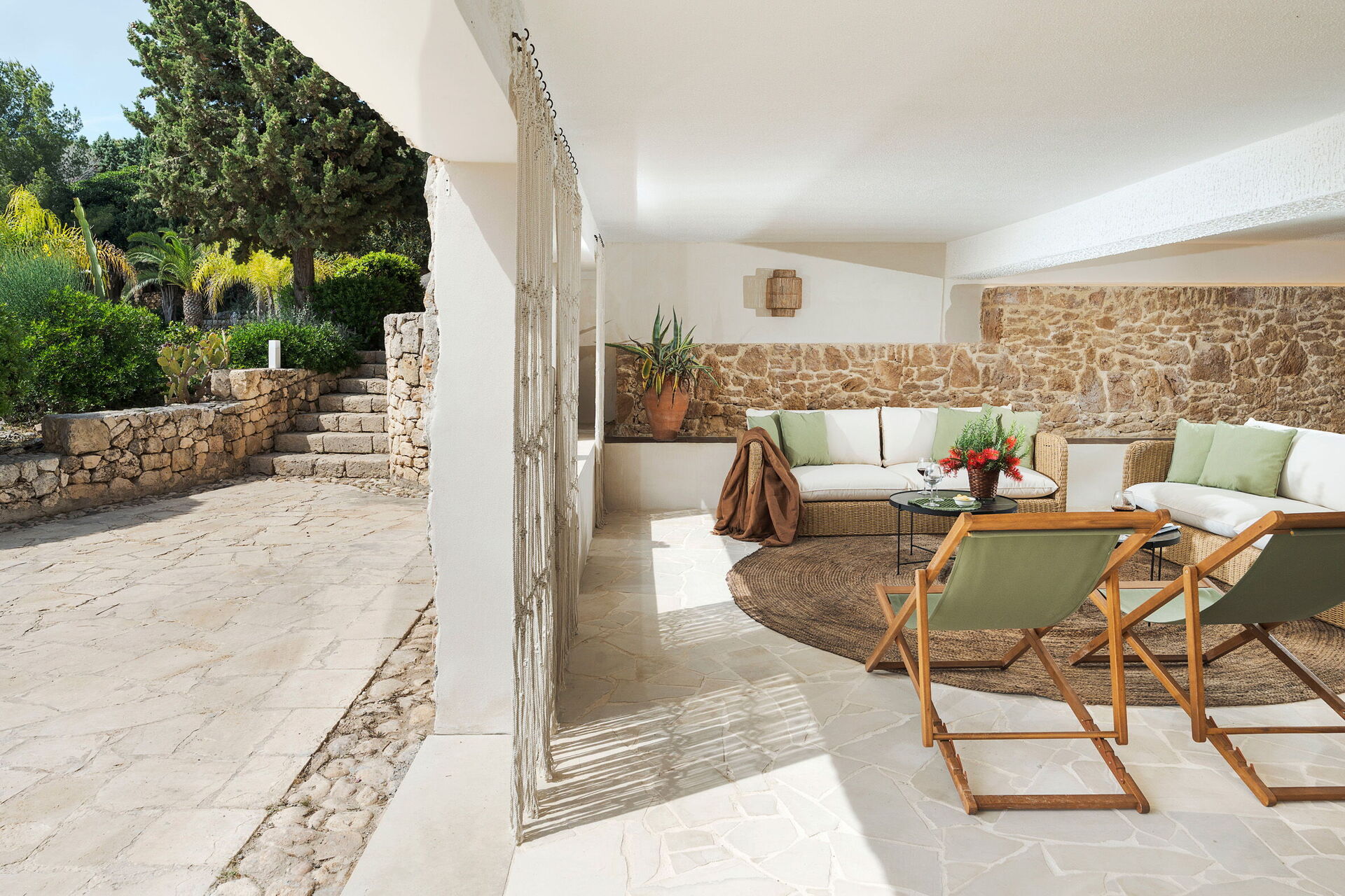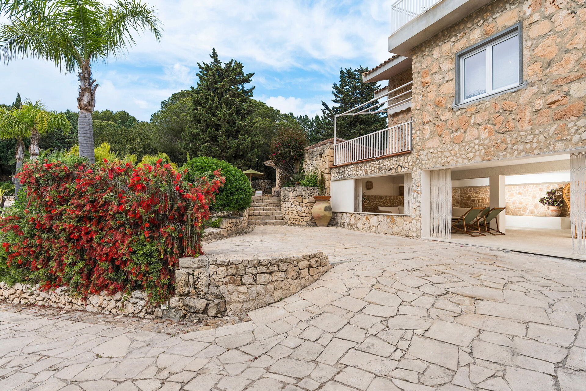You’ll arrive at Villa Madda via an avenue of palm trees and you’ll find the property immersed in a garden of Mediterranean planting; here you will also discover the characterful pool, enclosed in the rocks.