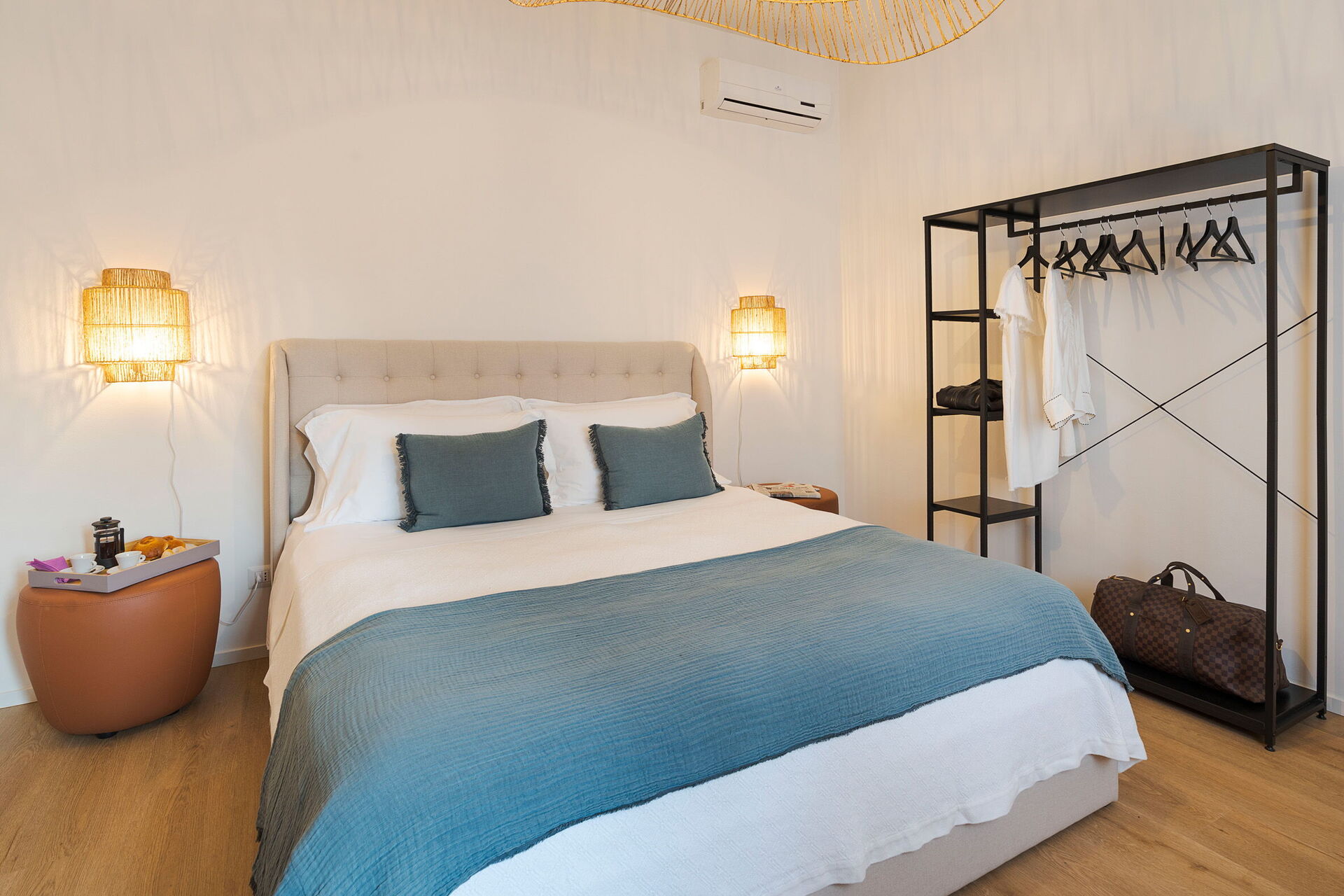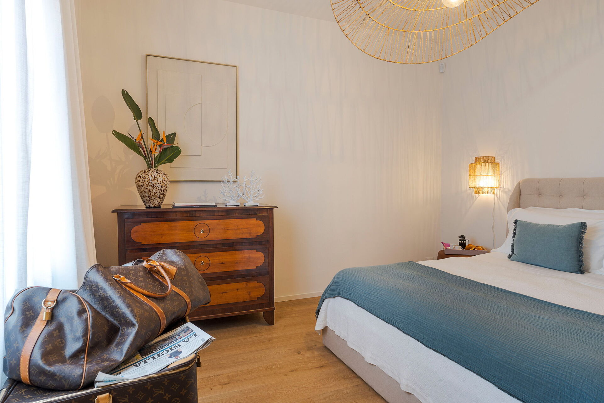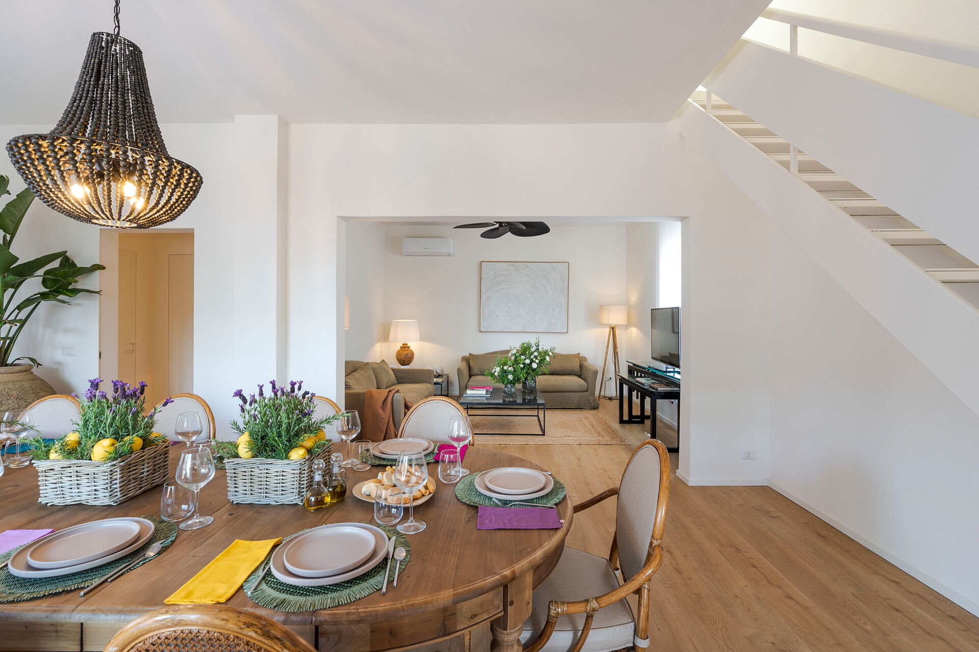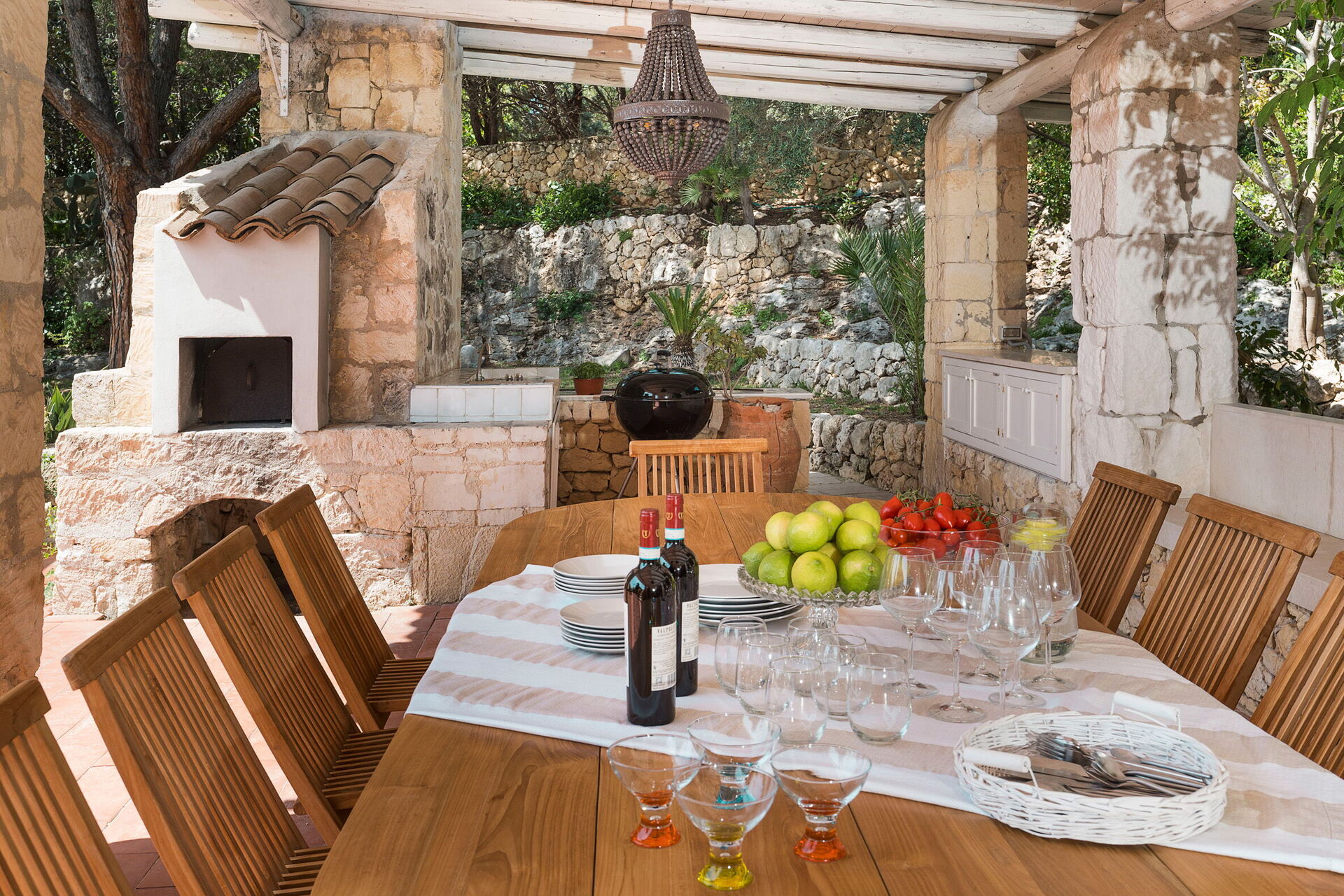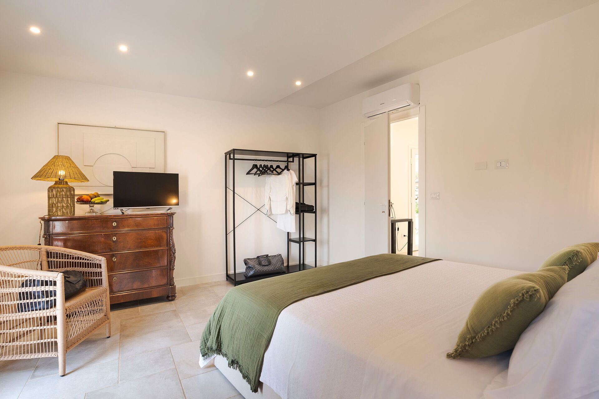 You’ll arrive at Villa Madda via an avenue of palm trees and you’ll find the property immersed in a garden of Mediterranean planting; here you will also discover the characterful pool, enclosed in the rocks.