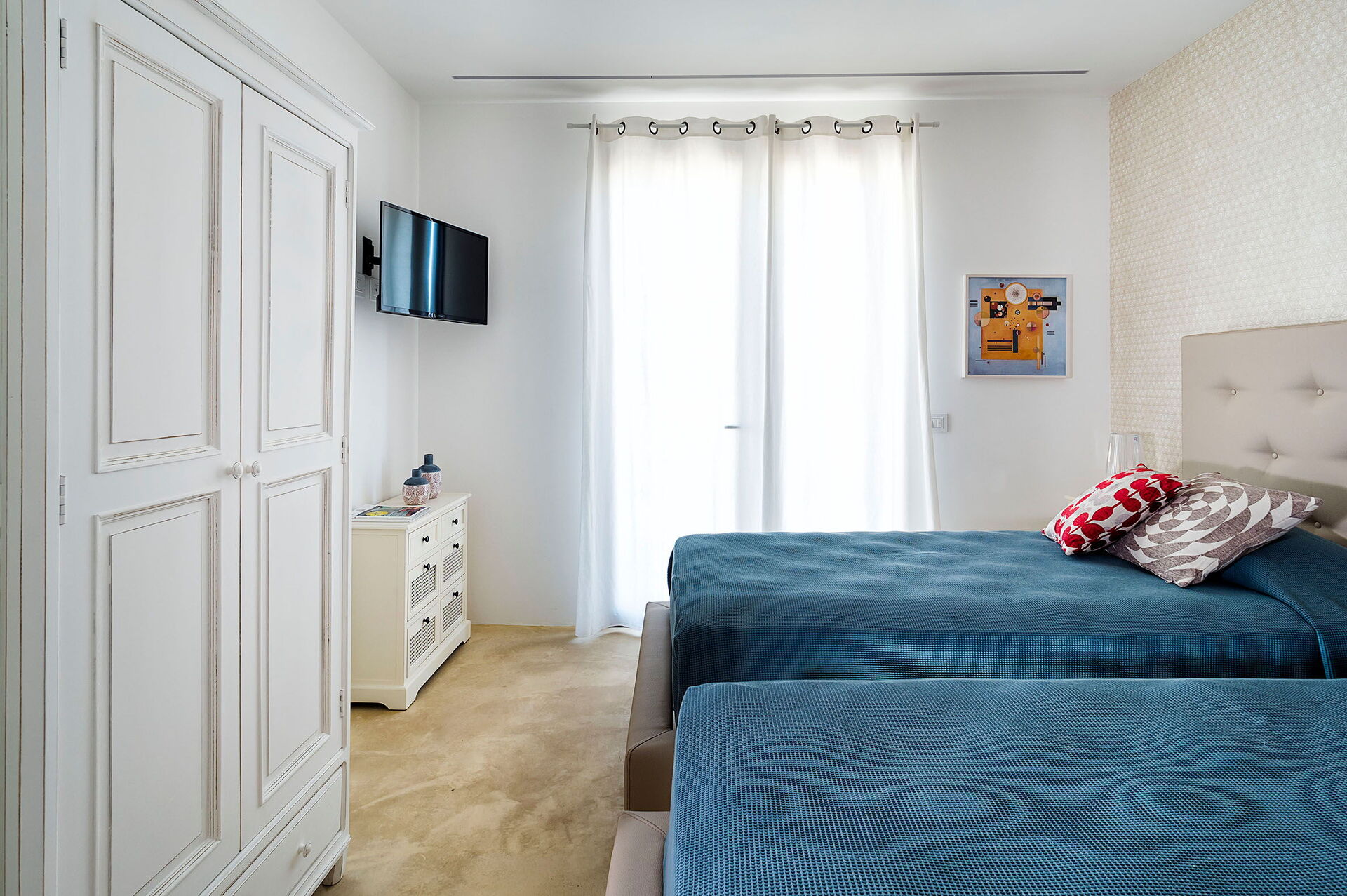 Ground Floor: living/dining room, kitchen (oven, freezer, dishwasher, coffee machine, microwave), double bedroom (king size bed 180x210) with private bathroom with shower, double bedroom with private bathroom with shower, bedroom with double bed (convertible to 2 single beds upon request), bathroom with shower.