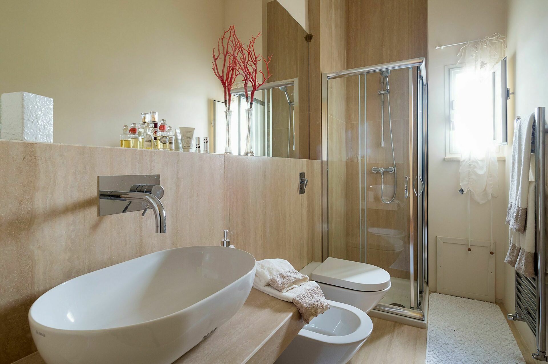 Its cosy interior is decorated with pastel colours and matching curtains and fabrics and is equipped with all mod cons, such as air conditioning, internet Wi-Fi, satellite TV, washing machine and dishwasher.