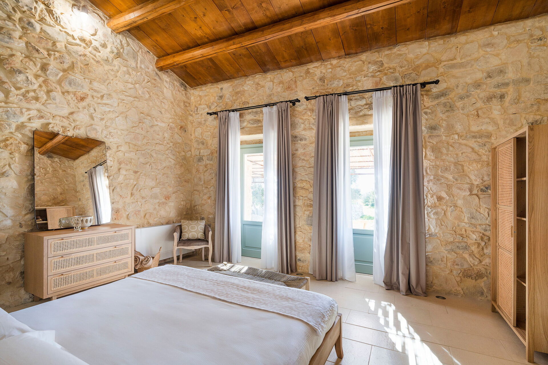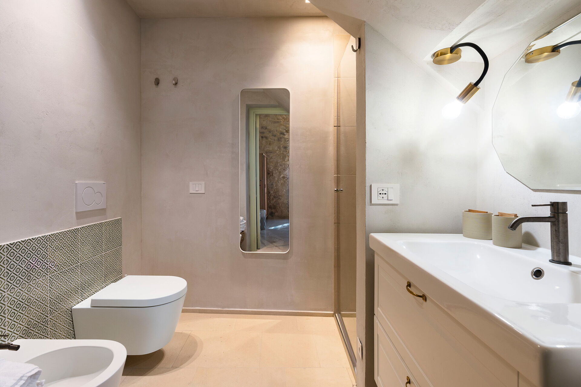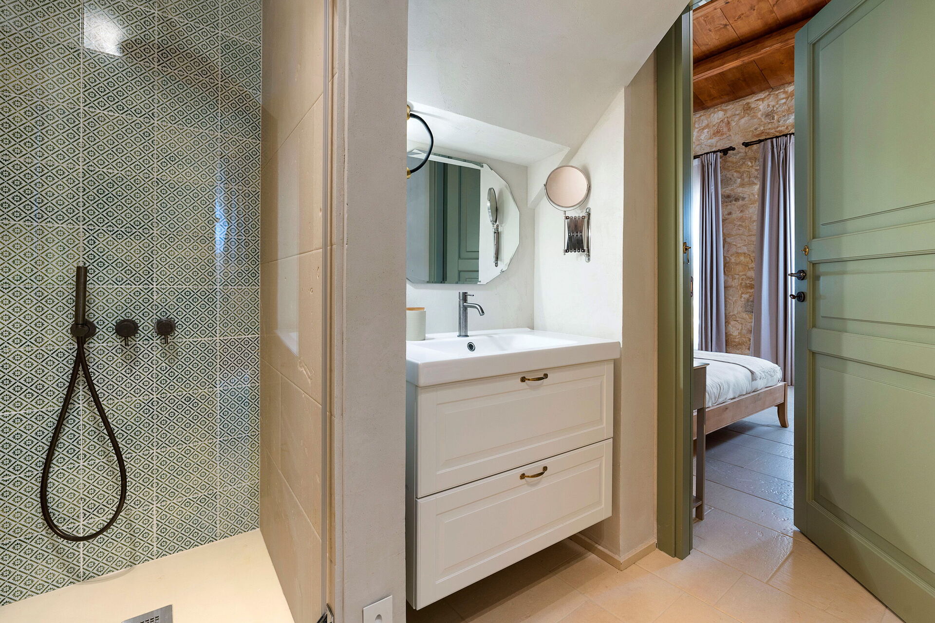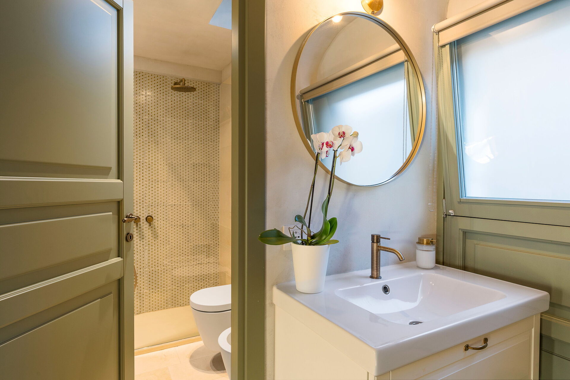 Ground floor (accessible only from the outside, and not connected to the rest of the villa on the inside): 2 double bedrooms (bed dimensions: 180 x 200 cm) each with a private bathroom with shower; bedroom with a double bed (bed dimensions: 160 x 200 cm), a single bed and a private bathroom with shower; laundry room.
