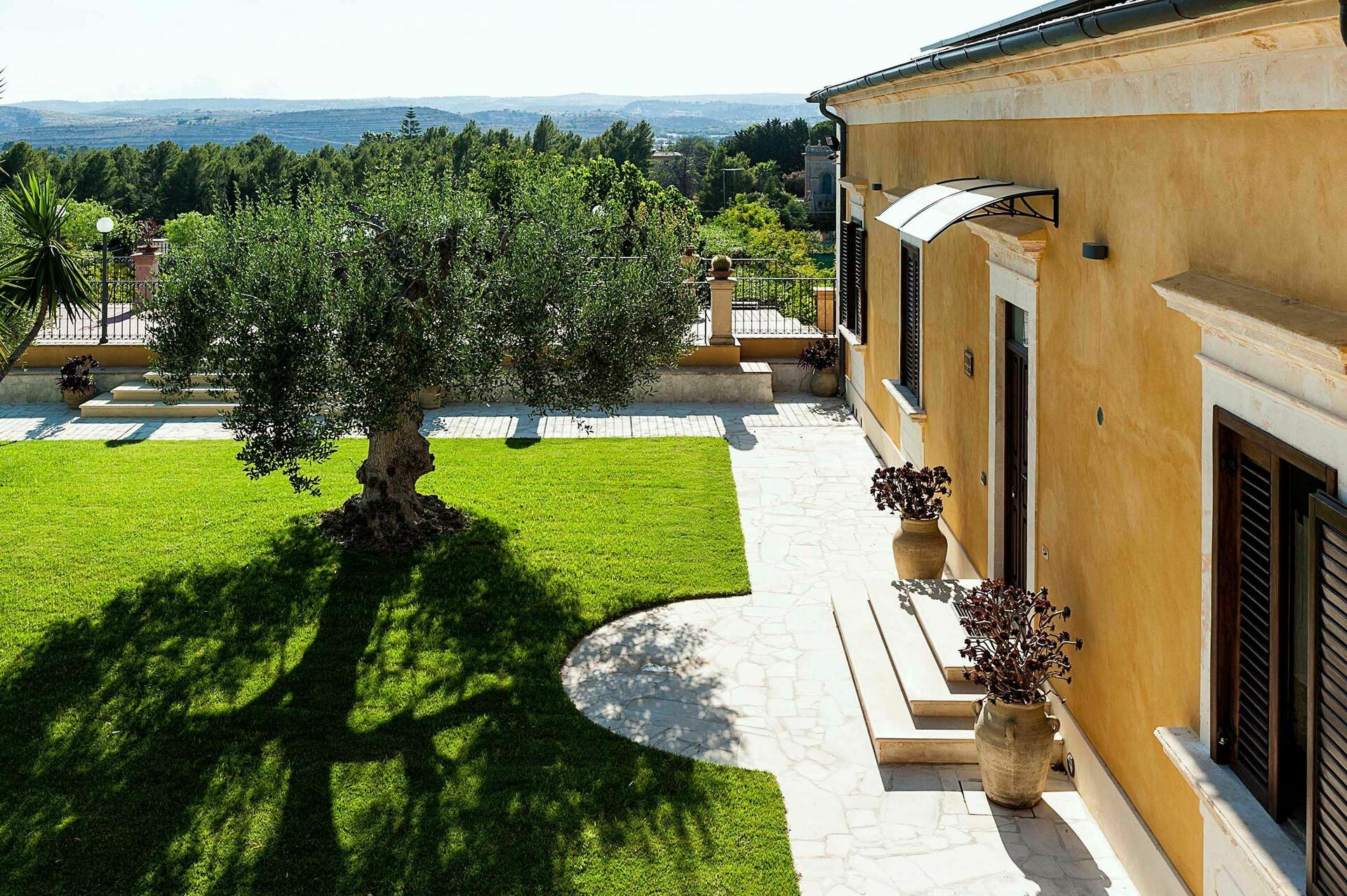 Outdoor living areas of the holiday villa rental include spacious, sunny terraces and the beautiful private swimming pool. The strategic location of Villa Carolina is also ideal for exploring the charming surrounding area. Syracuse and Ortigia, Modica, Ragusa and other towns of the Noto Valley, the Roman Villa of Tellaro, Marzamemi and the nature reserves of Cavagrande del Cassibile and Vendicari are all a few kilometres away.