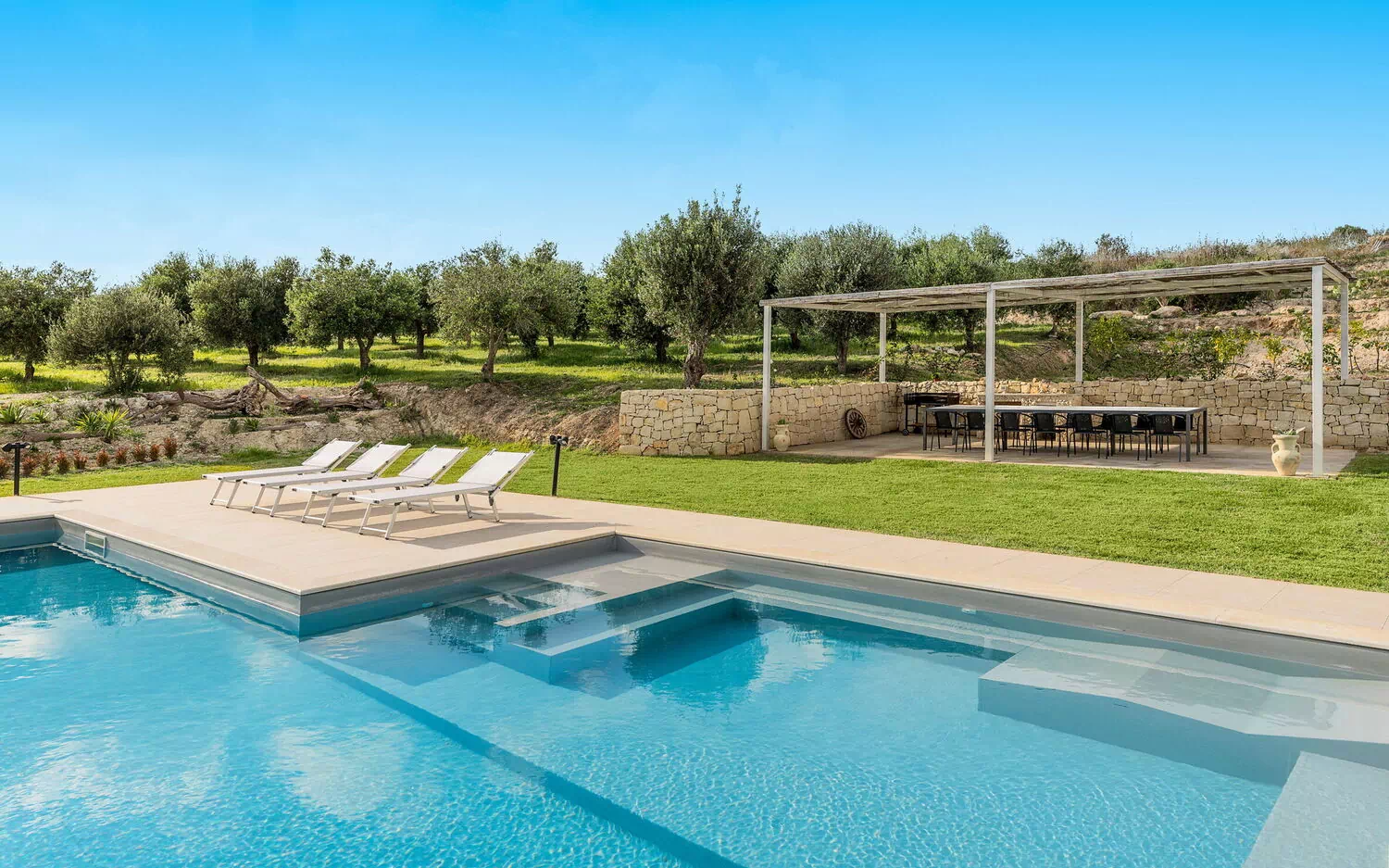 Large independent vacation property rental with a private pool in Sicily: it sits in a peaceful, sunny location a few kilometers from enchanting San Lorenzo, one of southeastern Sicily’s most beautiful beaches.