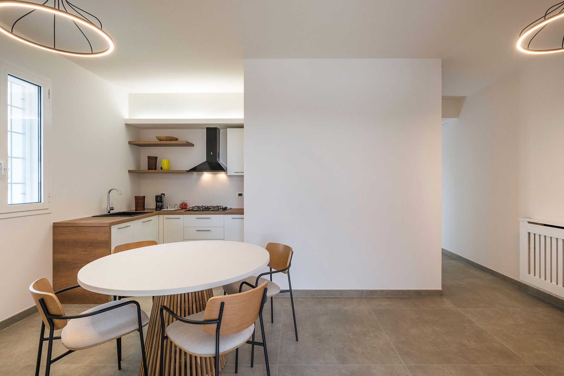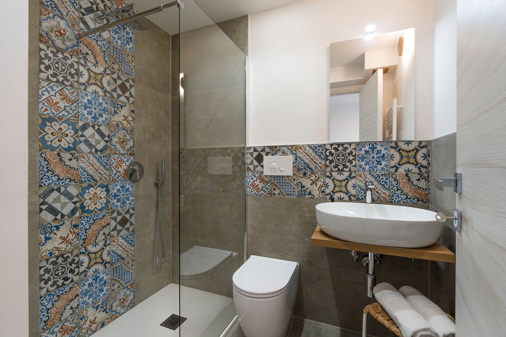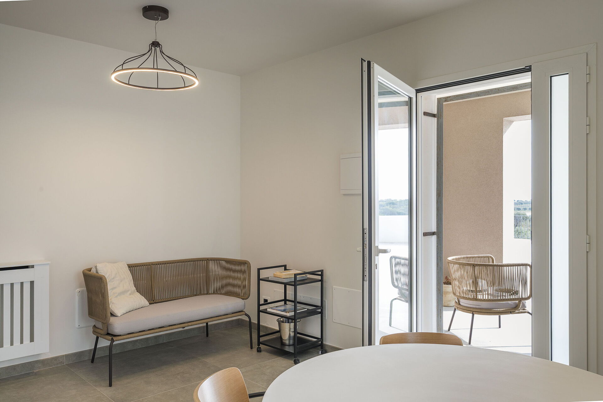 First floor: kitchen (cooktop, freezer, refrigerator, air fryer, espresso coffee maker) with a dining area and terrace access, double bedroom (bed dimensions: 160 x 200 cm) with a private bathroom with shower, double bedroom (bed dimensions: 160/80 x 200 cm; can be converted into 2 single beds upon request), bathroom with shower.