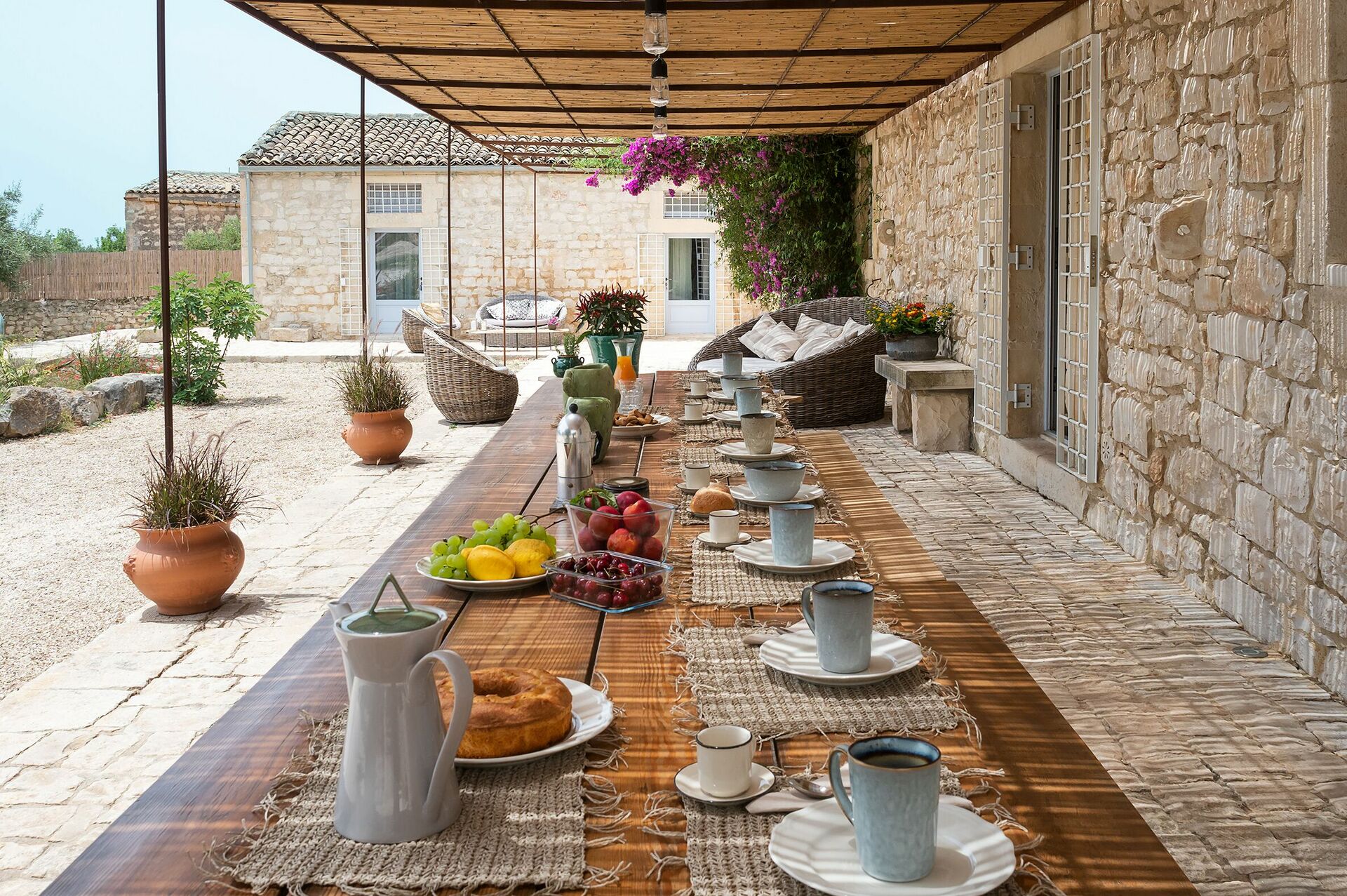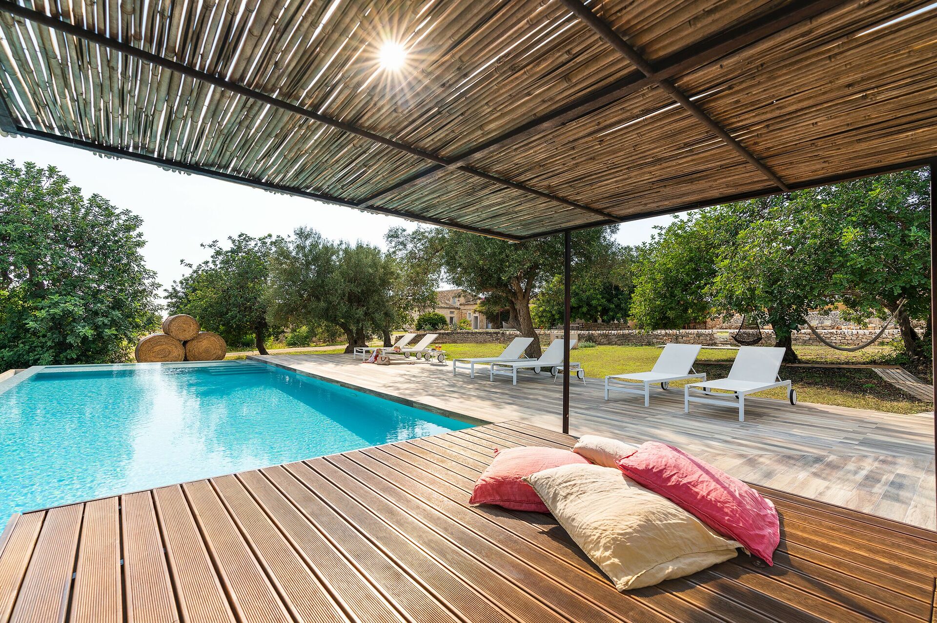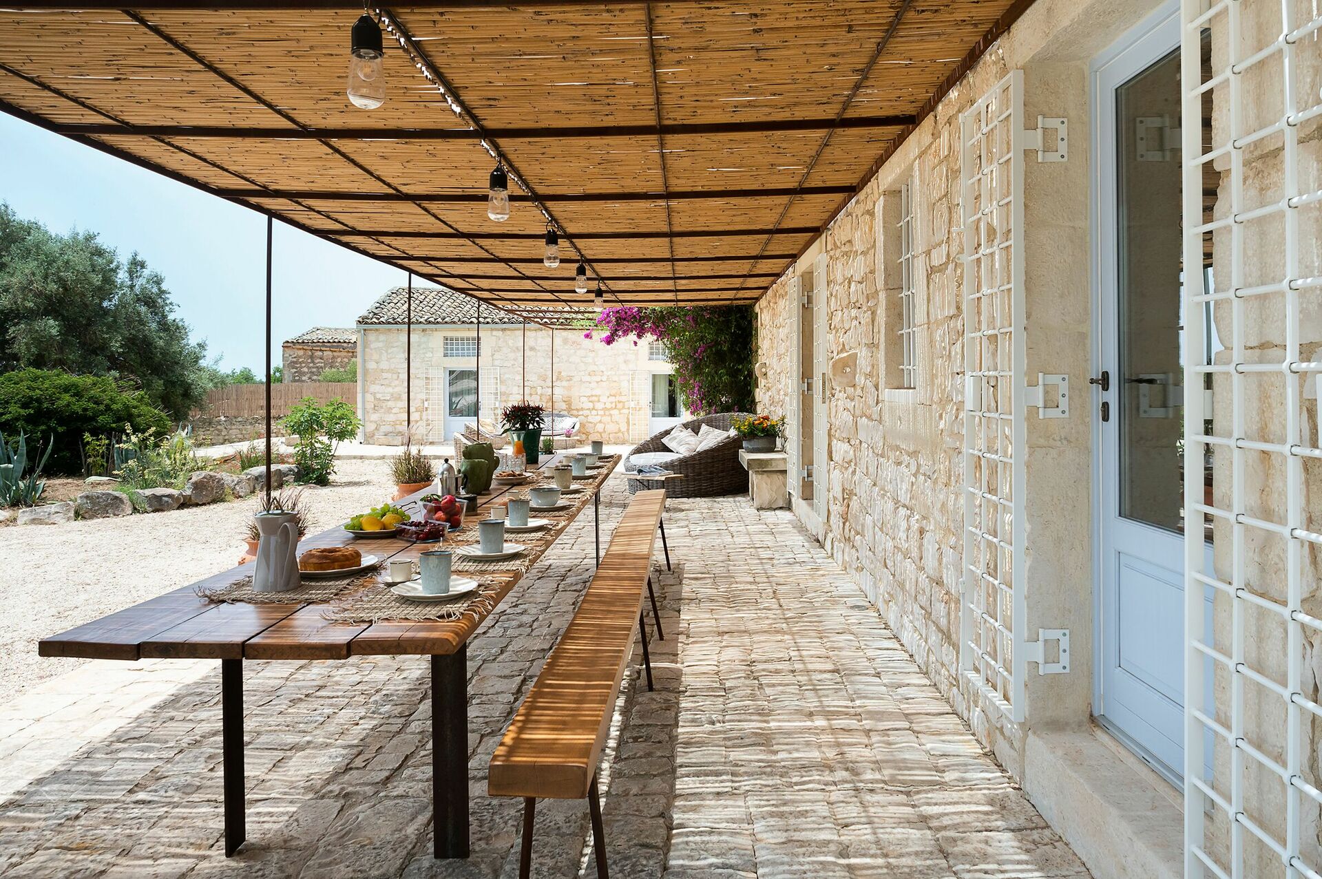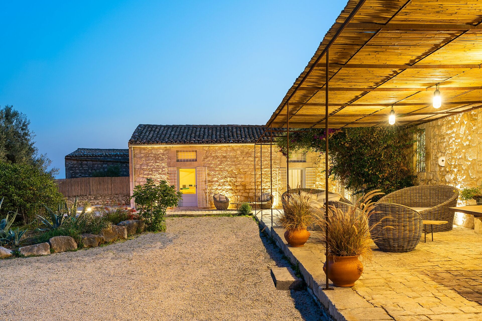 Villa Dimora Pura is an exclusive estate for an unforgettable vacation in Sicily with family or friends. With 6 bedrooms (one in a loft), it comfortably accommodates up to 10-12 people. It is located near Scicli, the spectacular Baroque town on the UNESCO World Heritage list, and offers panoramic views. The natural park that surrounds the villa offers tranquility and privacy, and has picturesque, traditional dry stone walls.