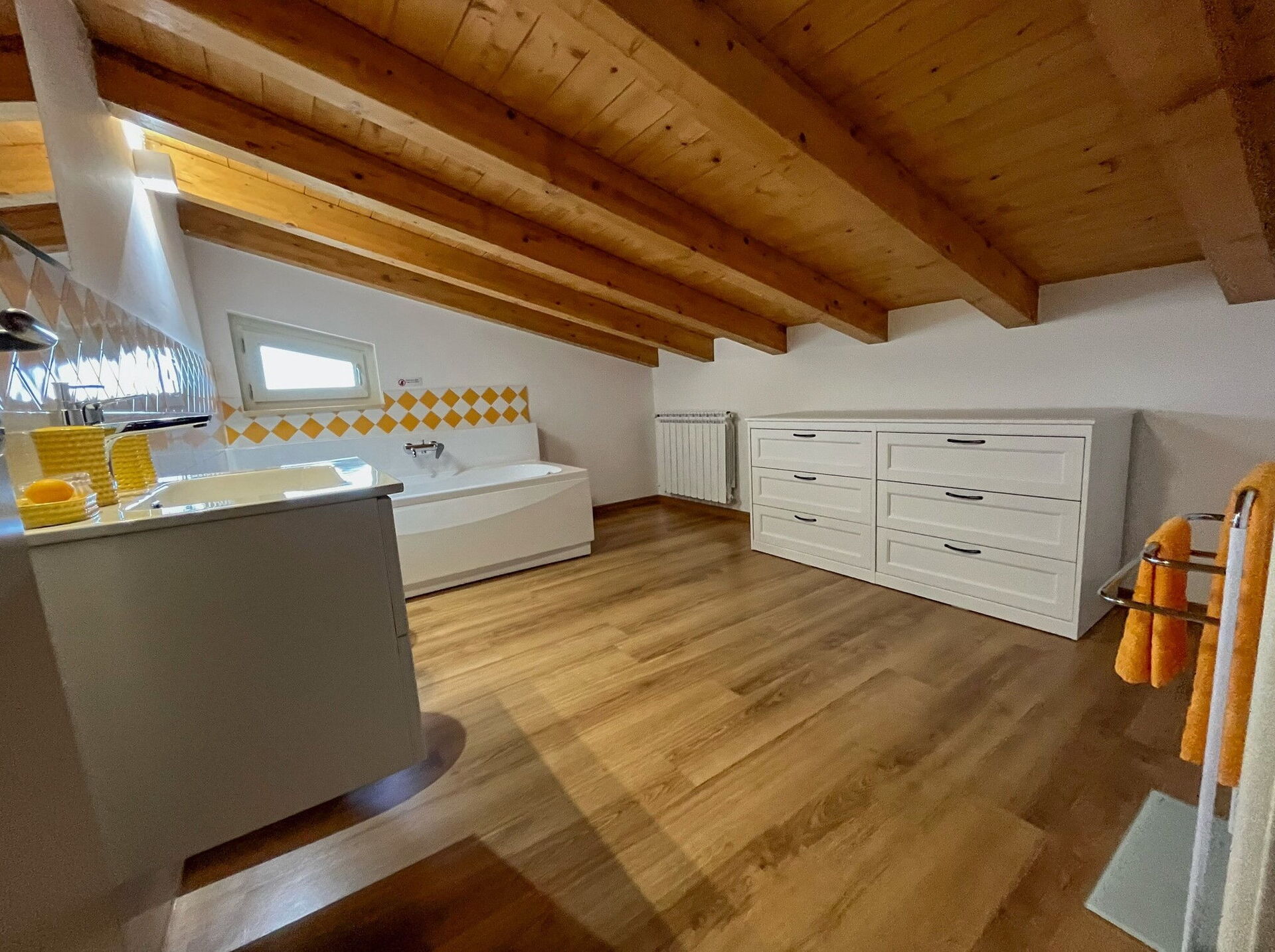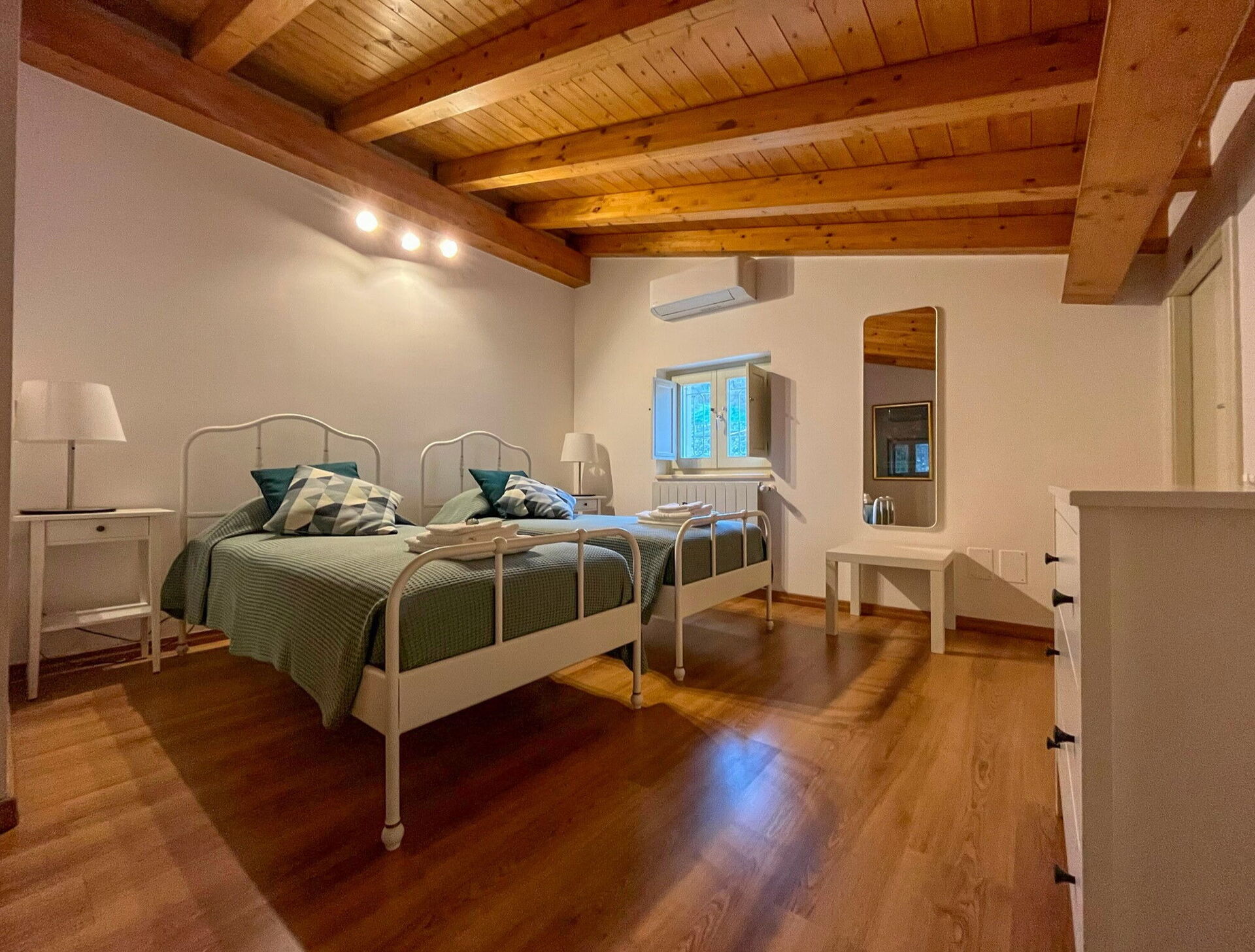 First floor: small living room-study (located in a loft), double bedroom, room with 2 single beds, bathroom with bathtub.