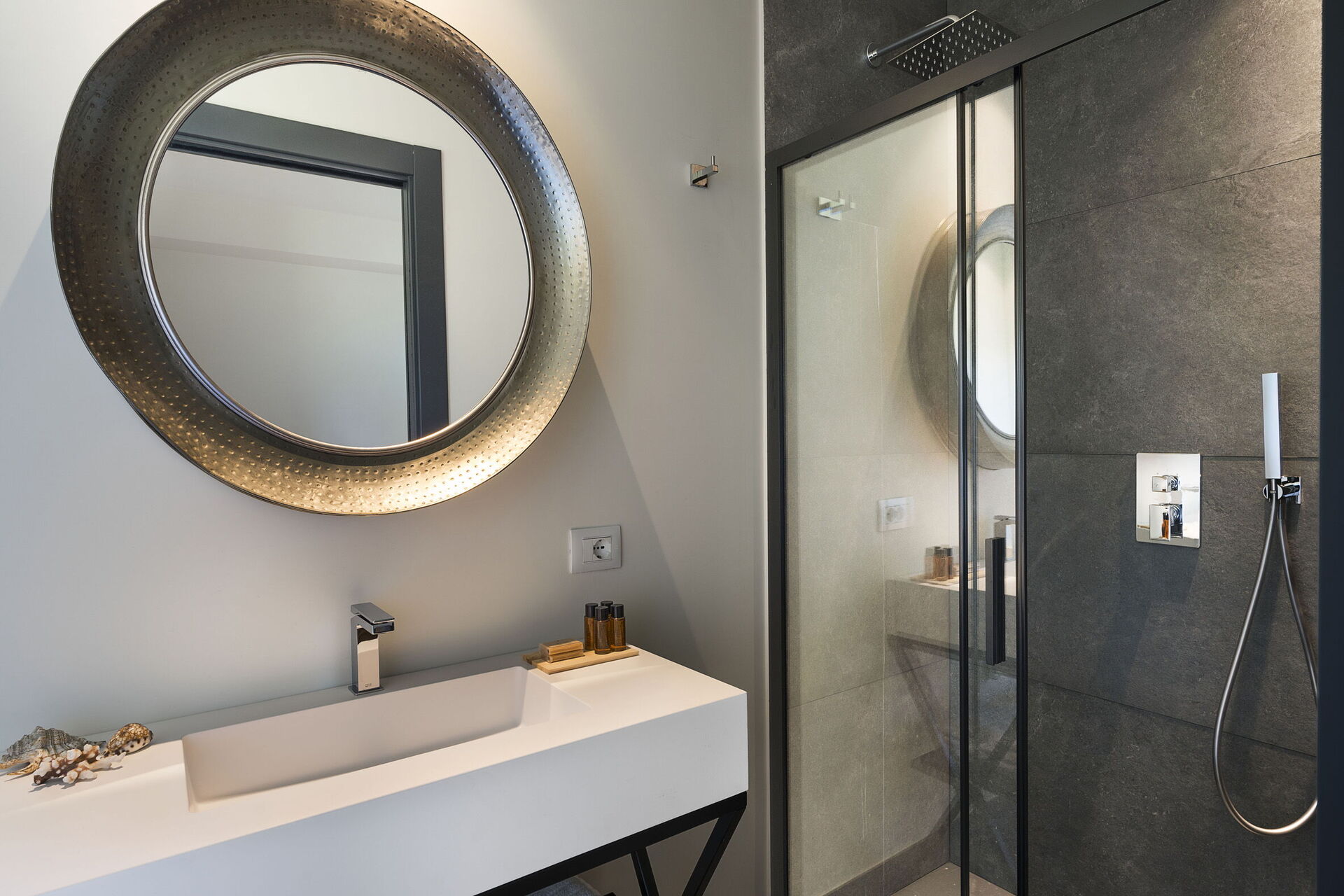 First floor: 3 double bedrooms (air conditioning, screen) each with private bathroom with shower.