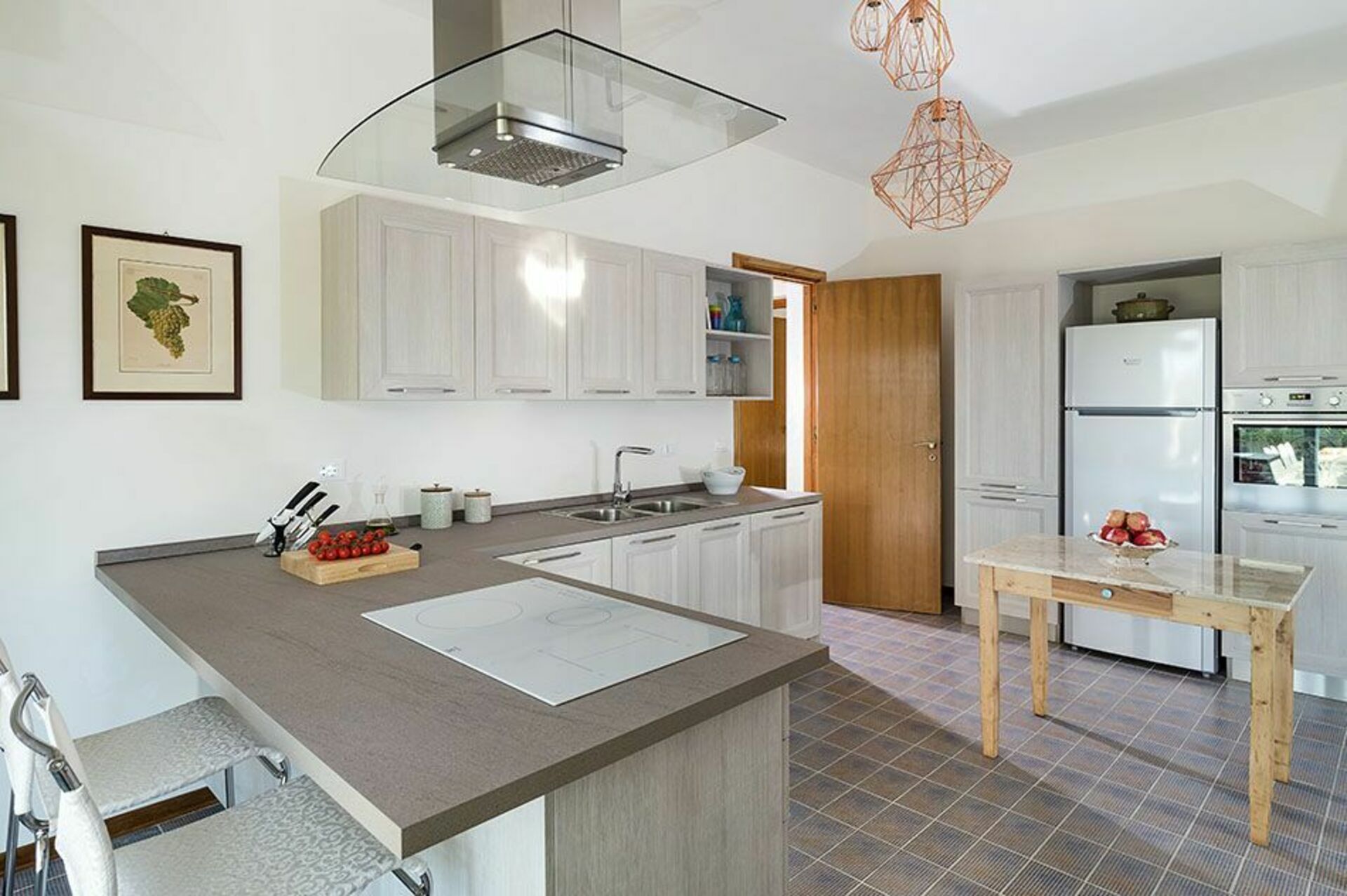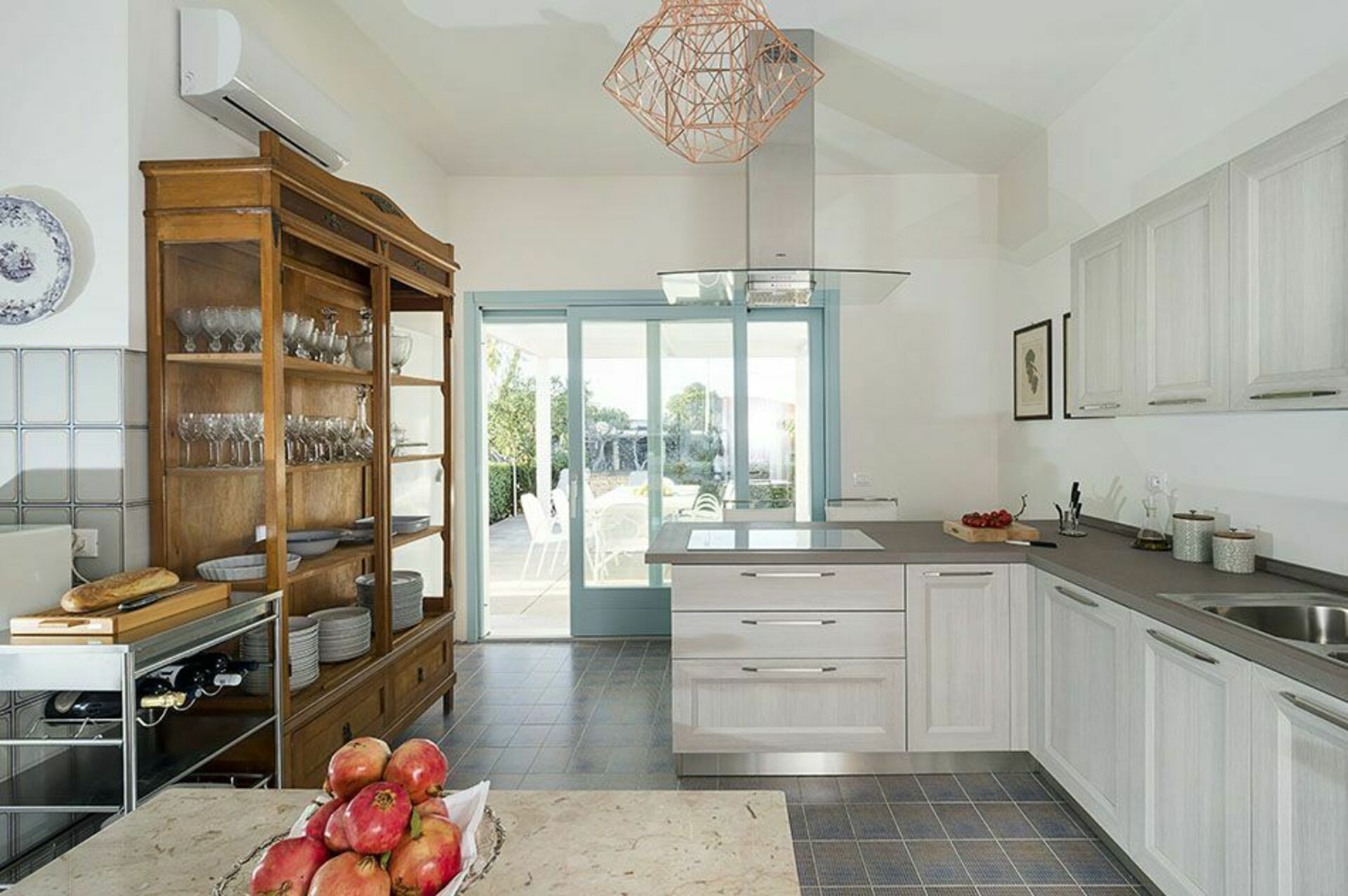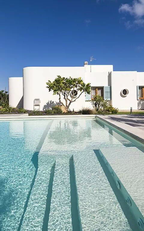 The bright, cozy interior of the villa is equally inviting: there are seven double bedrooms and seven bathrooms.