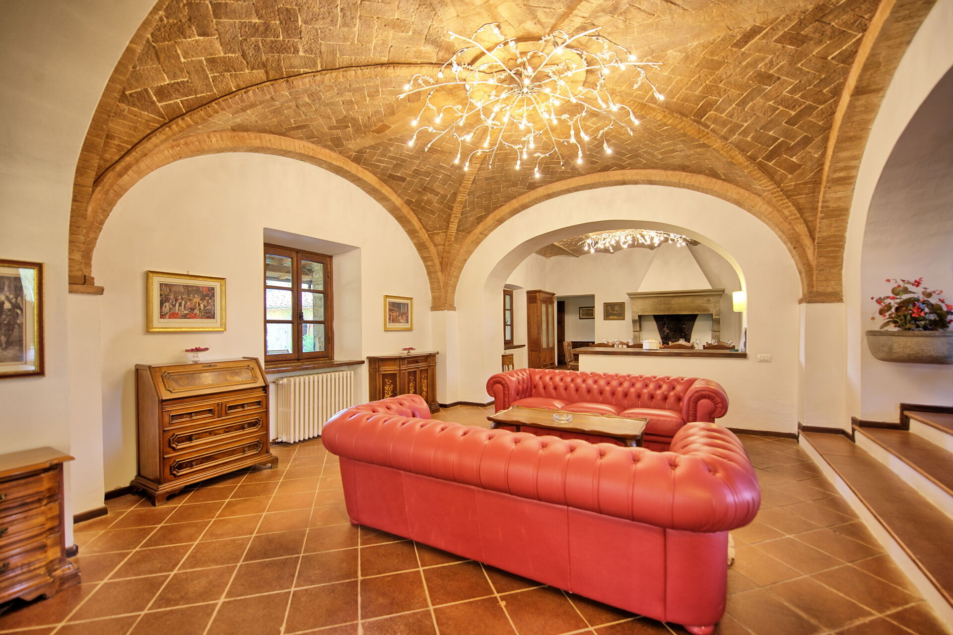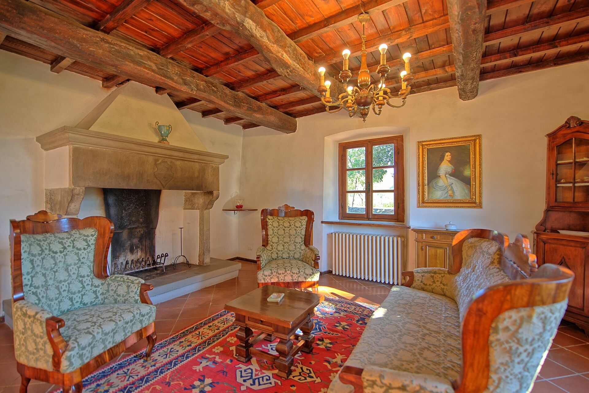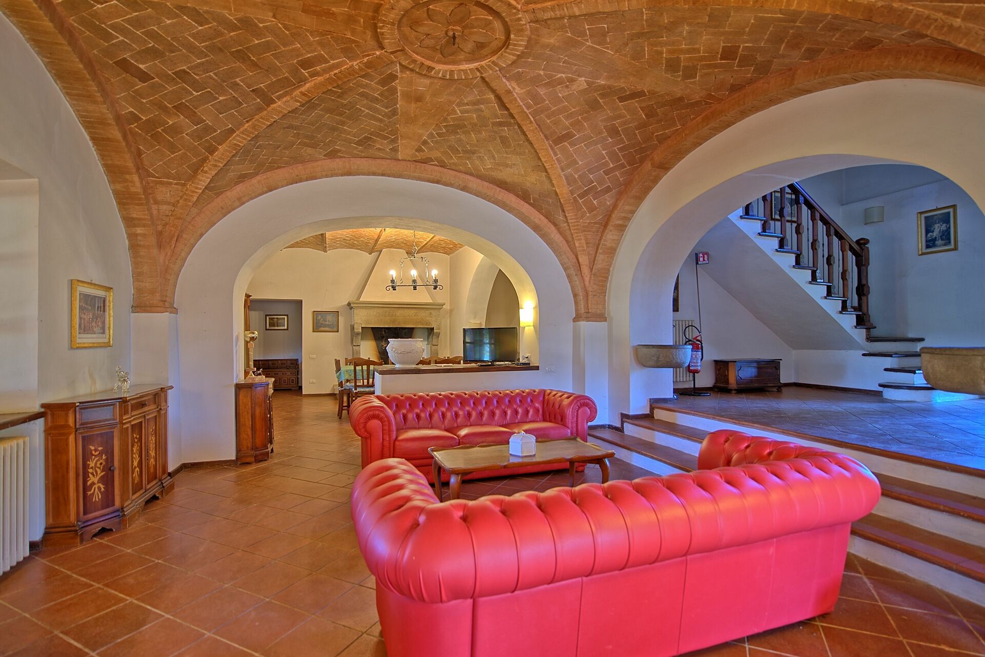 Casavecchia is enchanting with its typical Tuscan architecture, stone walls, large windows and French doors, wide terraces surrounding the house and an amazing green park with a private fenced lake.