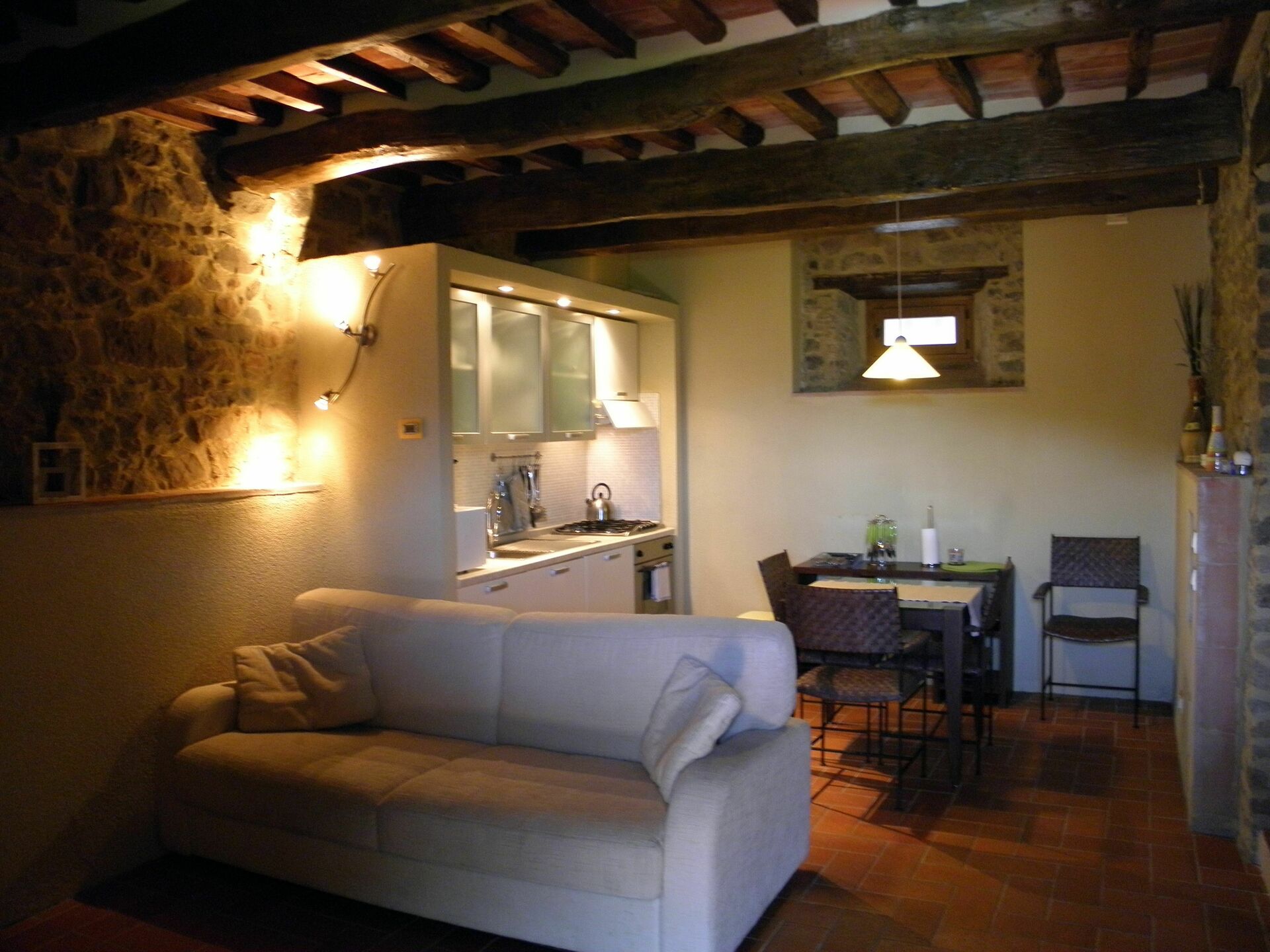 We had a wonderful time in Lugliano, in appt.4. The village is very quietly located higher in de mountains with great views from the appartment. Had several talks with the very friendly Australian owner en enjoyed the really modern and comfortable appt. Everything was available to enjoy een great holiday incl. of quality beds, nice terrace chairs and a well equipped kitchen. A place to wind down and enjoy Tuscan villages and nature.