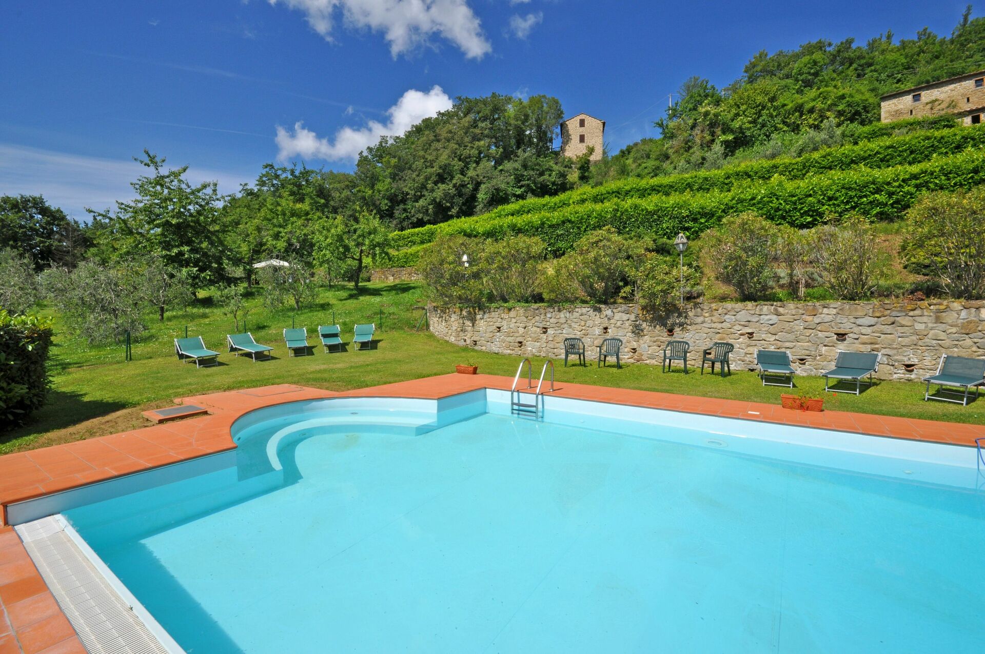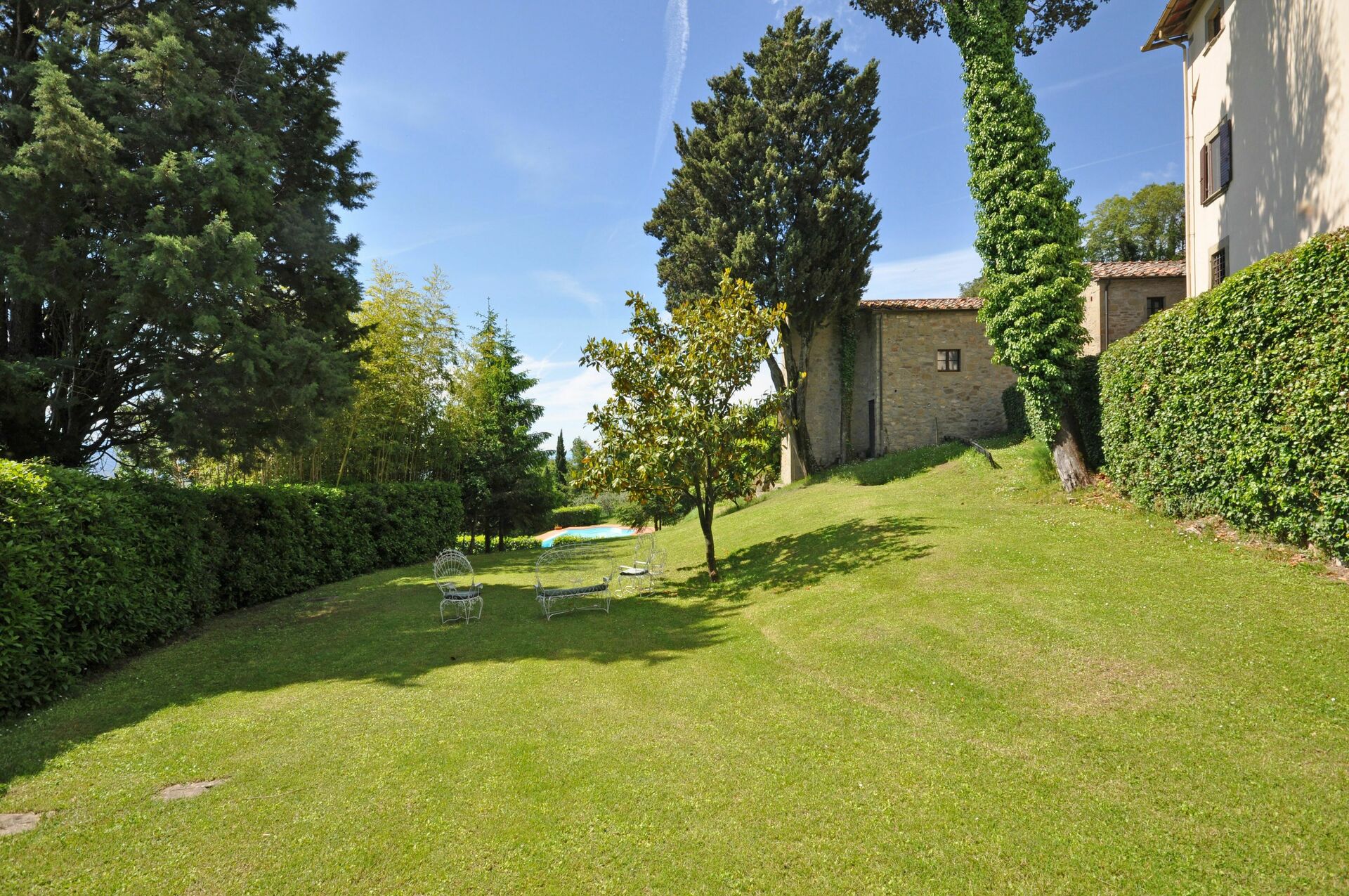 Distances: Capolona with general stores approx. 5 km away, Arezzo (railway station with daily trains to Florence and Rome) 18 km away, Poppi 20 km, the charming town of Cortona 50 km, Siena 90 km away, Florence 95 km, Perugia 100 km away.