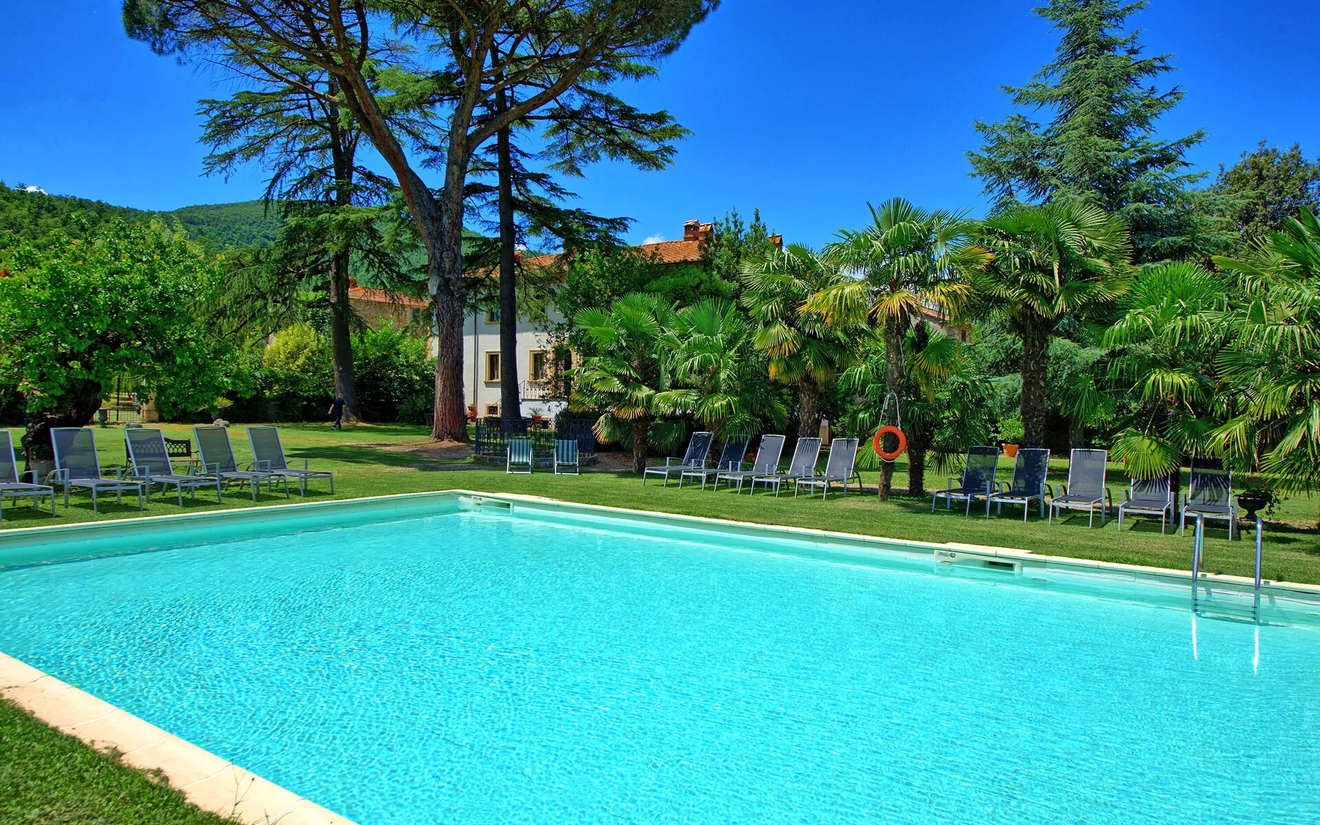 The vacation rental is formed by a main farmhouse plus an adjoining dependance rented as a whole and carefully restored to the highest standard, surrounded by extensive private gardens housing a large swimming pool. The main villa, that once used to be a manor house, can sleep 14 guests in 7 bedrooms while the adjoining barn can sleep further 4 guests in 2 bedrooms (with the additional bonus of a large common area on the ground floor that allows all the 18 guests to dine or spend time together).
