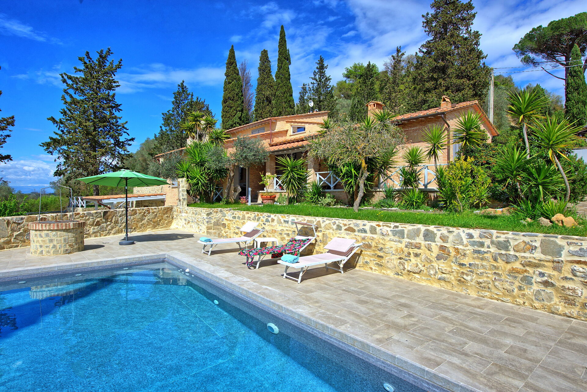 Santo Stefano is the perfect solution for anyone looking for a villa to spend a truly unforgettable holiday in the company of friends or family; thanks to its 3 bedrooms, each one with en suite bathroom and shower, it is ideal for couples or families. Its location allows you to visit the whole of Tuscany with ease including its numerous sites of interest such as Florence, Siena, Pisa, Lucca, the Chianti region and the Valdera.