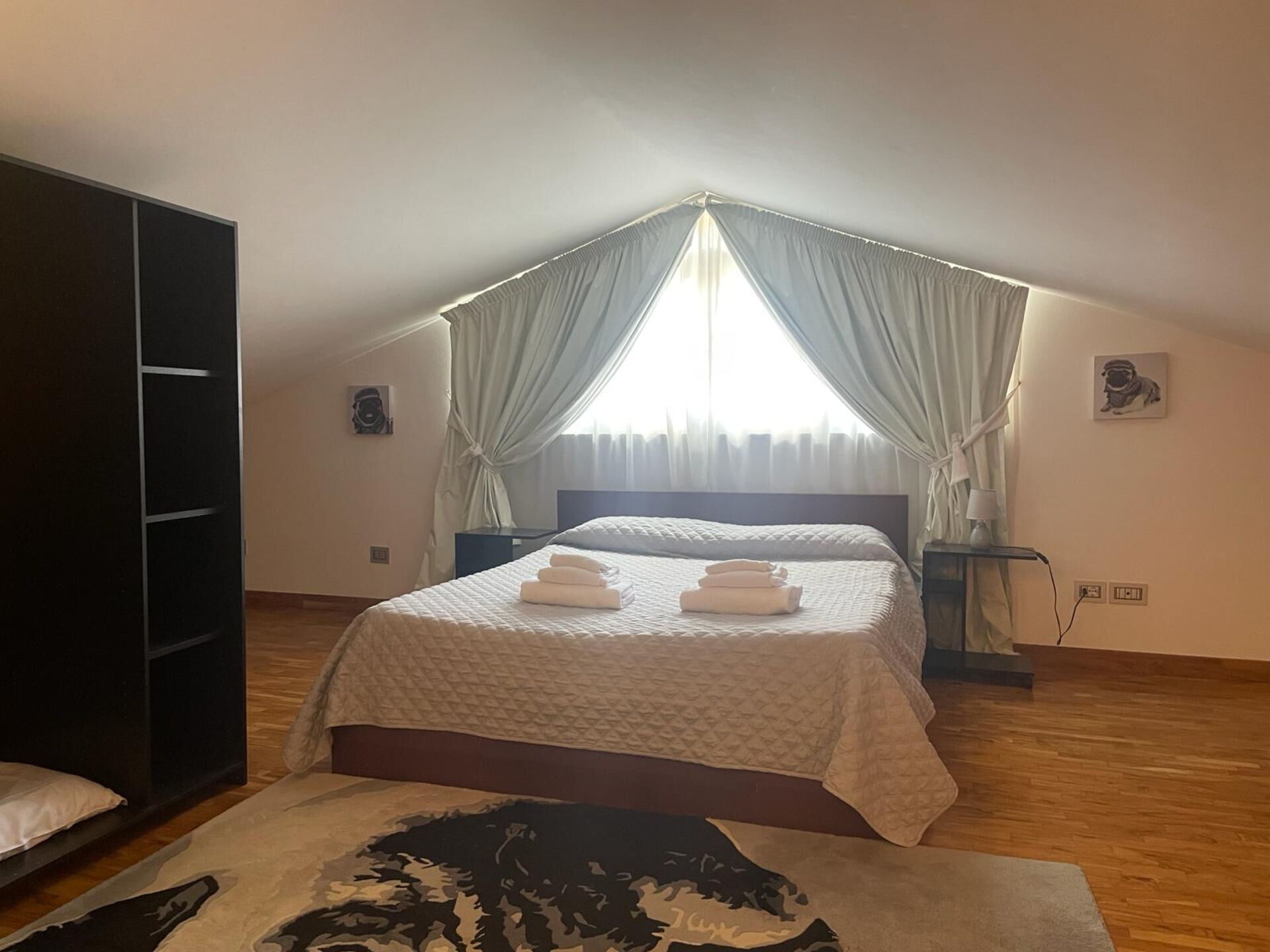 First floor: living room with TV; kitchen (oven, freezer, dishwasher); large double bedroom with double sofa bed (suitable for 2 children), terrace access and private bathroom with massage/steam shower; 2 double bedrooms ; bathroom with whirlpool bathtub and shower; double bedroom; bathroom with shower.