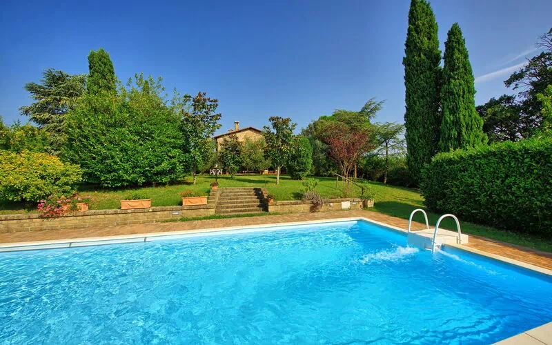 This property is completely fenced and offers a nice and well-kept garden with extensive views over the surrounding landscape. The house is tastefully furnished and provides large indoor and outdoor areas which allow its guests to spend a relaxing vacation in the heart of Tuscany country-side. The location is ideal to reach the most beautiful corners of central Italy.