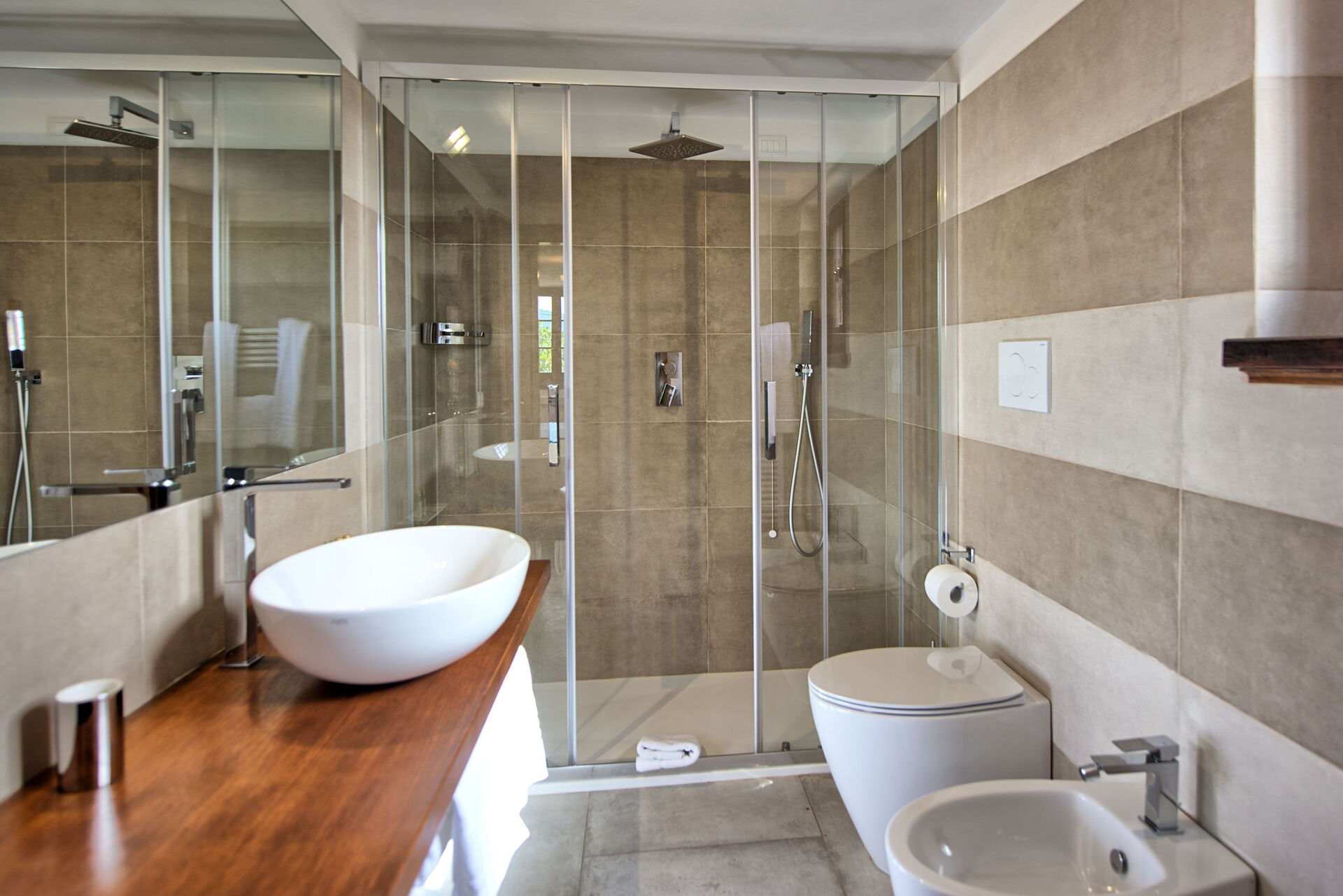 Property is stunning with beautiful views and pool. We had two families who had taken the property and doesn't work with two families and is designed for a big group as the dowbstairs apartments C doesnt have all the amenities you need like toaster, coffee maker and microwave. It is not a property designed for two families but would be good for one big group. The aircon in apartment B didn't didn't work which made it unusable. The property needs basic thibgs like bin liners, oven gloves, kettle etc. It also neefs fans in ghe livibg kitchen area due to the extreme heat. The host Beatrice was very helpful and is a brilliant host and came around to sort any issues. She also made a dinner reservation for us at a very nice place called Locunda whih was a great restaurant!! Thanks Beatrice for making our stay great!!