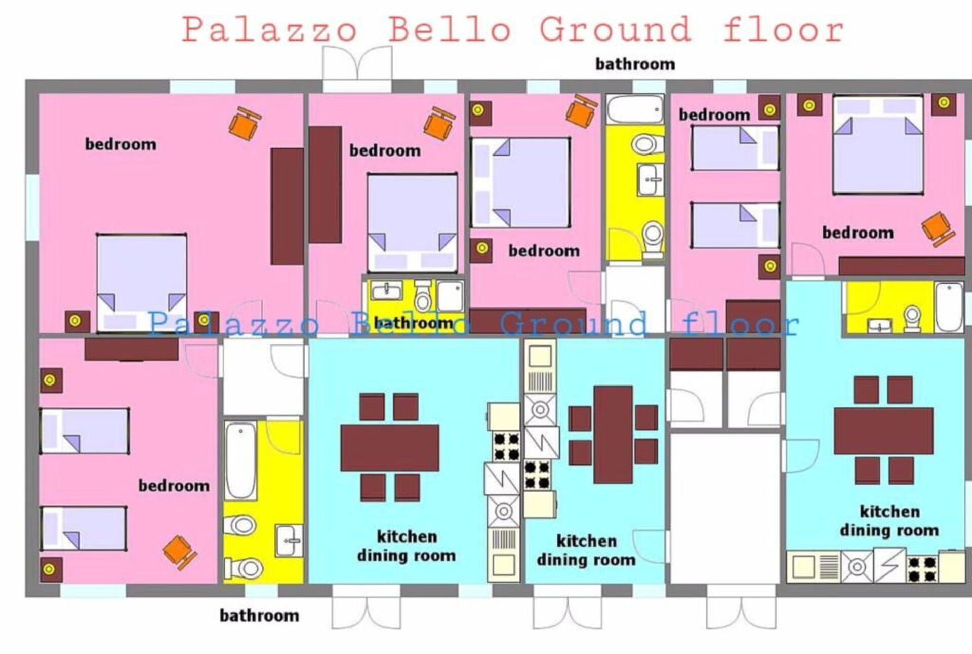 • 4 apartments, for a total of 10 bedrooms (20 people)