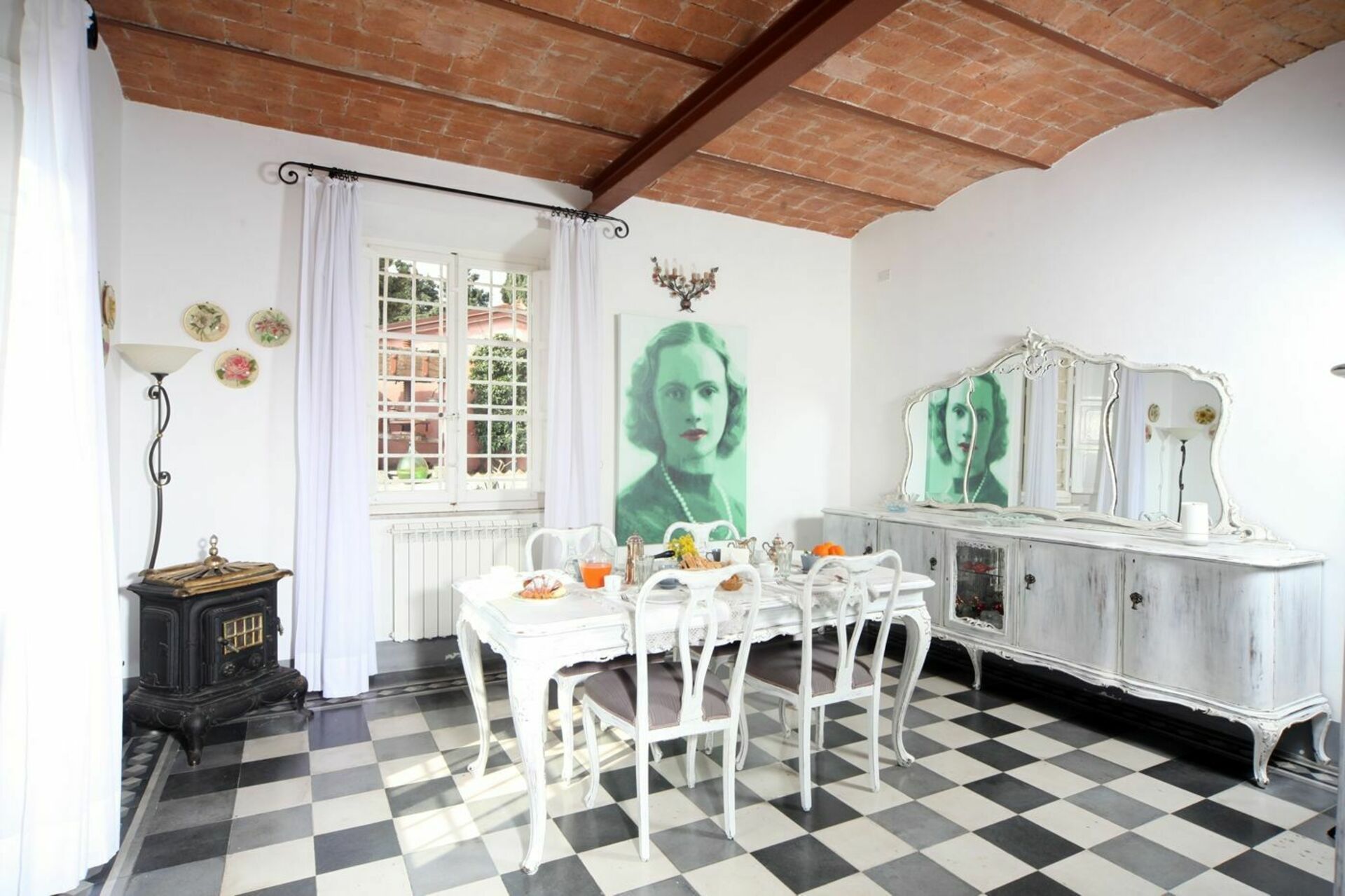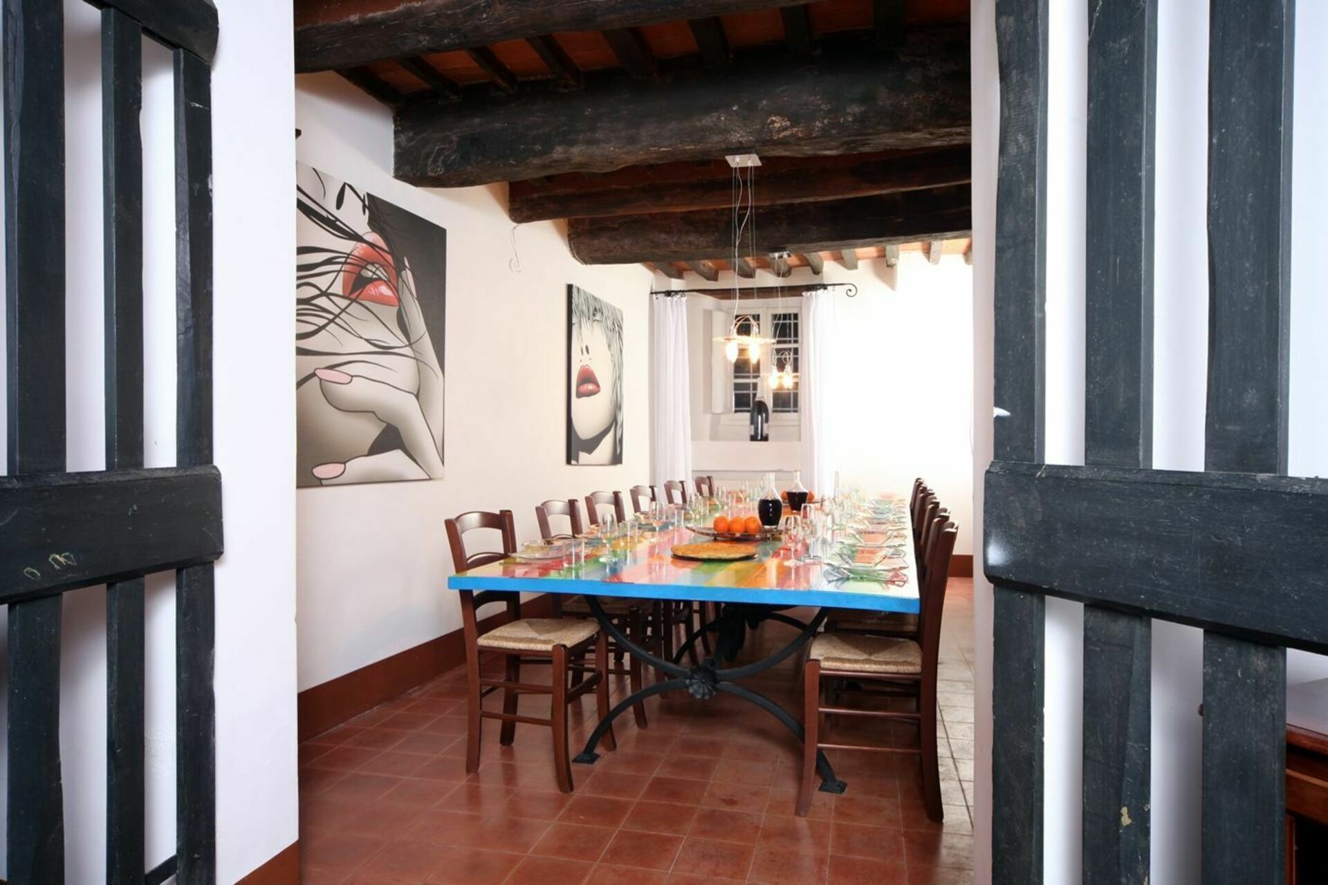 entrance, kitchen (oven, microwave, freezer, dishwasher, coffee maker, electric kettle), dining room adjoining the kitchen with up to 8 seats, secondary dining room with up to 24 seats, living room with pellet stove (on request and cost according to consumption), living room with fireplace and TV, toilette.