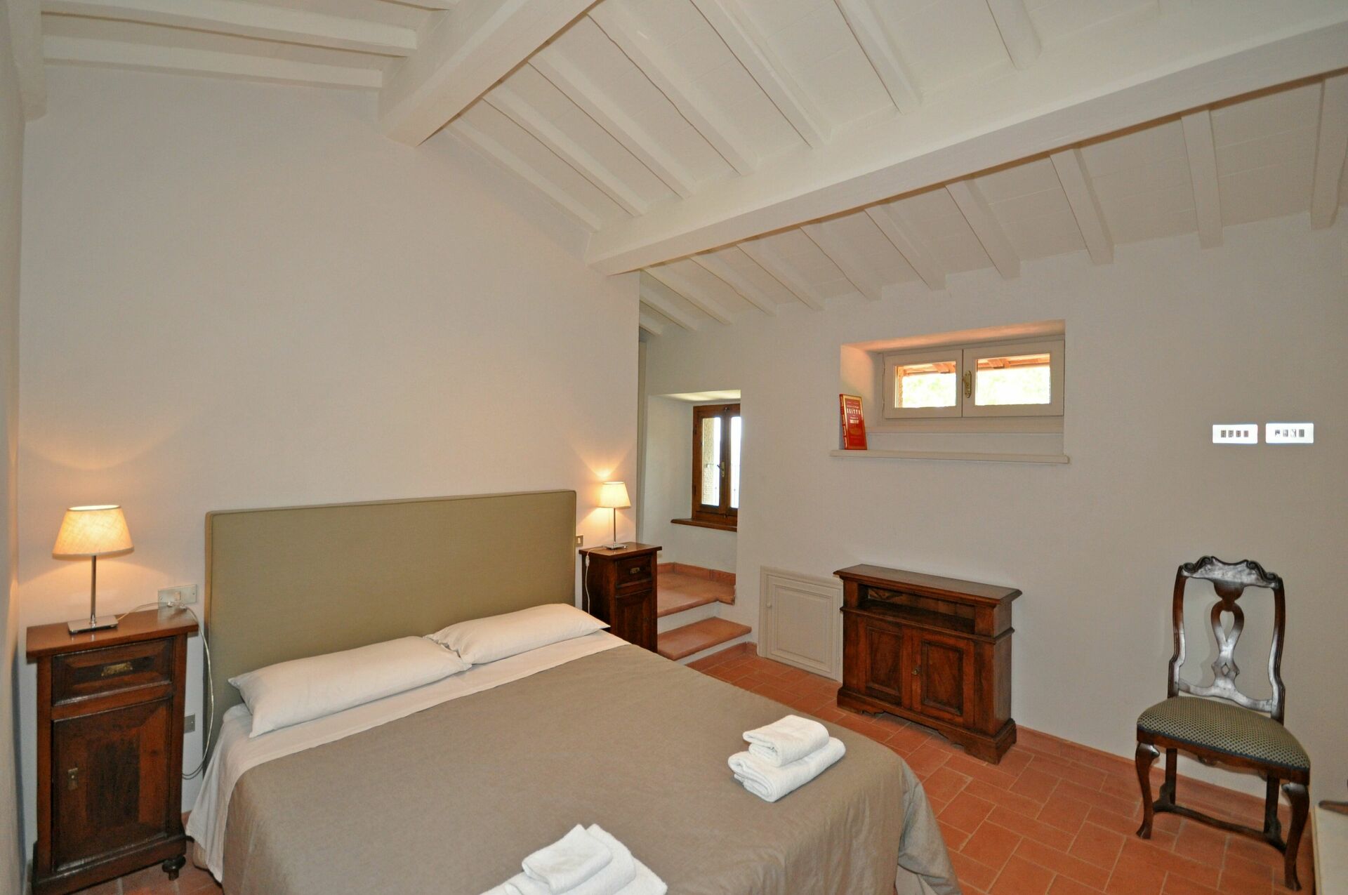 Distances: the small village of Portole with groceries is at 4 km, Cortona with shops of all kinds 13 km away, Città di Castello 40 km, Arezzo 40 km away, Lake Trasimeno 30 km away, Camucia (with railway station) 15 km away, Perugia (S. Egidio airport) 60 km away, Siena 75 km, Florence 120 km away.